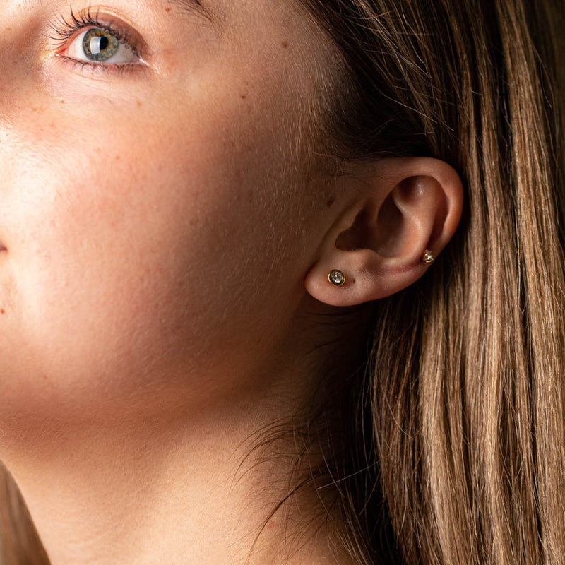 Also seen on the model is the 9ct yellow gold twist hoop earrings and 18ct yellow gold diamond stud earrings