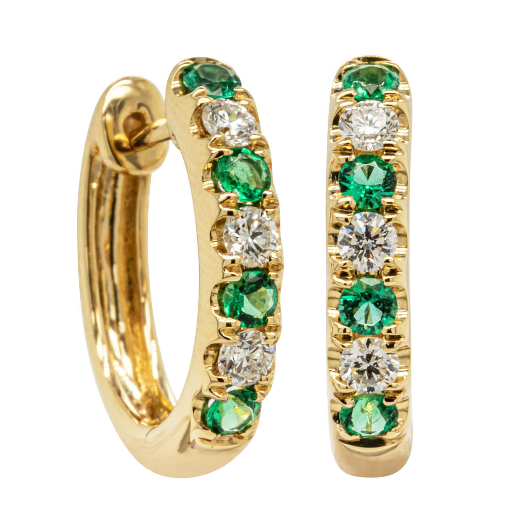 18ct Yellow Gold Emerald & Diamond Meridien Earrings