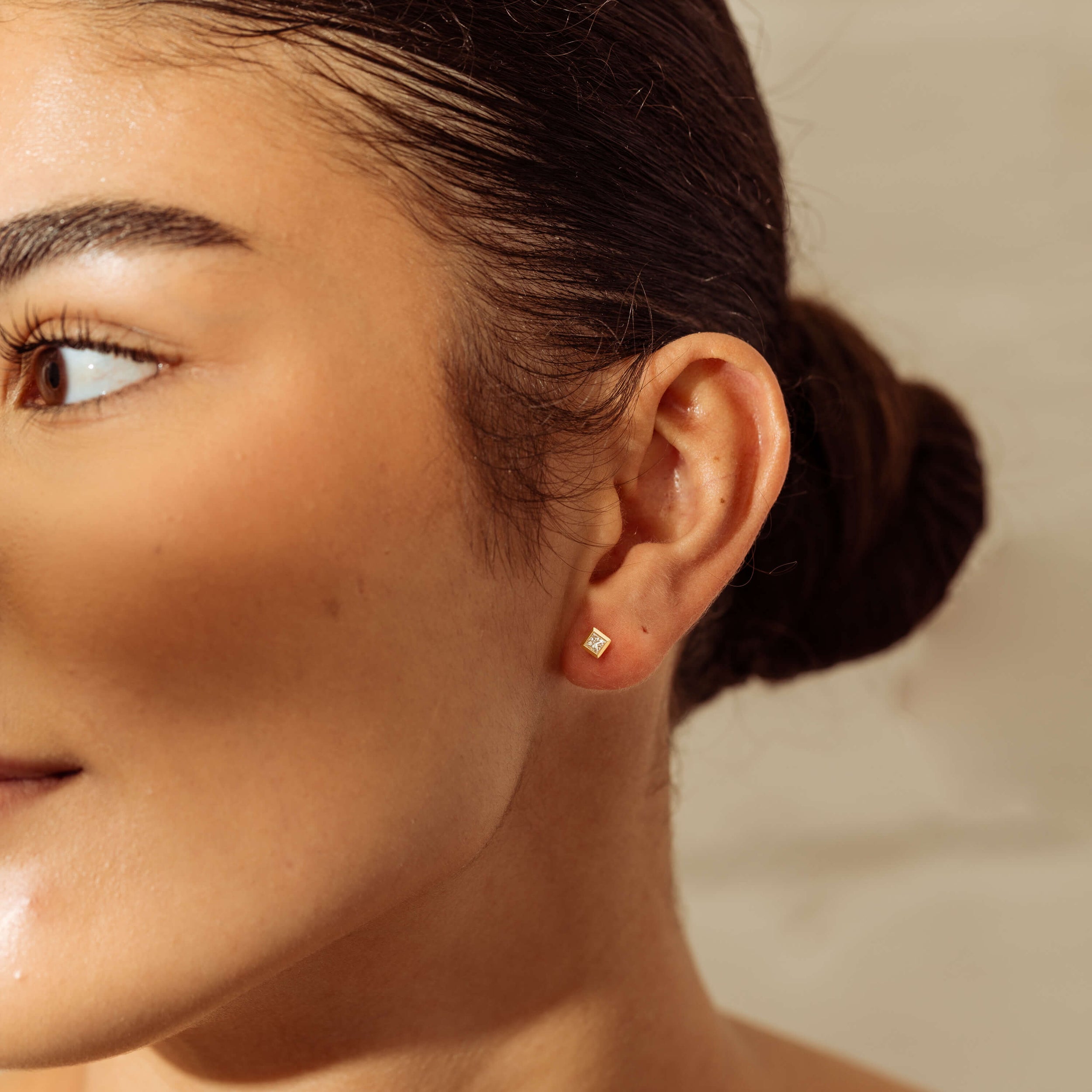 18ct Yellow Gold .25ct Princess Cut Diamond Natalia Stud Earrings