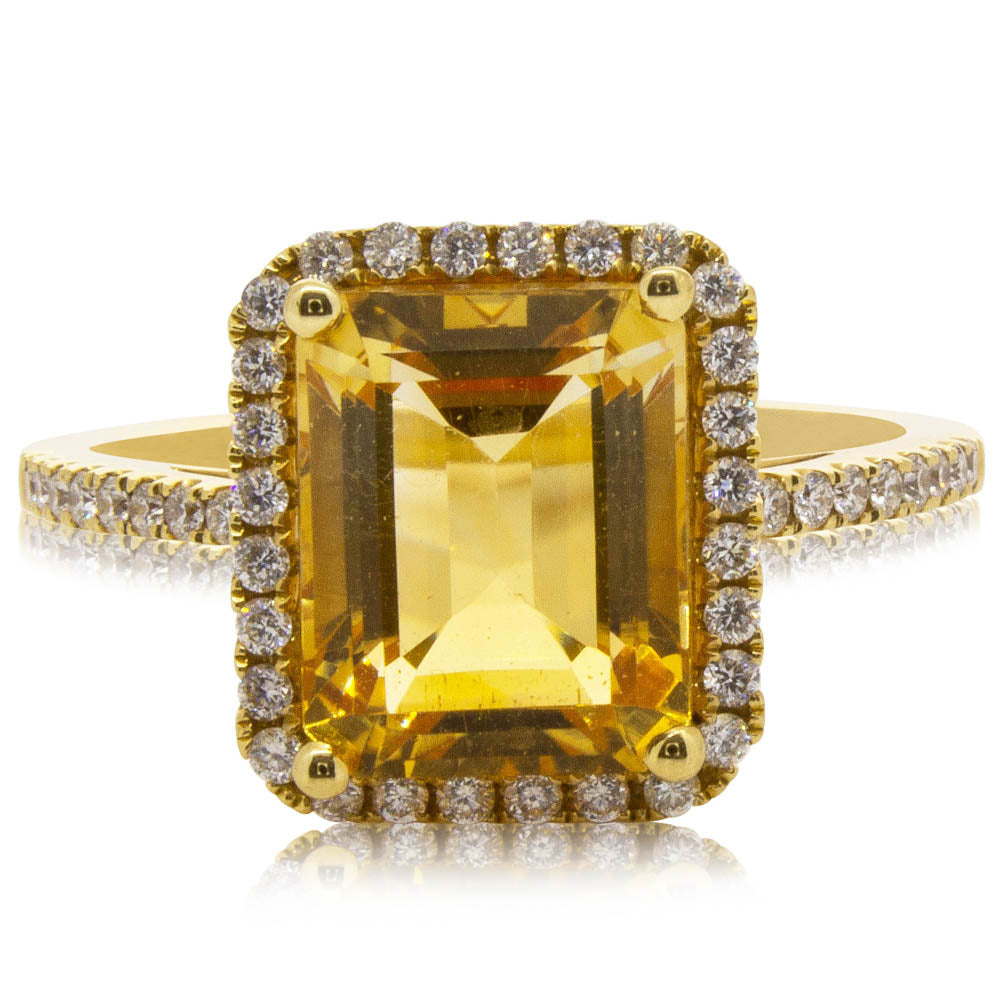 She will fall in love with this glistening citrine & diamond pendant! Crafted to perfection from luxurious 18ct yellow gold, this mesmerising ring features an impressive rectangular step cut citrine with beautiful orange-yellow hues. Shimmering round brilliant cut diamonds sparkle along the halo and shoulders, she will adore showing this off to all her friends and family!