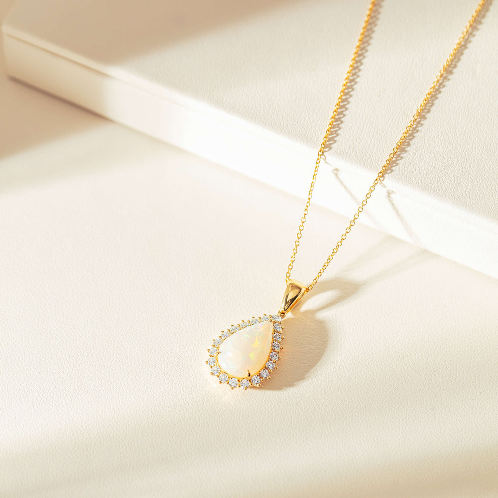 18ct Yellow Gold 3.61ct Opal & Diamond Belle Pendant