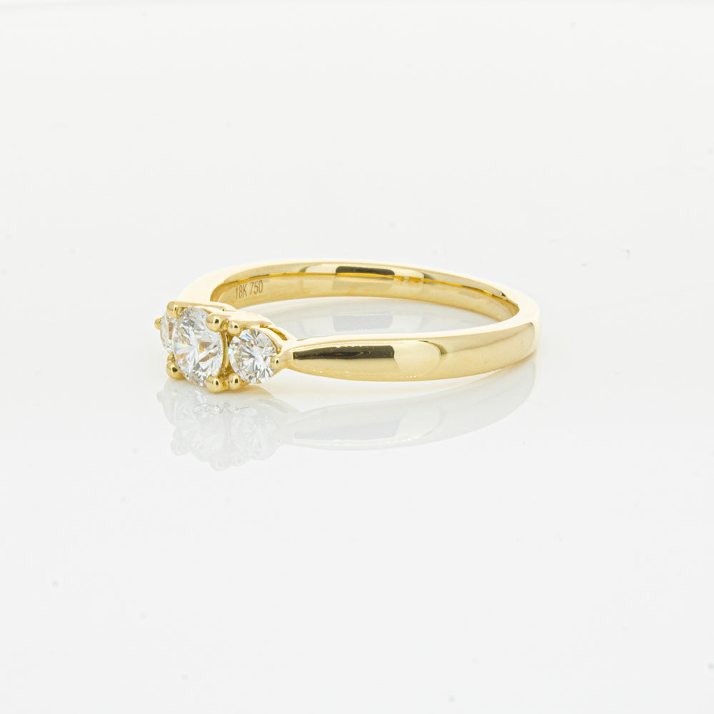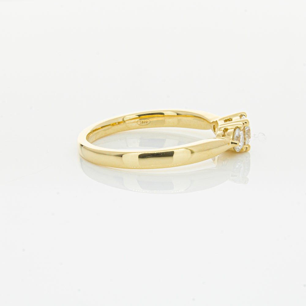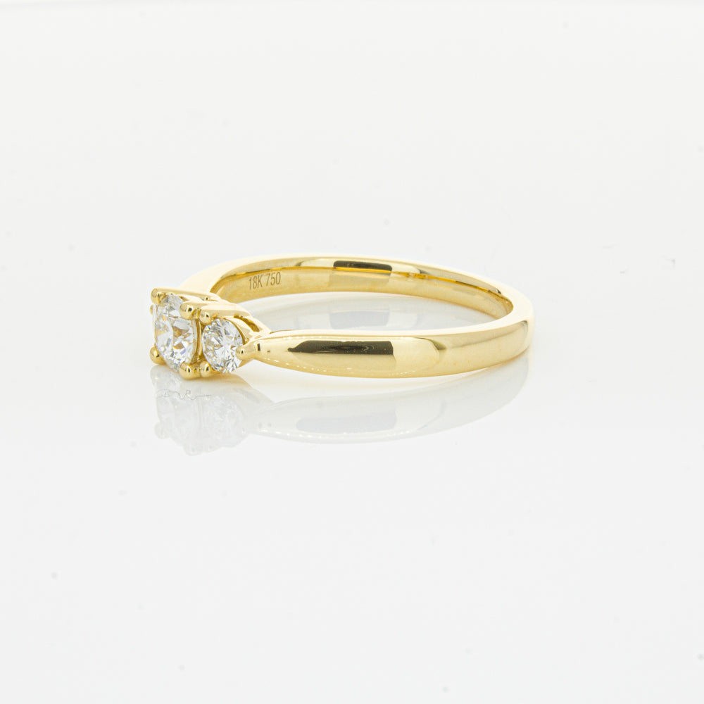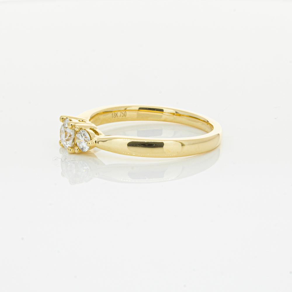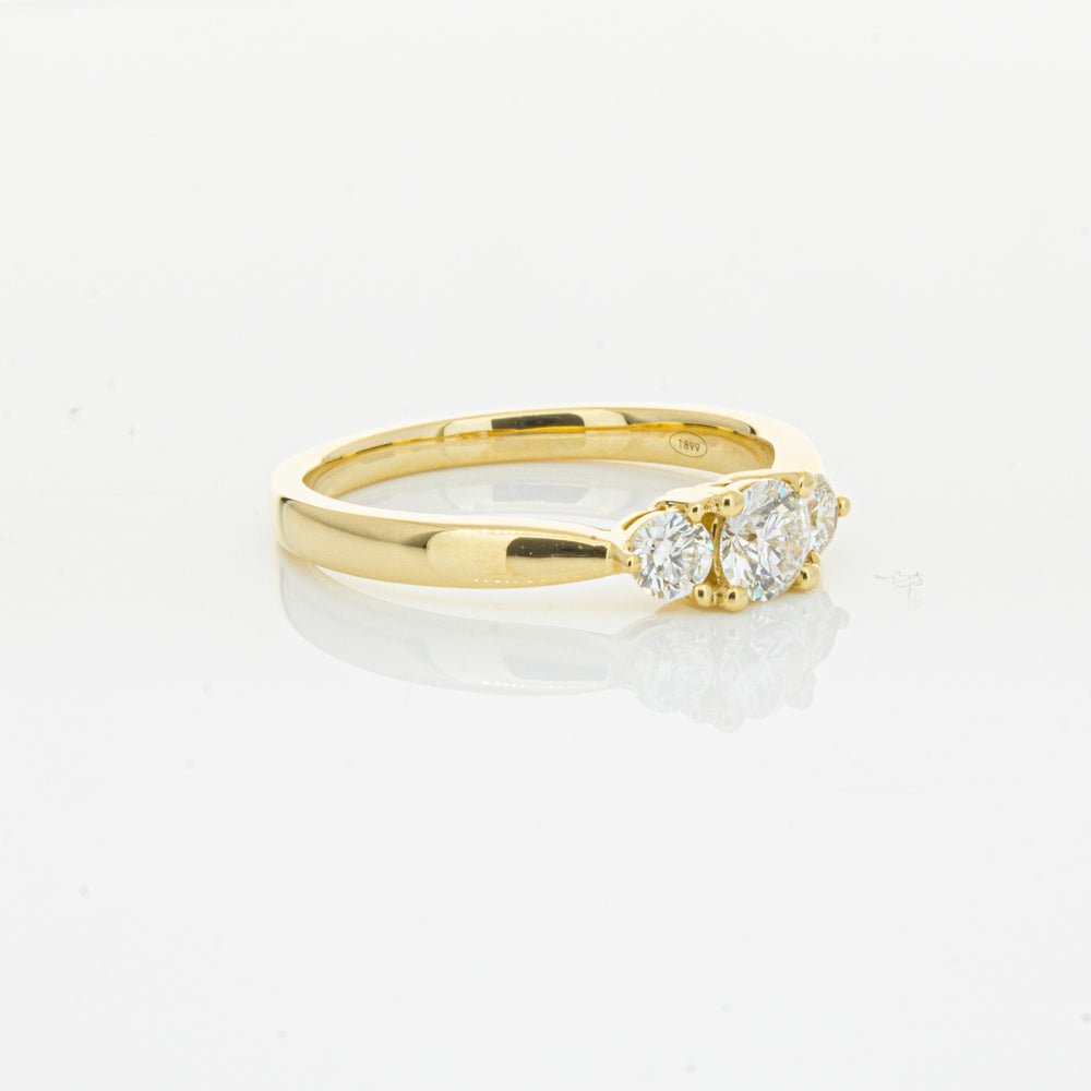 Symmetry is assured with harmoniously balanced accent diamonds highlighting an elevated centre diamond.