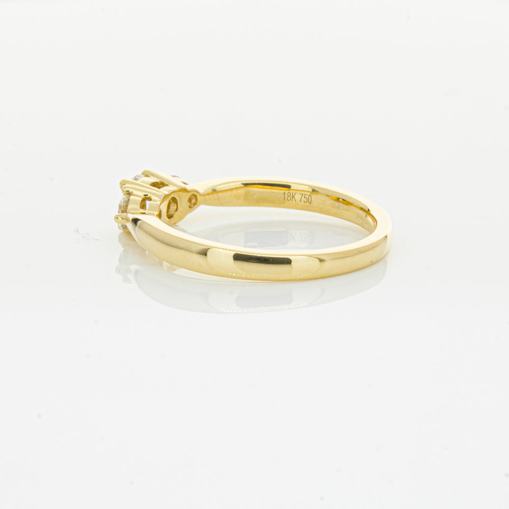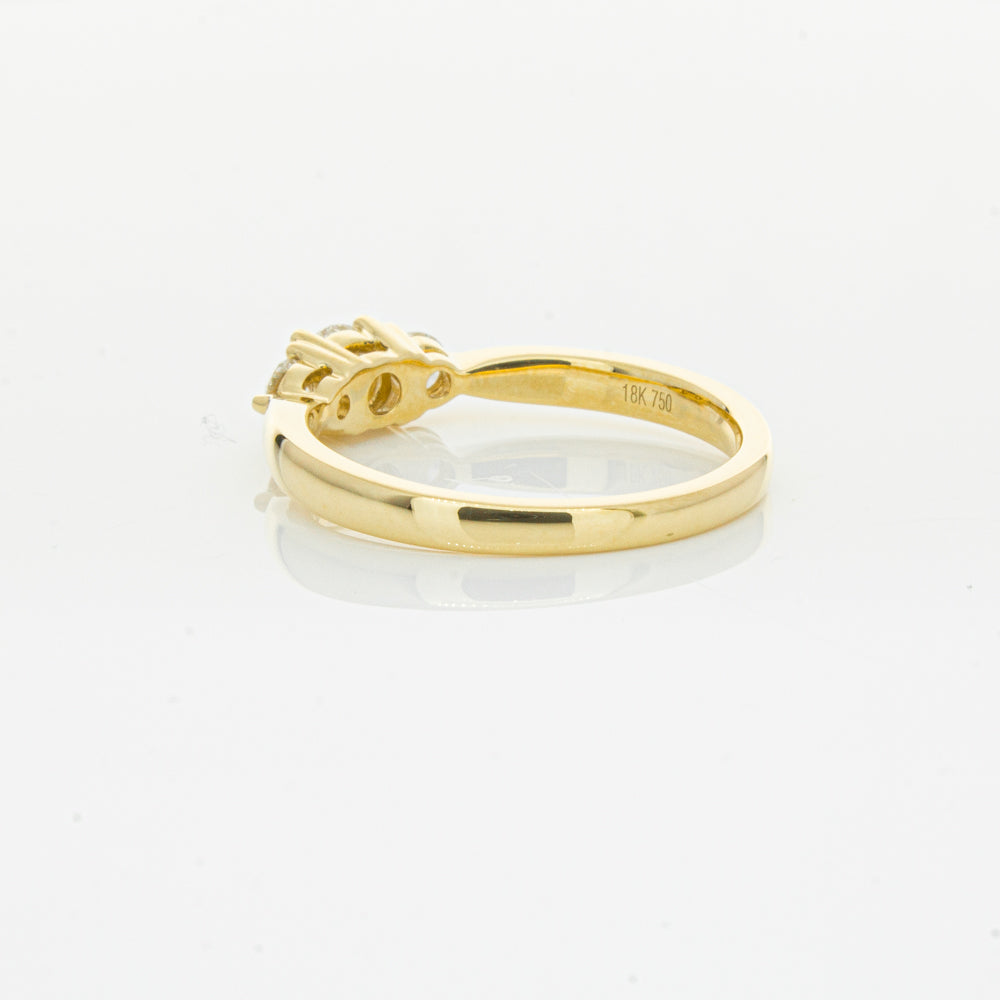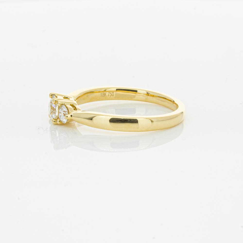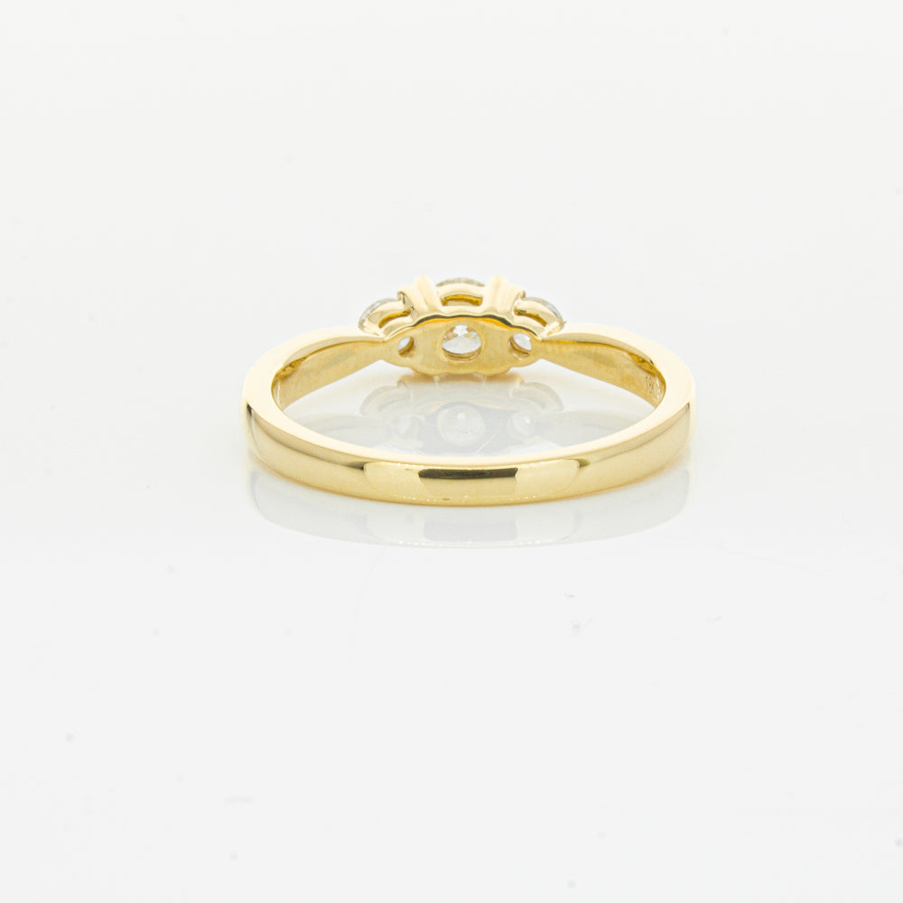 Symmetry is assured with harmoniously balanced accent diamonds highlighting an elevated centre diamond.
