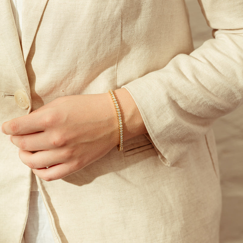 The bracelet is secured with a hidden clasp and a pair of safety catches.