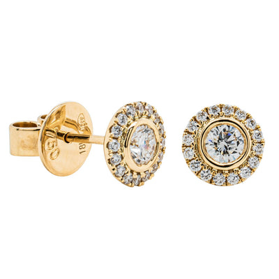 These stunning diamond Isla earrings are crafted in 18ct yellow gold from our signature 1899 collection. They boast two centre diamonds framed by a delicate halo of sparkling round brilliant cut diamonds.  Secured with our specialty 1899 post and butterfly fittings.