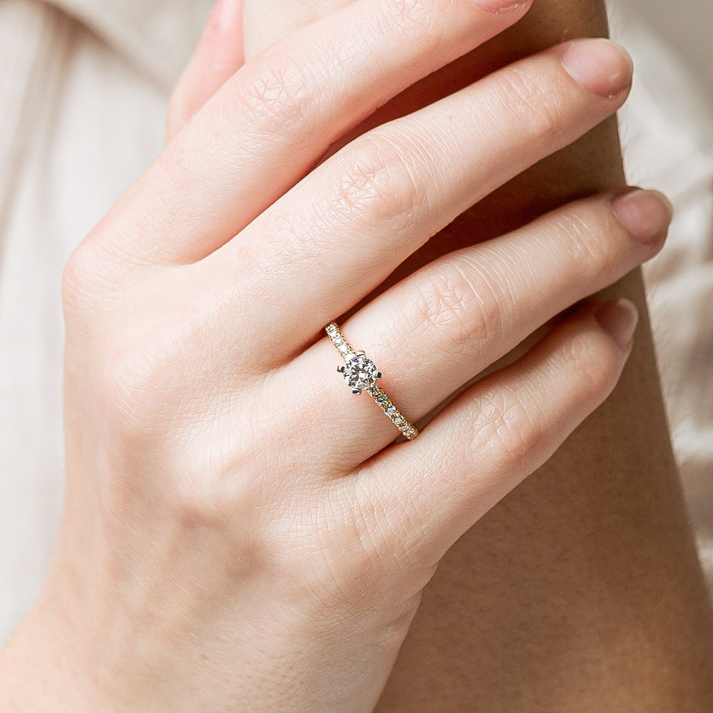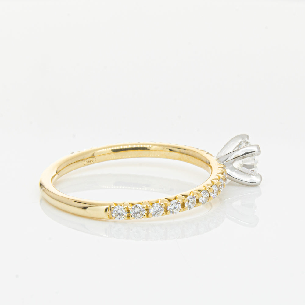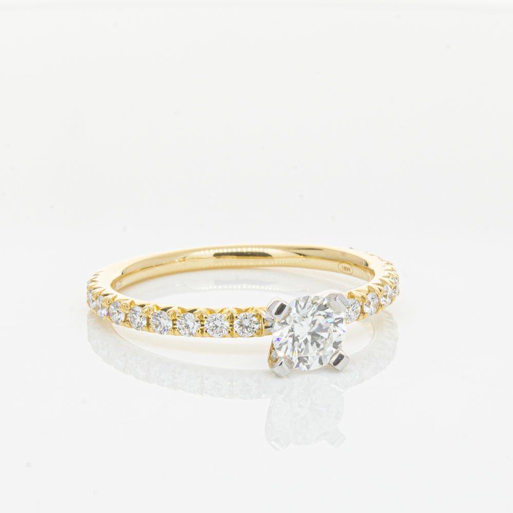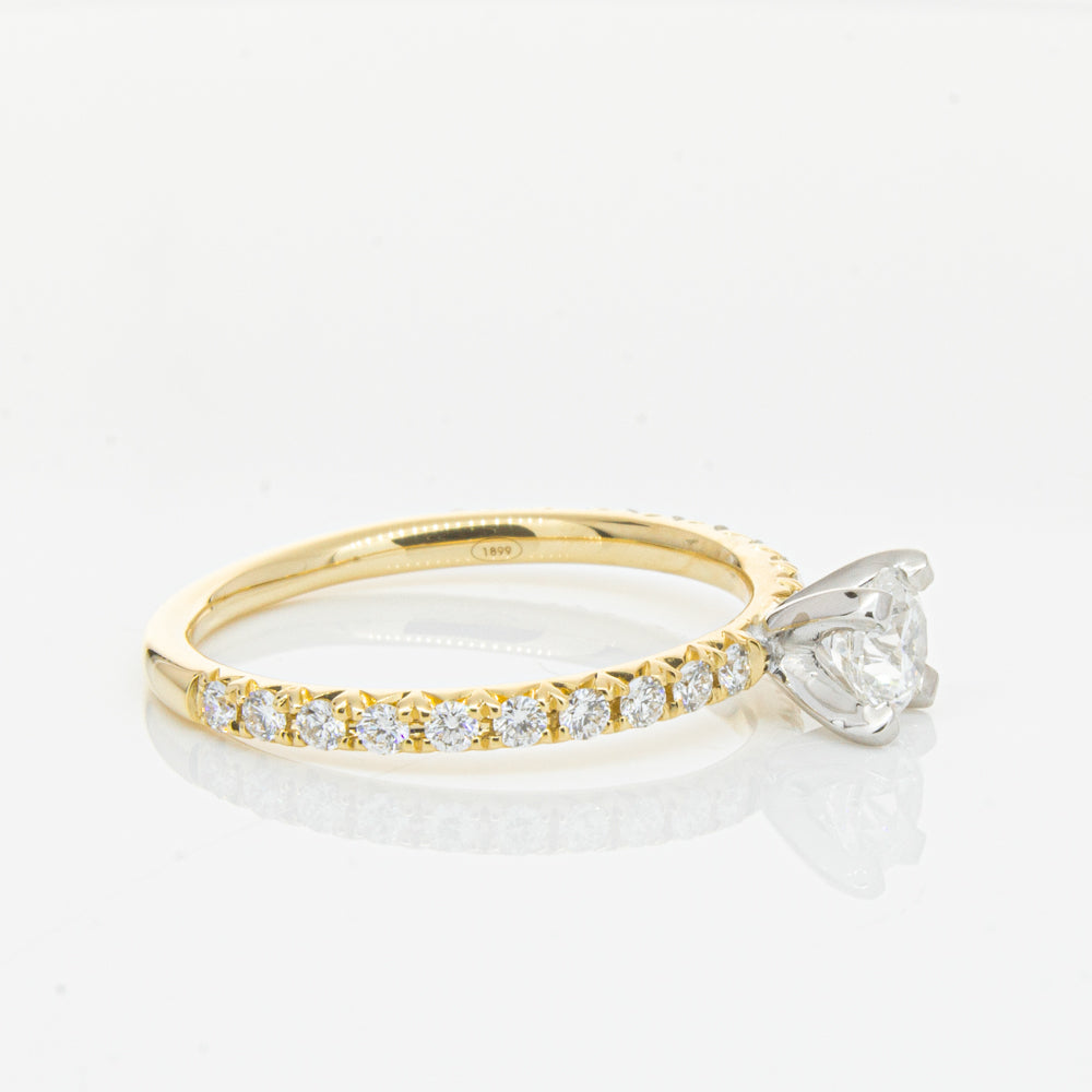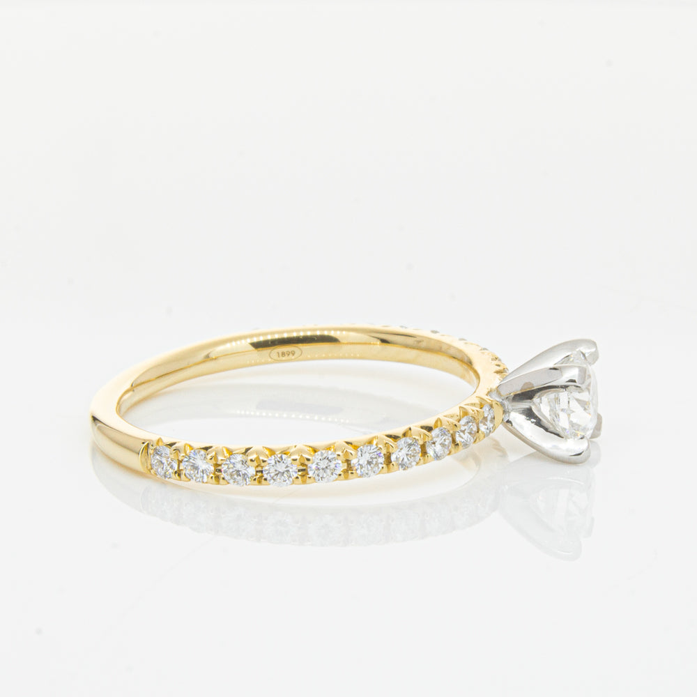 Fall in love with this breathtaking diamond Comet ring. Beautifully crafted in 18ct yellow gold this piece from our signature 1899 collection features a shimmering white gold four claw set round brilliant cut diamond. Complete with dazzling diamond set shoulders this piece is sure to put a sparkle in your step.