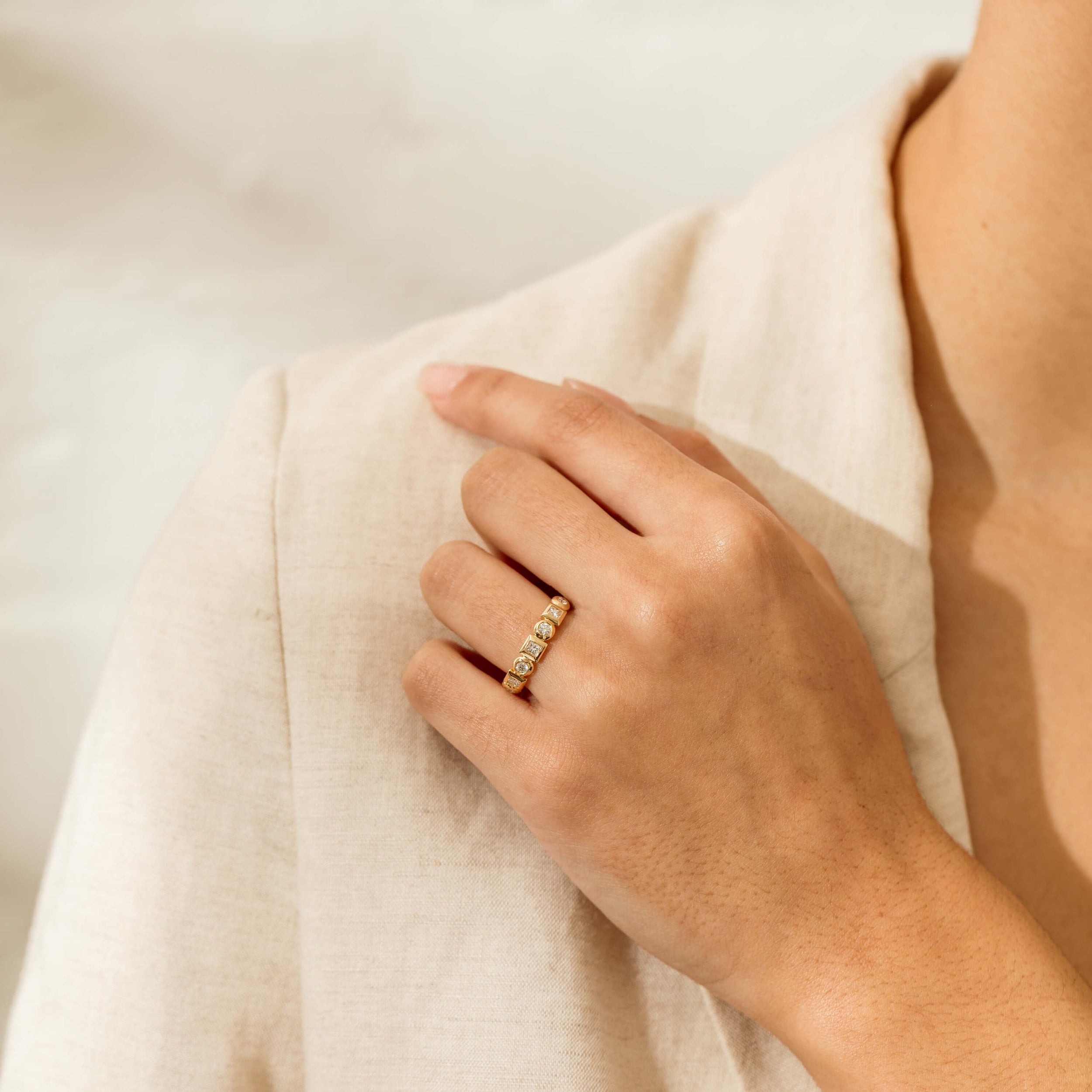 Crafted in radiant 18ct yellow gold, the band enhances the beauty of each diamond. A true expression of individuality, the Mixed Cut Diamond Fusion Band is a piece to be treasured.
