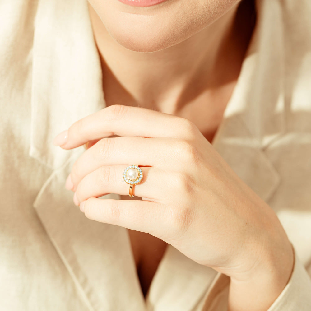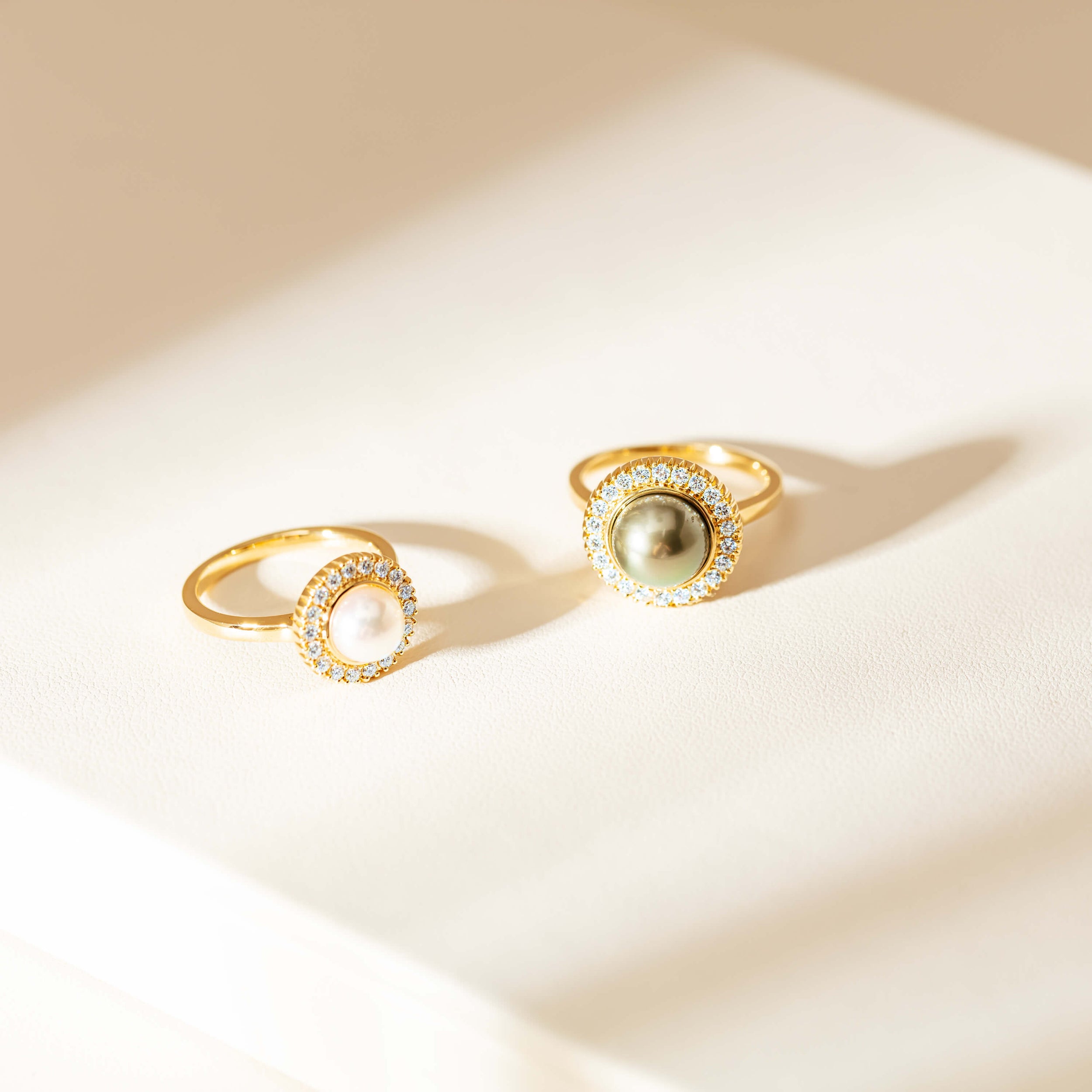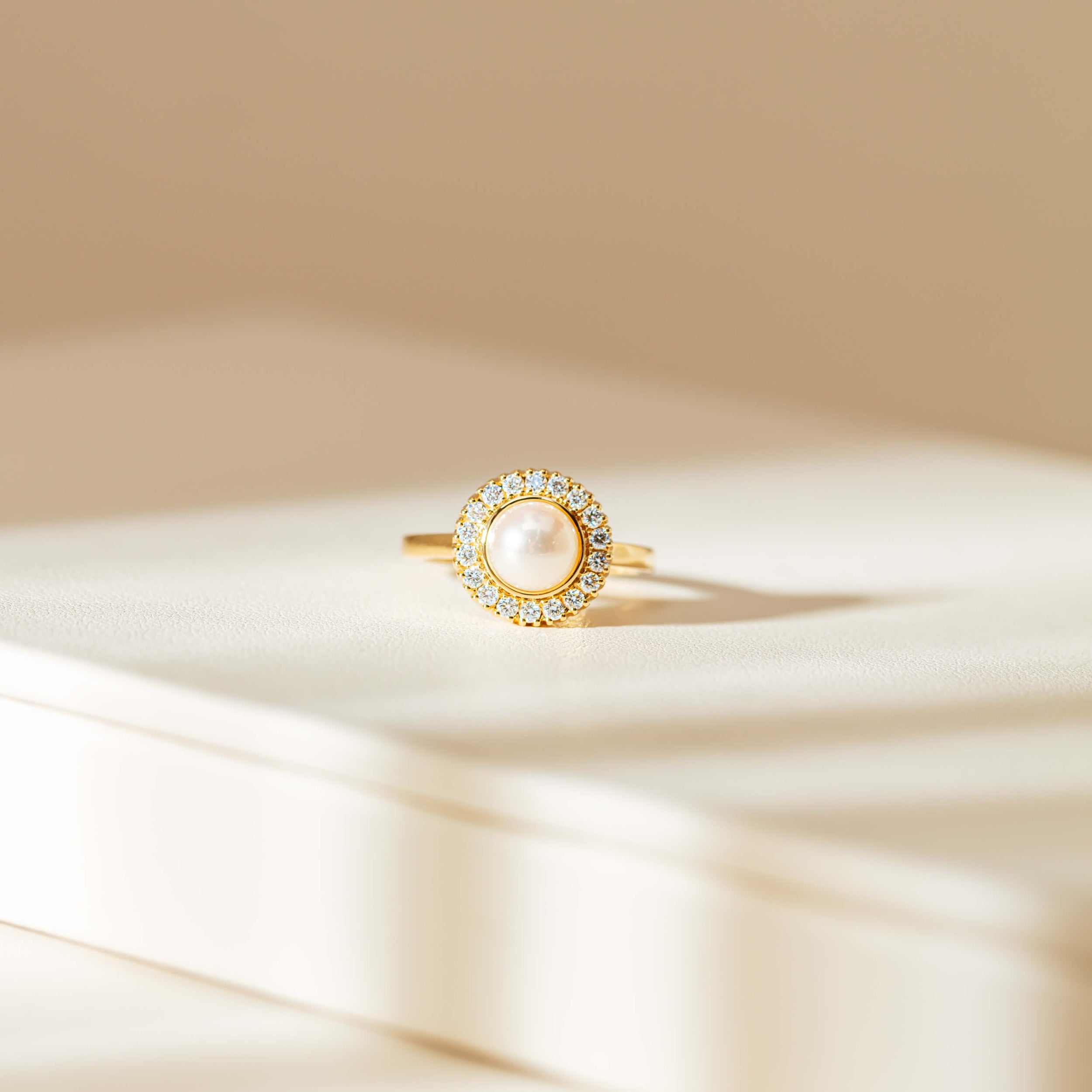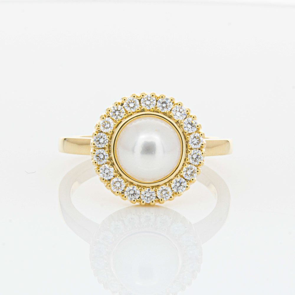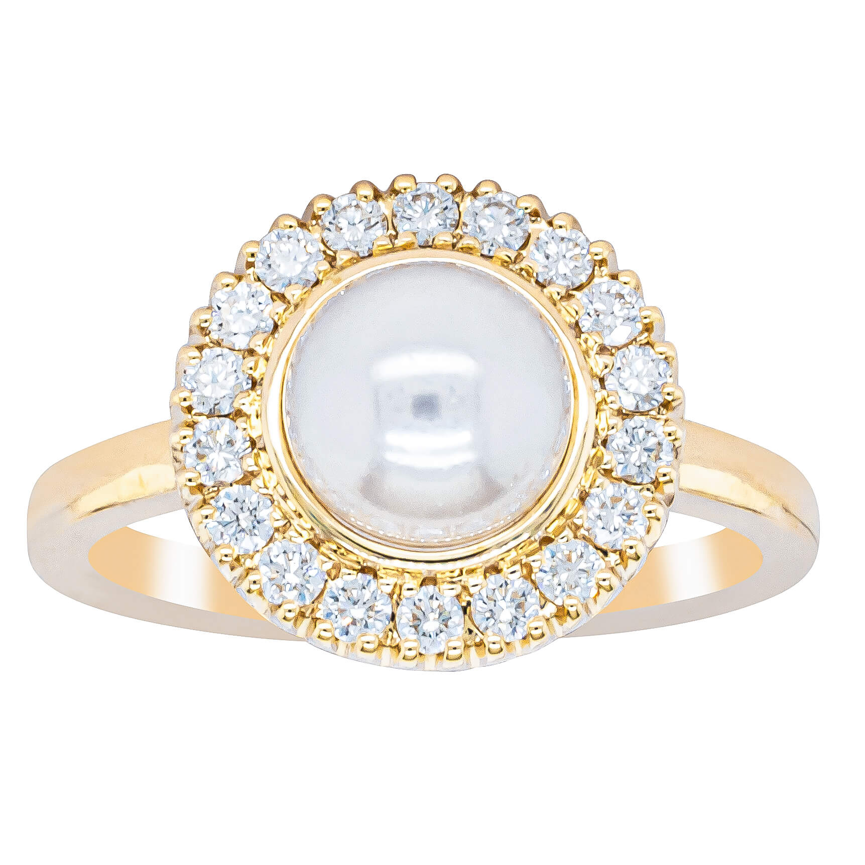 Classic and timeless, this beautiful Daisy ring boasts a Akoya pearl, accompanied by a halo of sparkling round brilliant cut diamonds. A simply breathtaking piece that you will adore wearing!