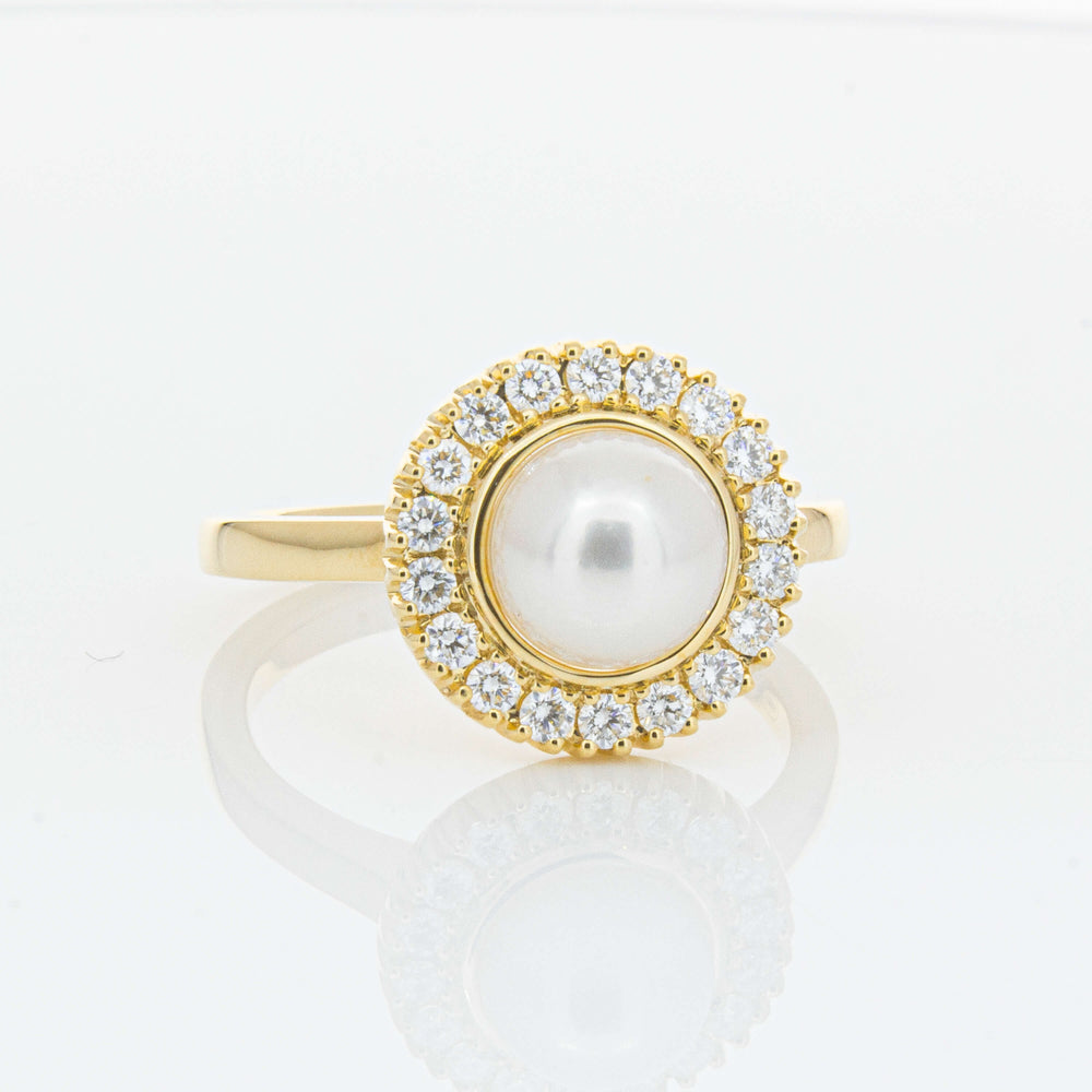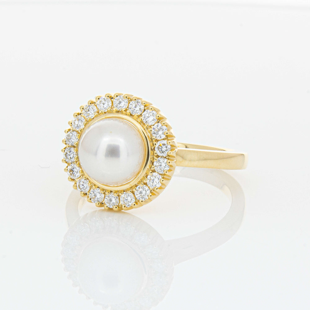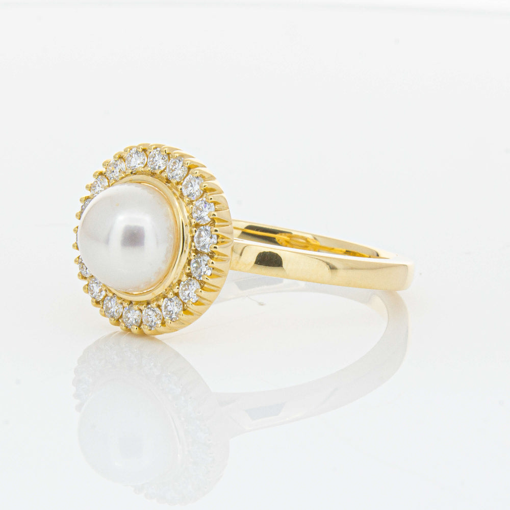 18ct Yellow Gold Akoya Pearl & Diamond Daisy Ring