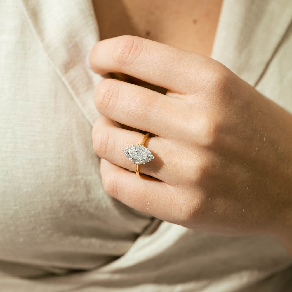 In the heart of the City of Light, where romance and refinement intertwine, lies the inspiration for Belle, our captivating halo design. With its French origins, Belle pays homage to the timeless elegance of Paris, with the demurely tapered shank guiding the eye towards a mesmerising centrepiece. Indulge in the charming beauty of Belle, for it holds the power to ignite unforgettable moments.