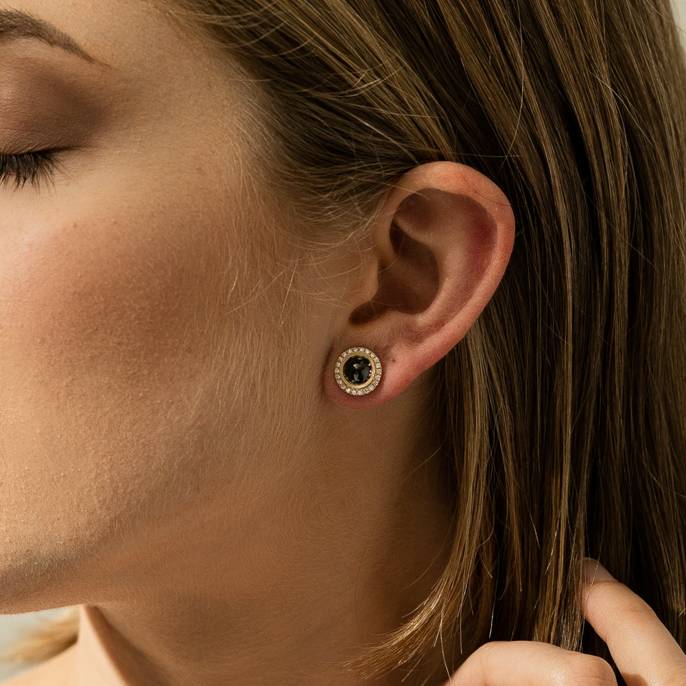 Diamonds are forever... treat yourself to these sophisticated diamond halo earrings. This precious pair feature bold black diamonds, framed by glittering white diamonds and set in 18ct yellow gold from our signature 1899 collection. Perfectly elegant.