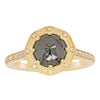 Elegantly set in 18ct yellow gold, this special ring from our signature 1899 collection features one impressive rose cut black diamond surrounded by a halo and detailed diamond shoulders.