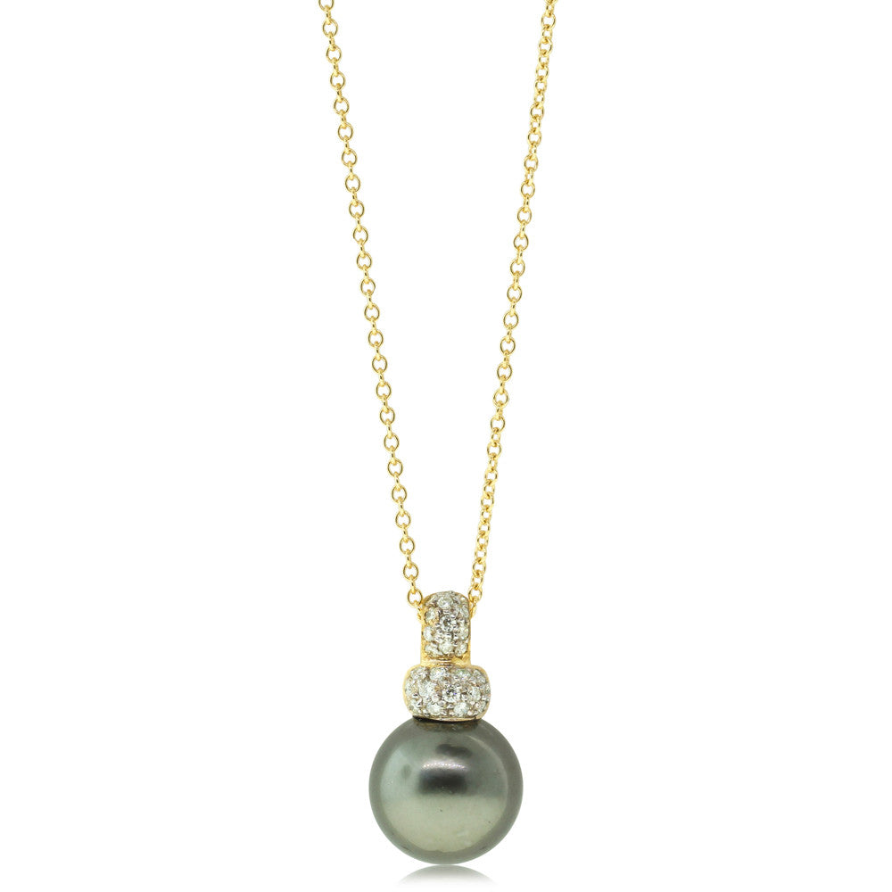 18ct Yellow Gold Tahitian Black Pearl & Diamond Pendant
