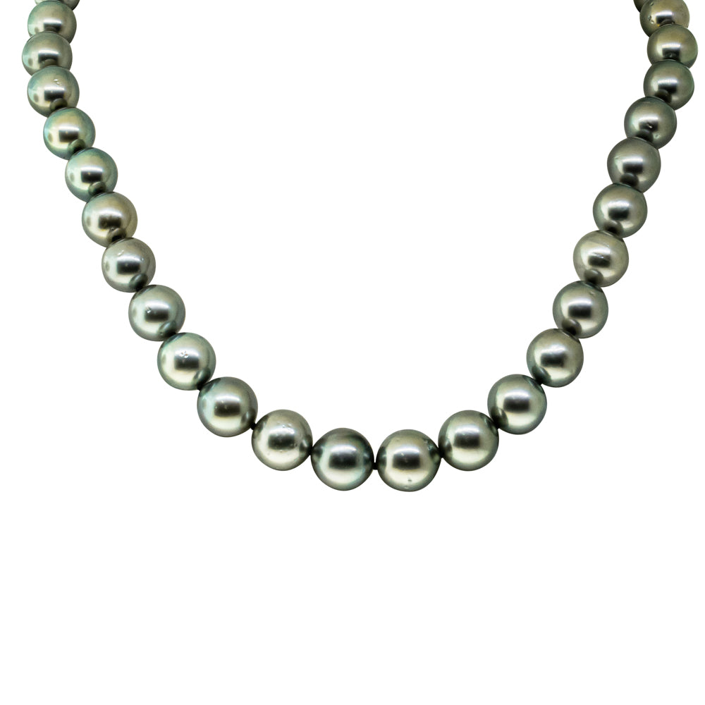 18ct White Gold Cultured Black 9.2-10.5mm Pearl Necklace 44cm