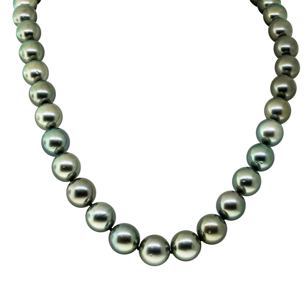 18ct White Gold Cultured Black 10-11.8mm Pearl Necklace 44cm