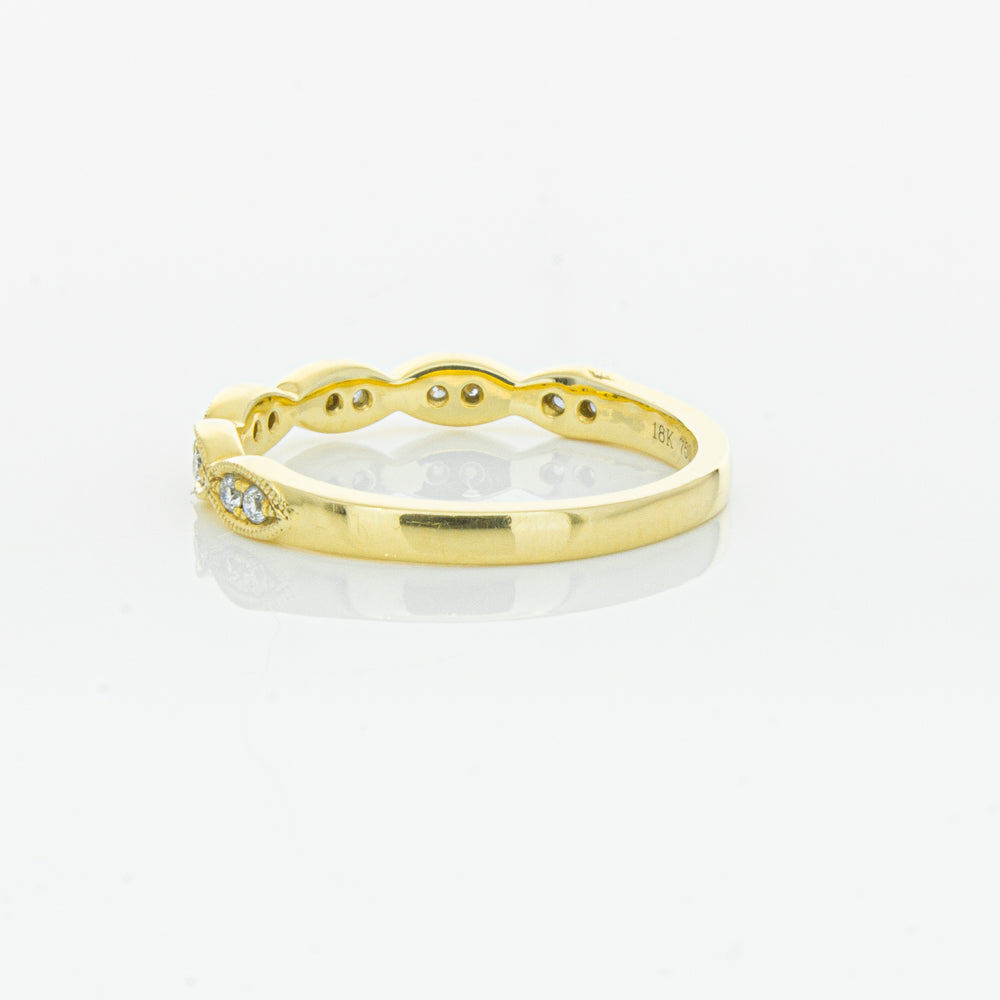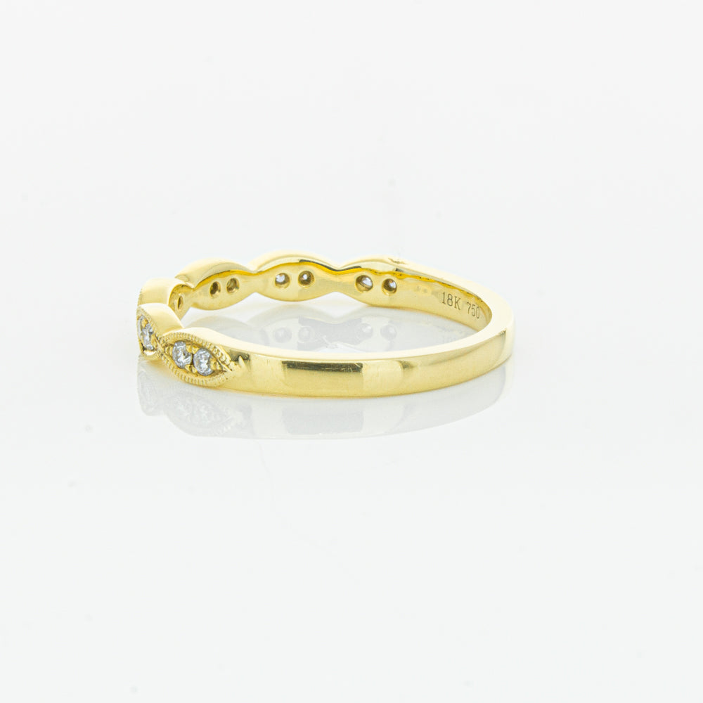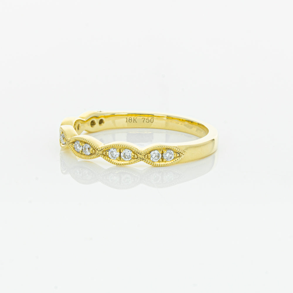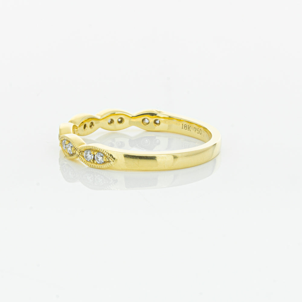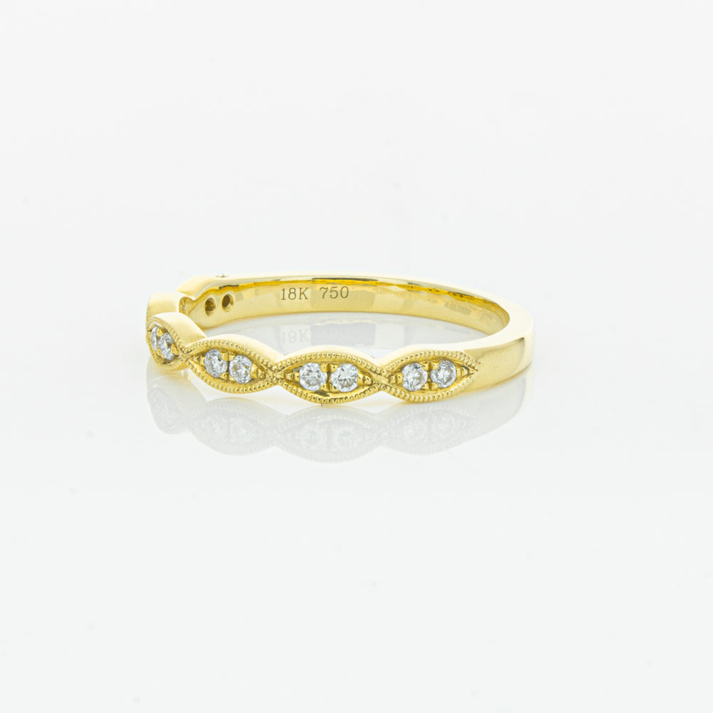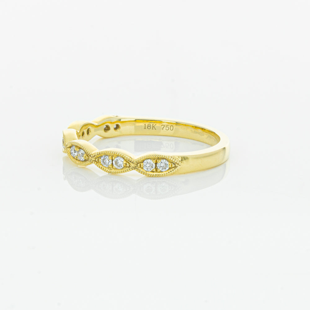 She will simply sparkle in this glittering 18ct yellow gold and diamond band. This elegant ring has been crafted with scalloped detailing, featuring twinkling round brilliant cut diamonds.