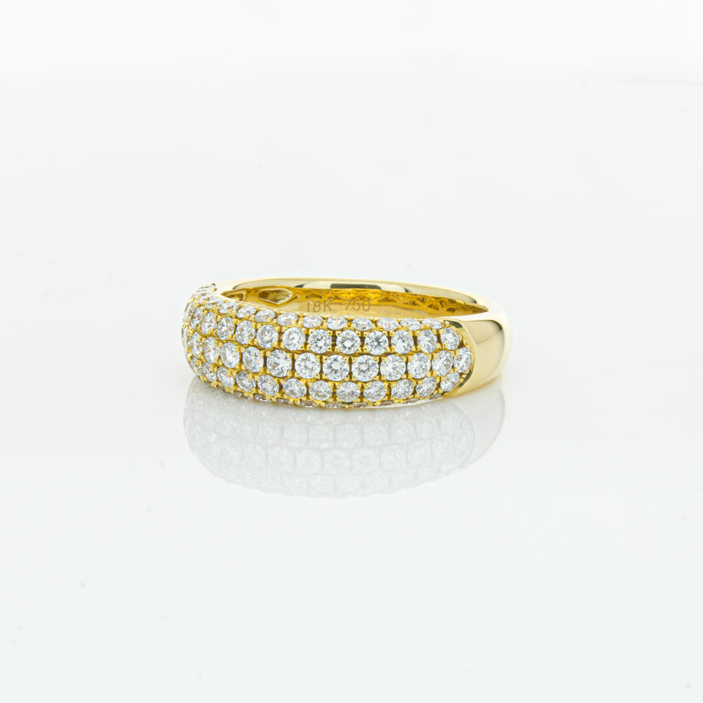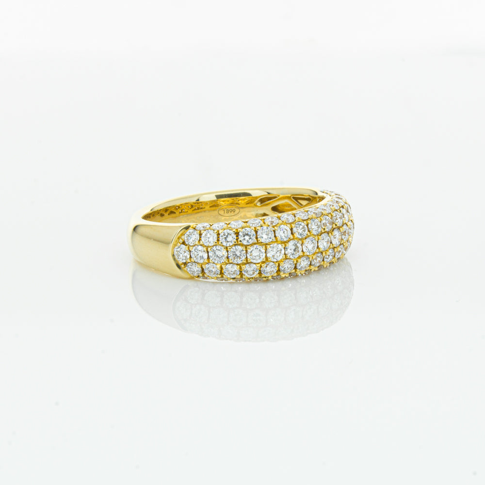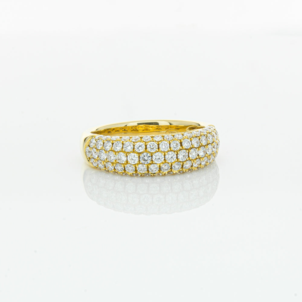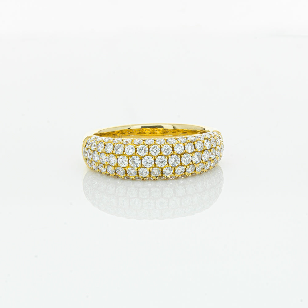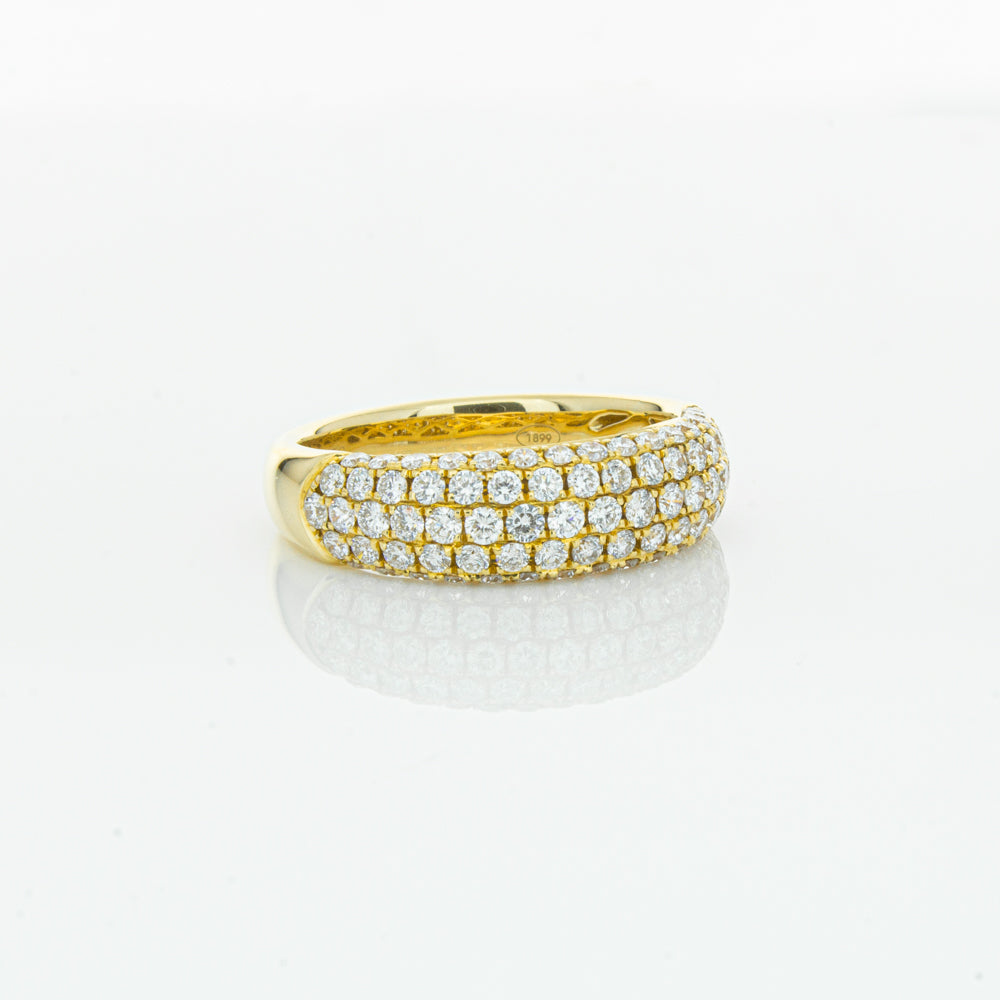 Shower her with diamonds! This elegant ring is crafted in 18ct yellow gold, featuring dazzling pave set round brilliant cut diamonds. She will treasure this magnificent ring.