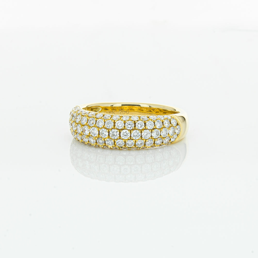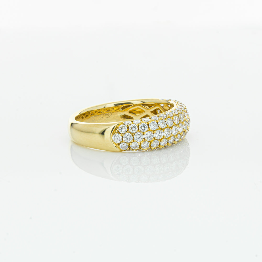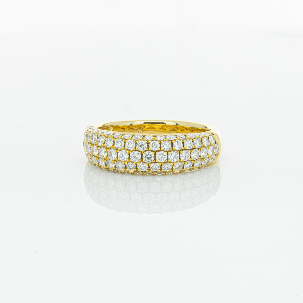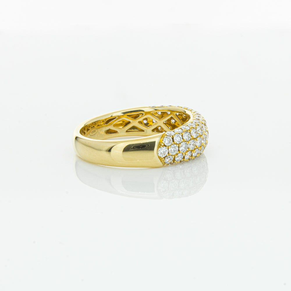 Shower her with diamonds! This elegant ring is crafted in 18ct yellow gold, featuring dazzling pave set round brilliant cut diamonds. She will treasure this magnificent ring.