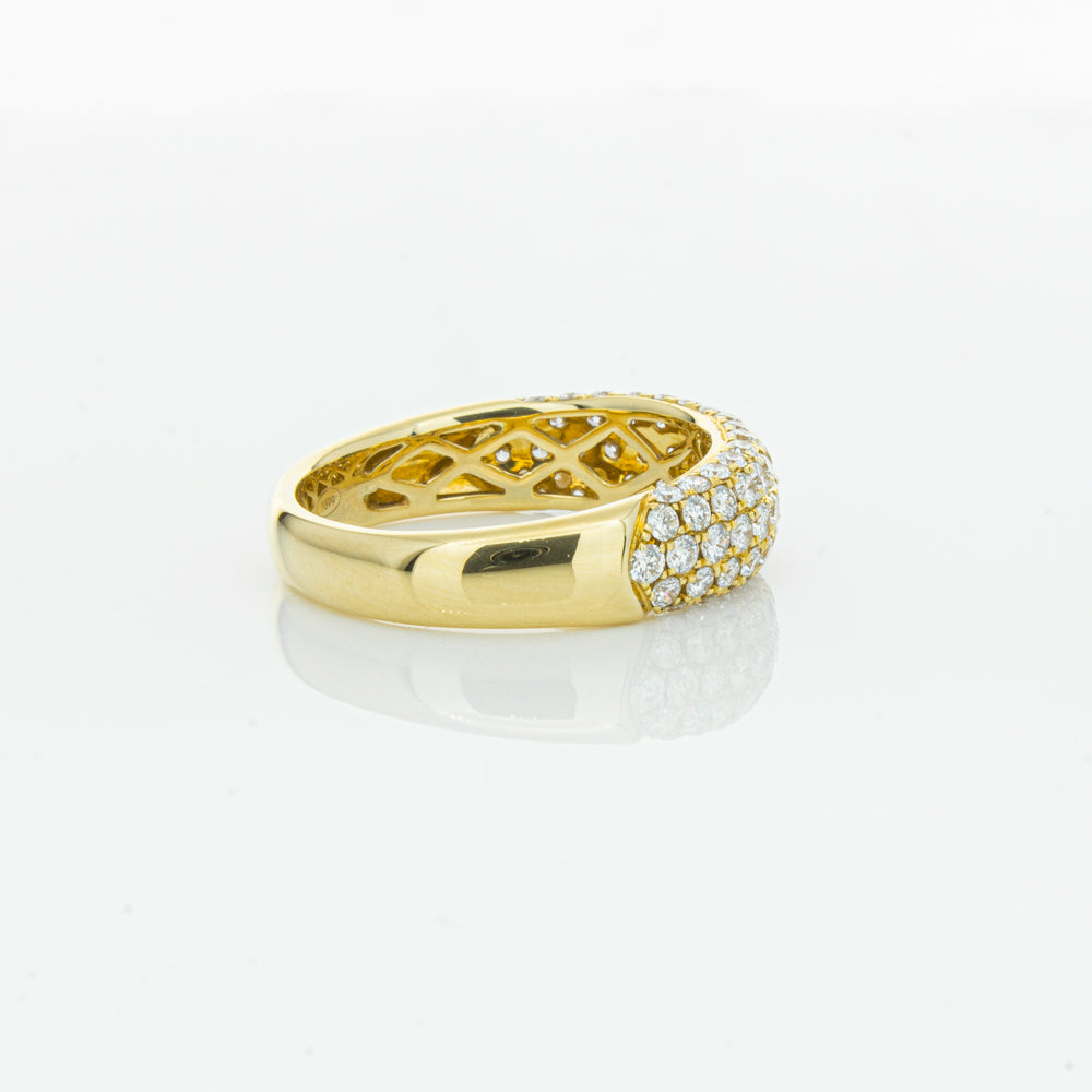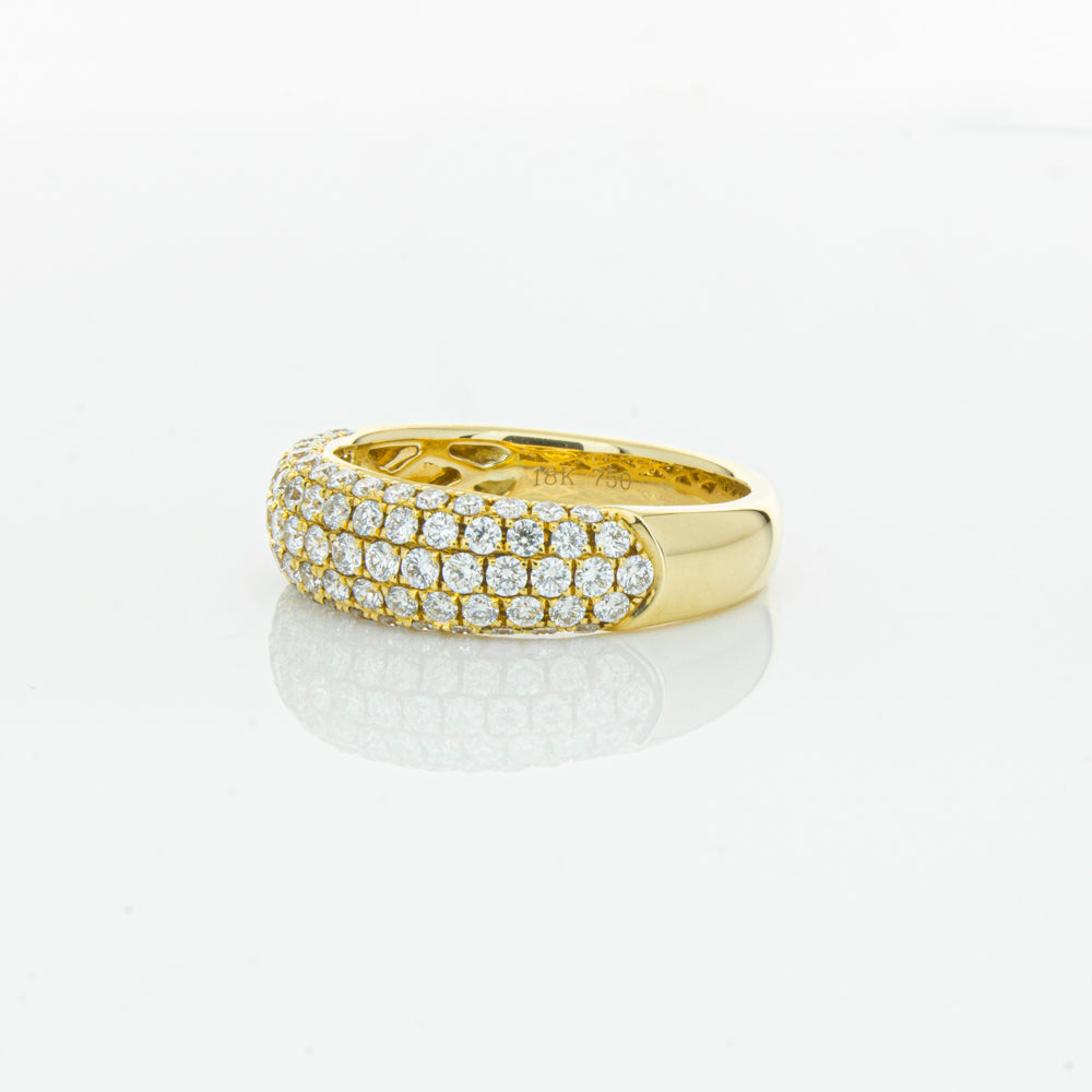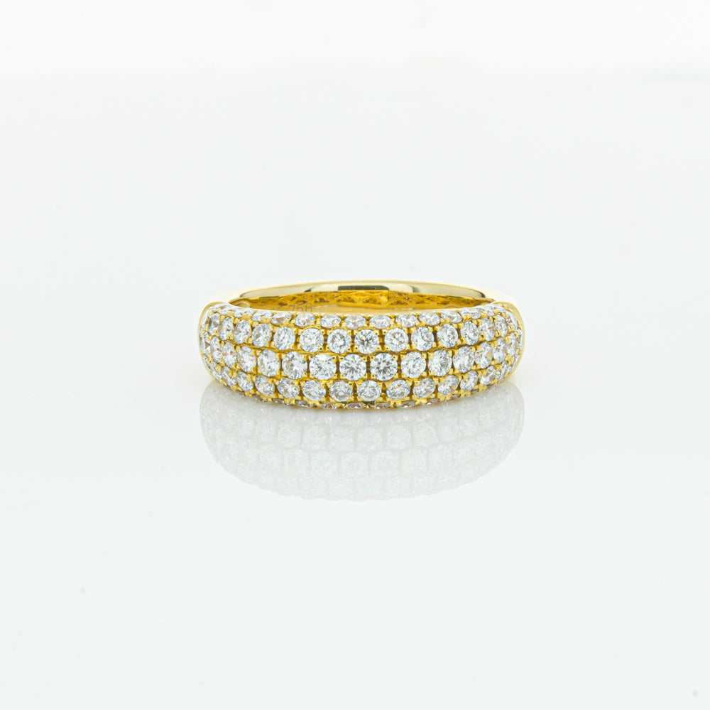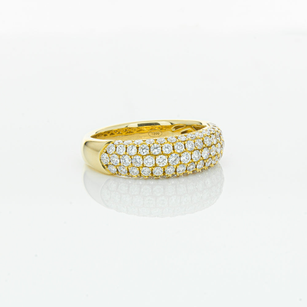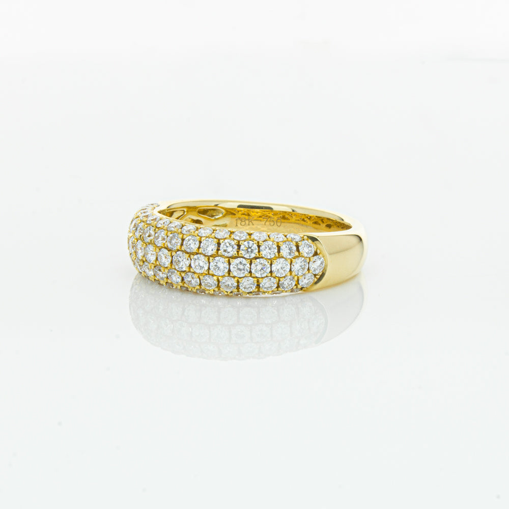 Shower her with diamonds! This elegant ring is crafted in 18ct yellow gold, featuring dazzling pave set round brilliant cut diamonds. She will treasure this magnificent ring.