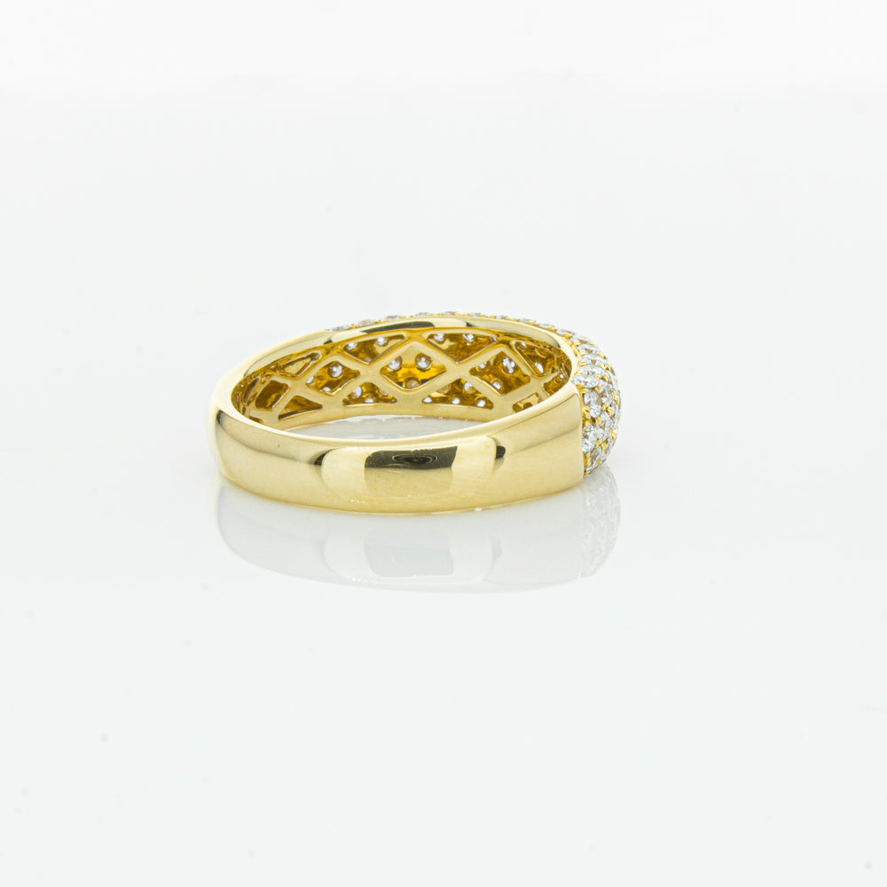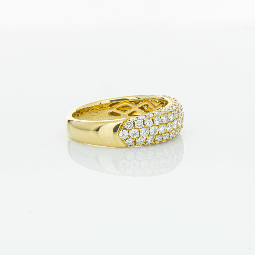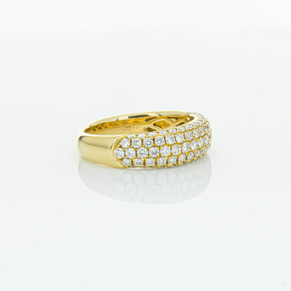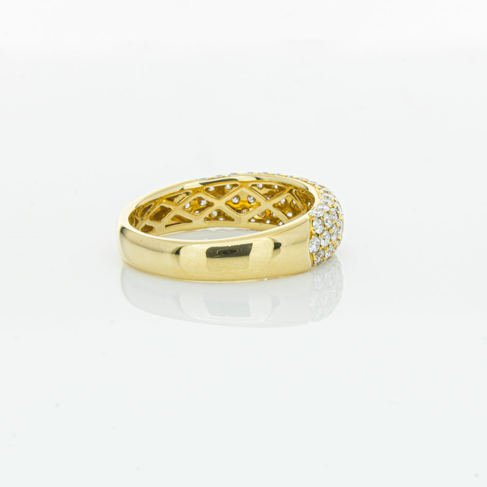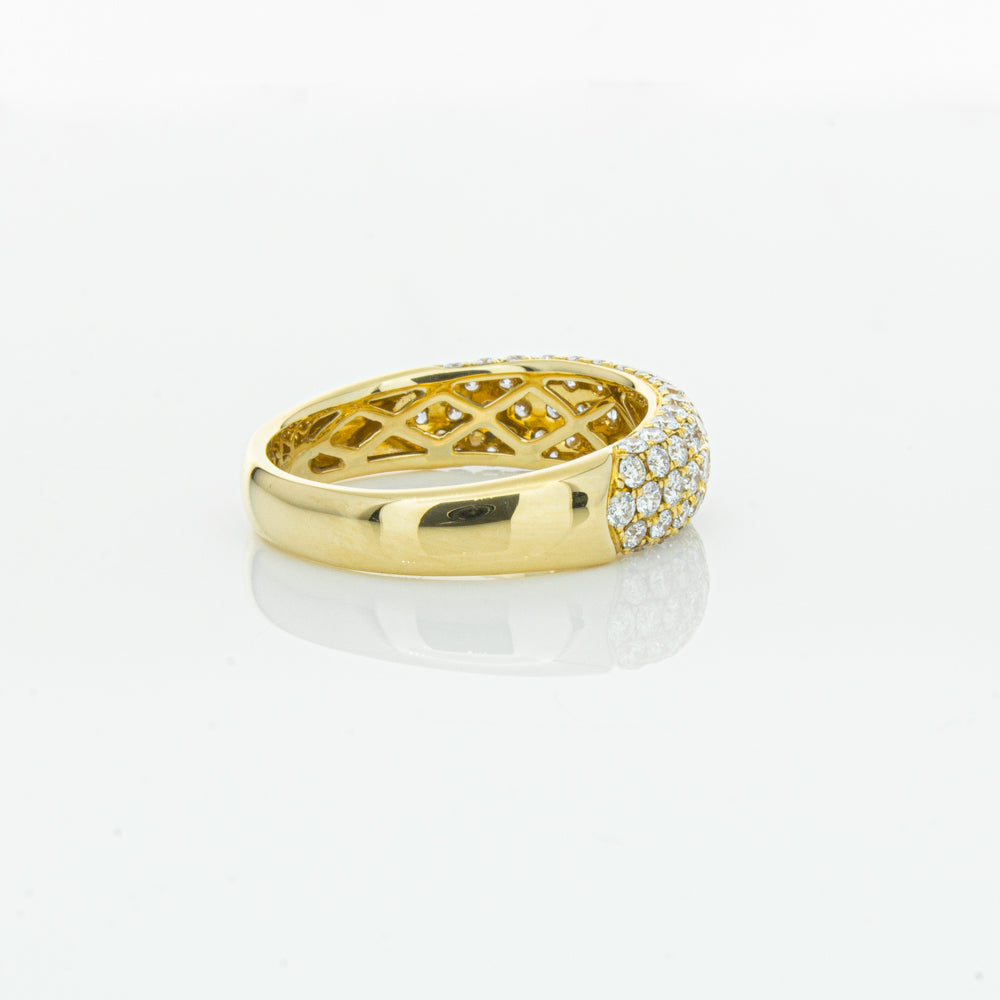 Shower her with diamonds! This elegant ring is crafted in 18ct yellow gold, featuring dazzling pave set round brilliant cut diamonds. She will treasure this magnificent ring.