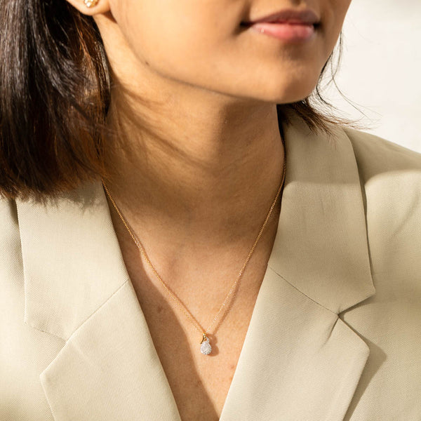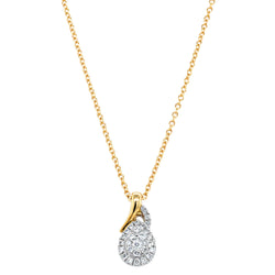 This 18ct yellow gold pendant consists of a pear shaped diamond pave mount on a yellow gold bail