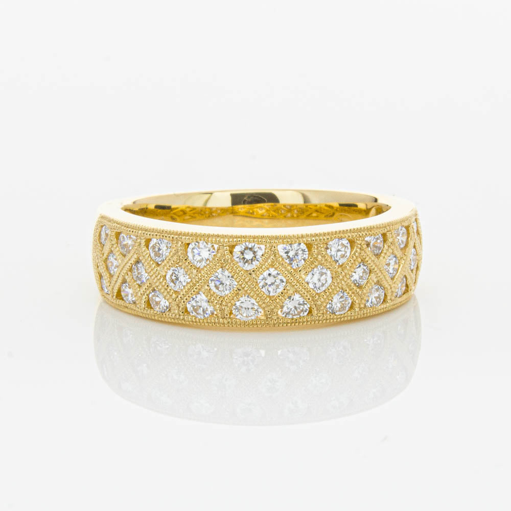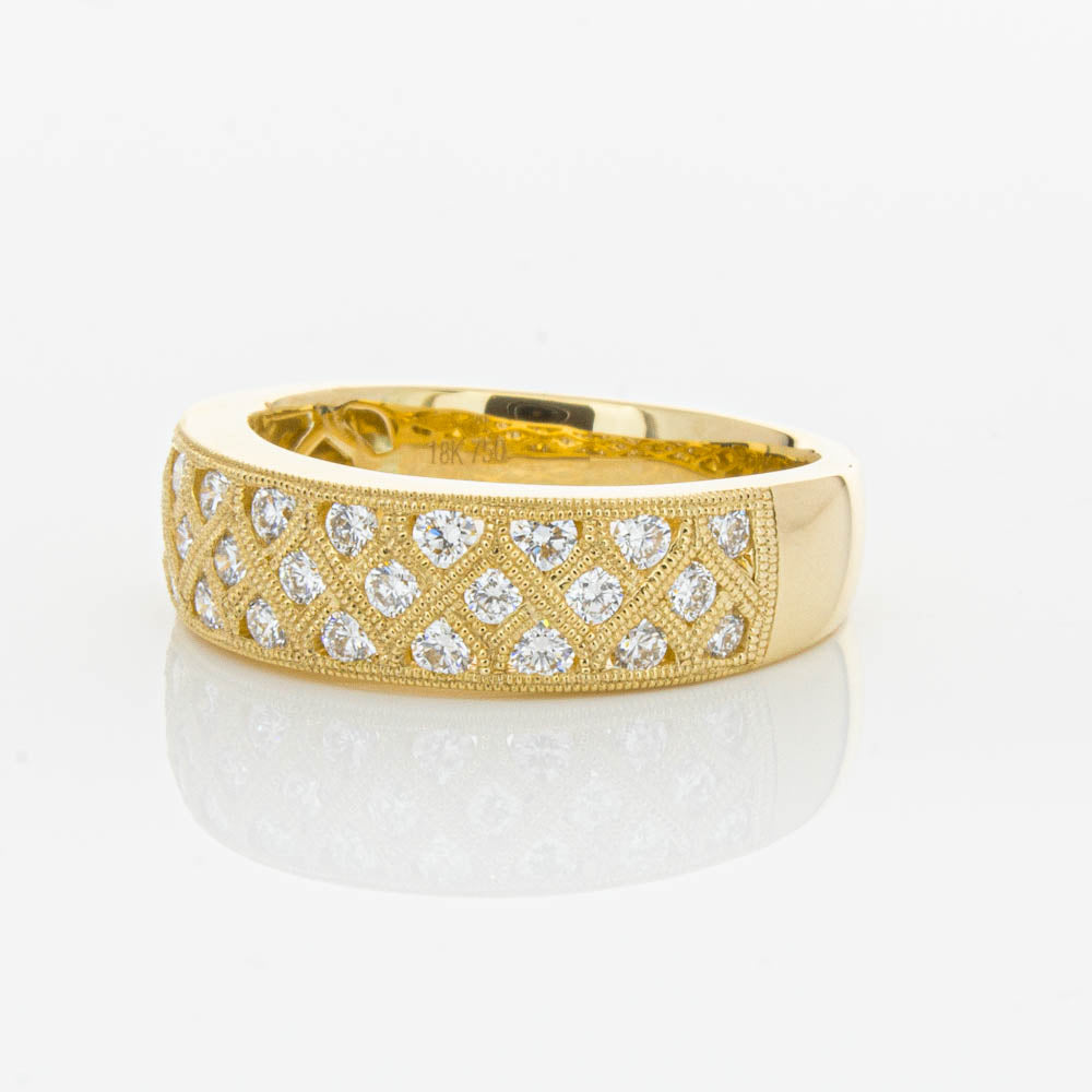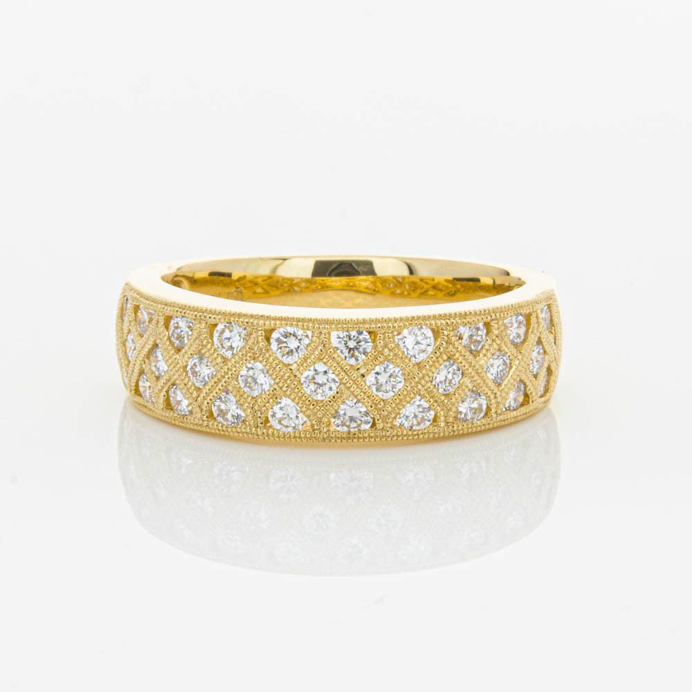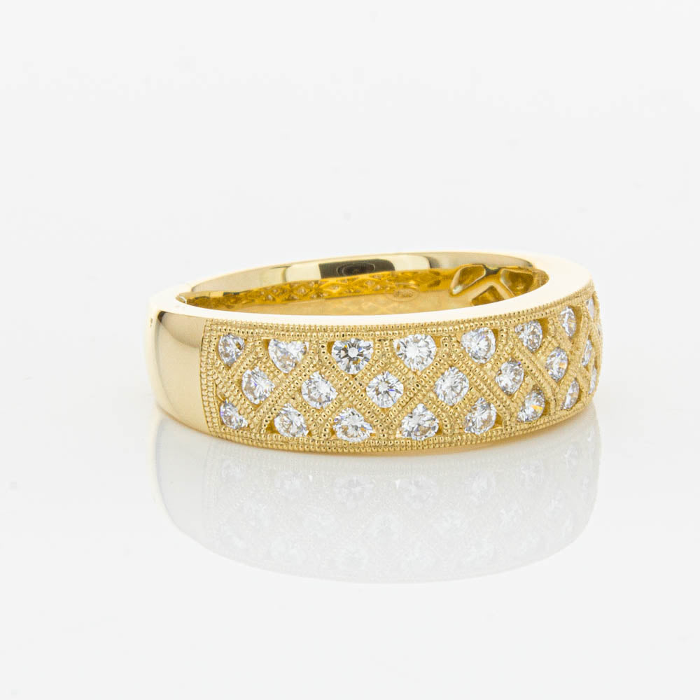Make it a sparkling surprise! Beautifully crafted in 18ct gold, this glittering Honour ring features shimmering round brilliant cut diamonds in a lattice design. A special gift that she will always treasure.