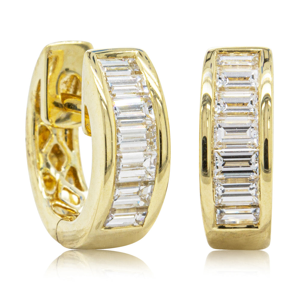 Embody sophistication in these timeless diamond earrings from our signature 1899 collection. This sparkling pair boasts shimmering baguette cut diamonds set in 18ct yellow gold. The perfect earrings to add sparkle to your day.