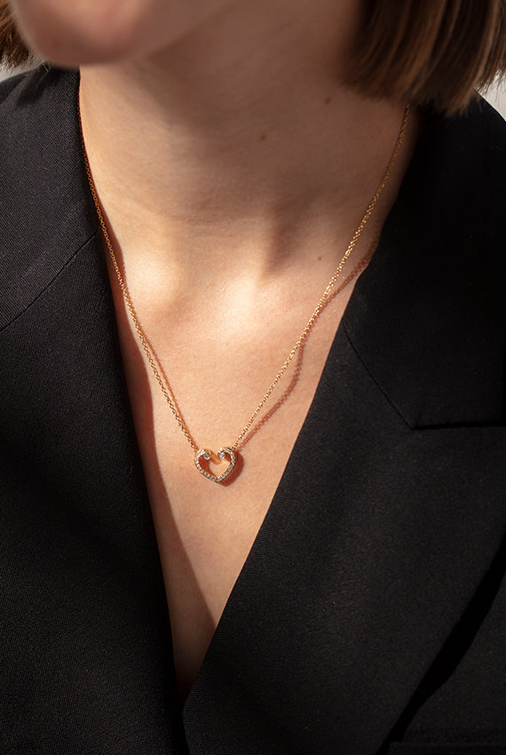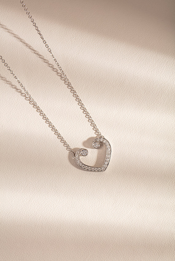 The quintessential symbol of love, this open heart koru diamond pendant is a meaningful reminder of endless love. The Koru resembles the concept of ever changing life and also staying the same.