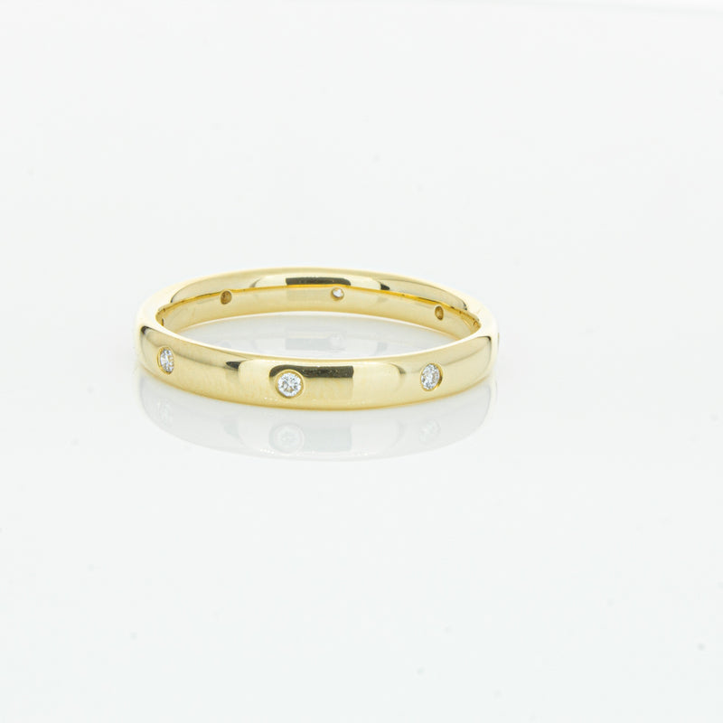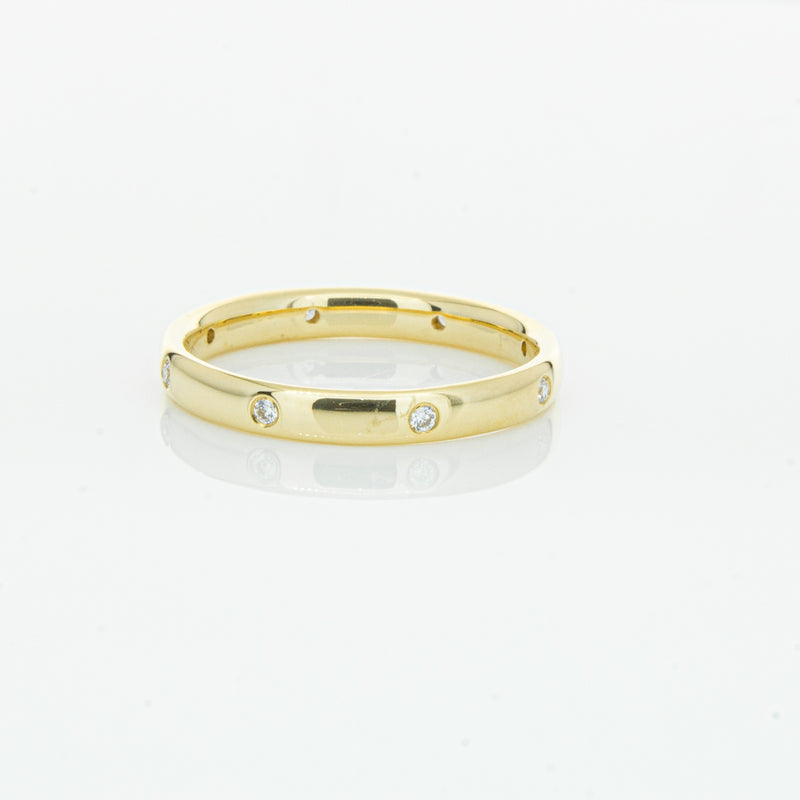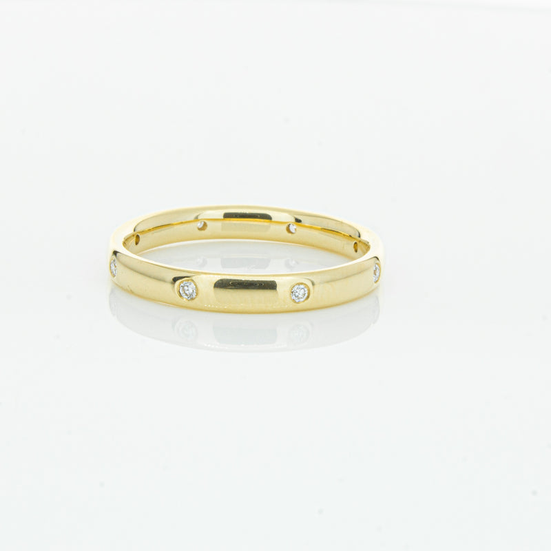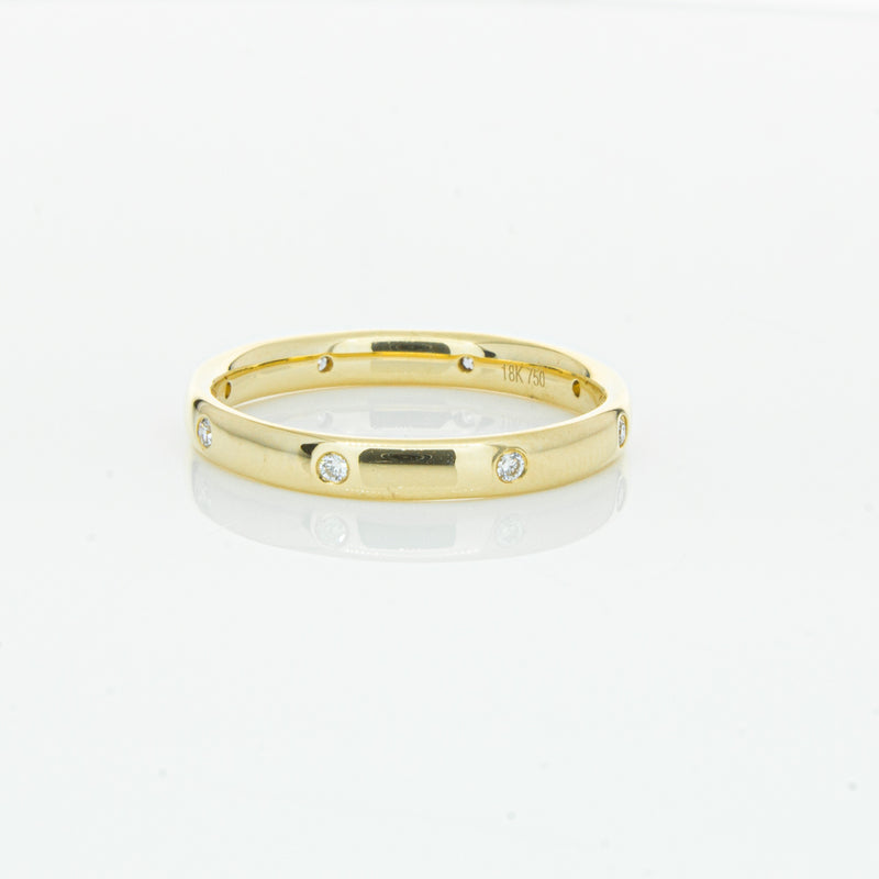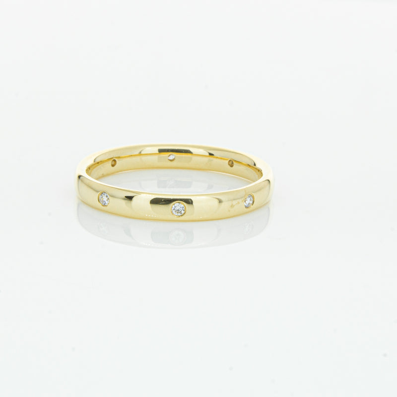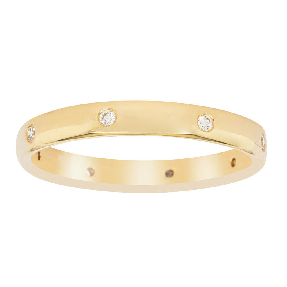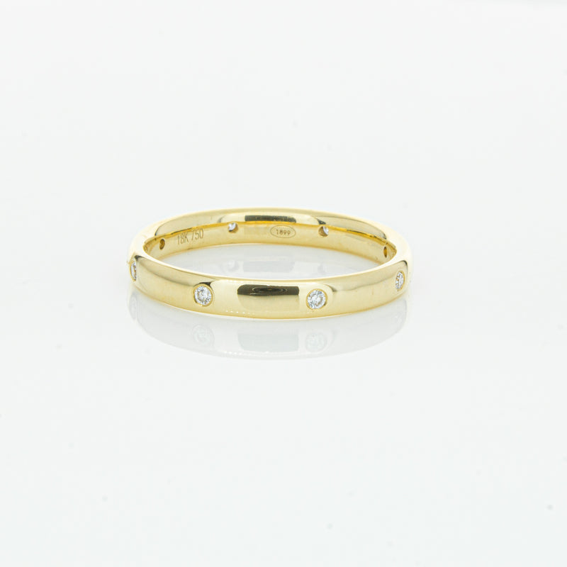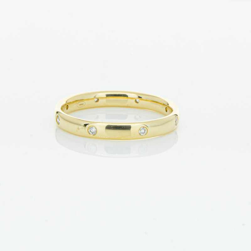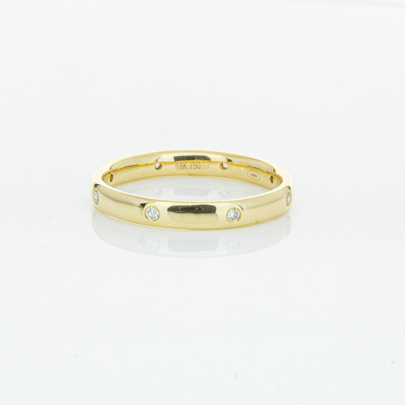 Crafted in 18ct yellow gold from our signature 1899 collection, this band is 2.8mm wide, and features eight shot set round brilliant cut diamonds evenly spaced out around the circumference. This lucky band is sure to be your lucky charm.