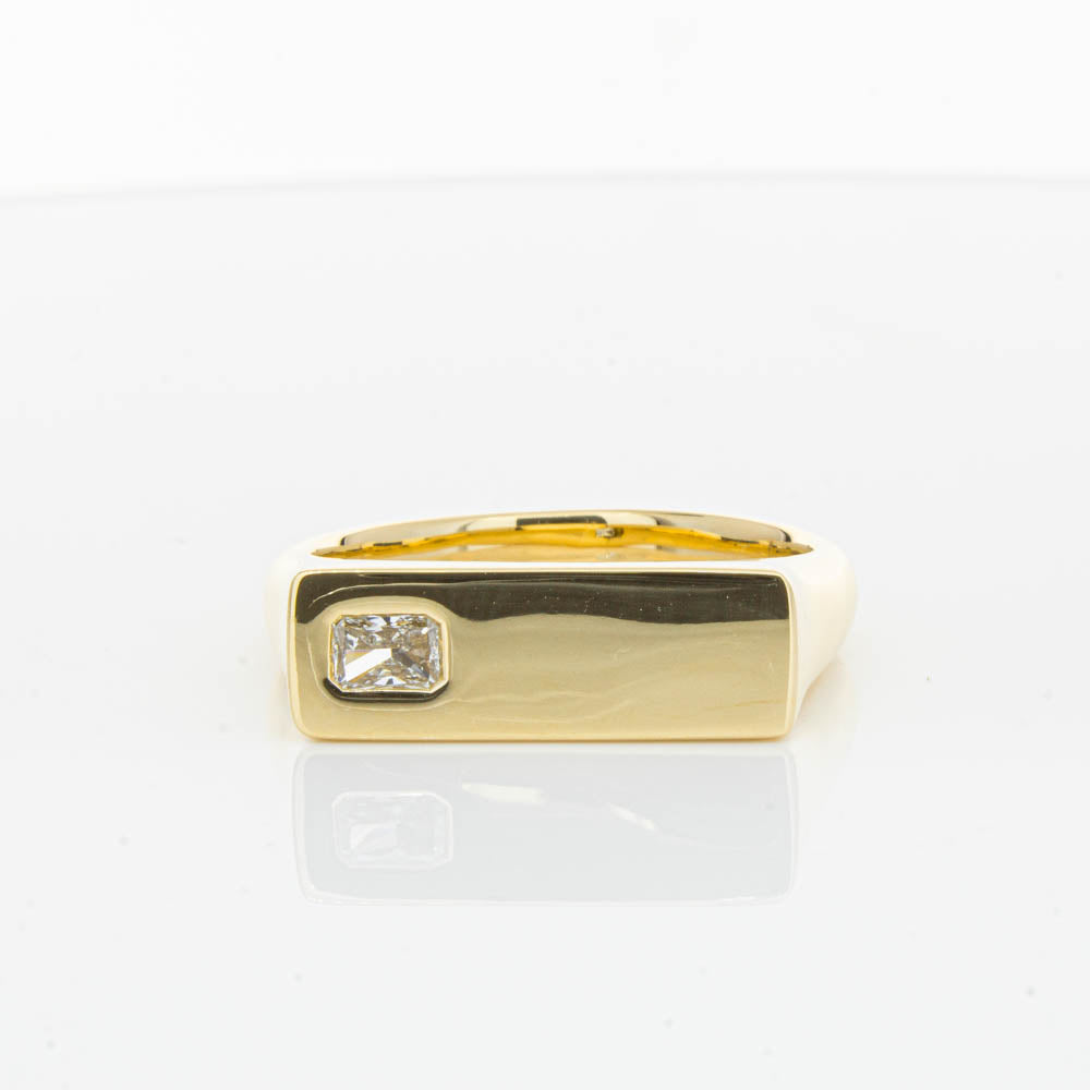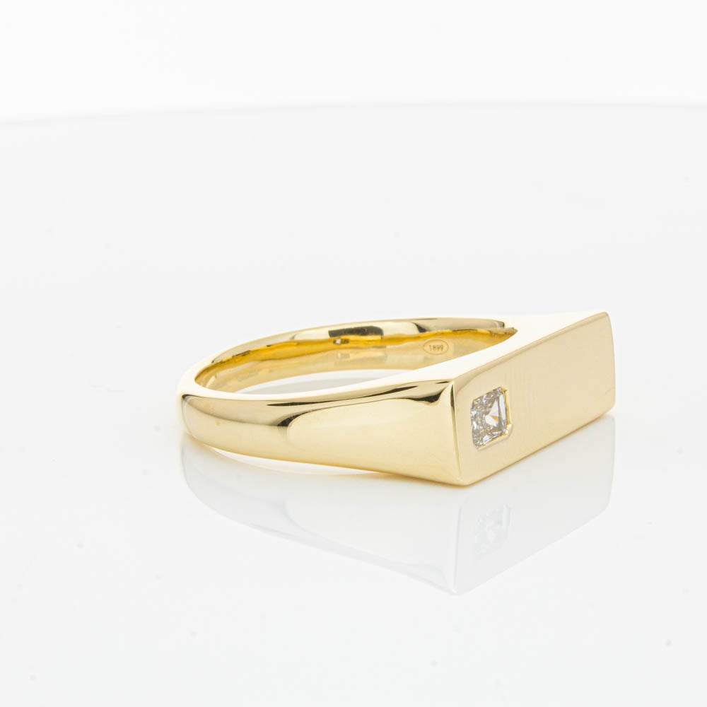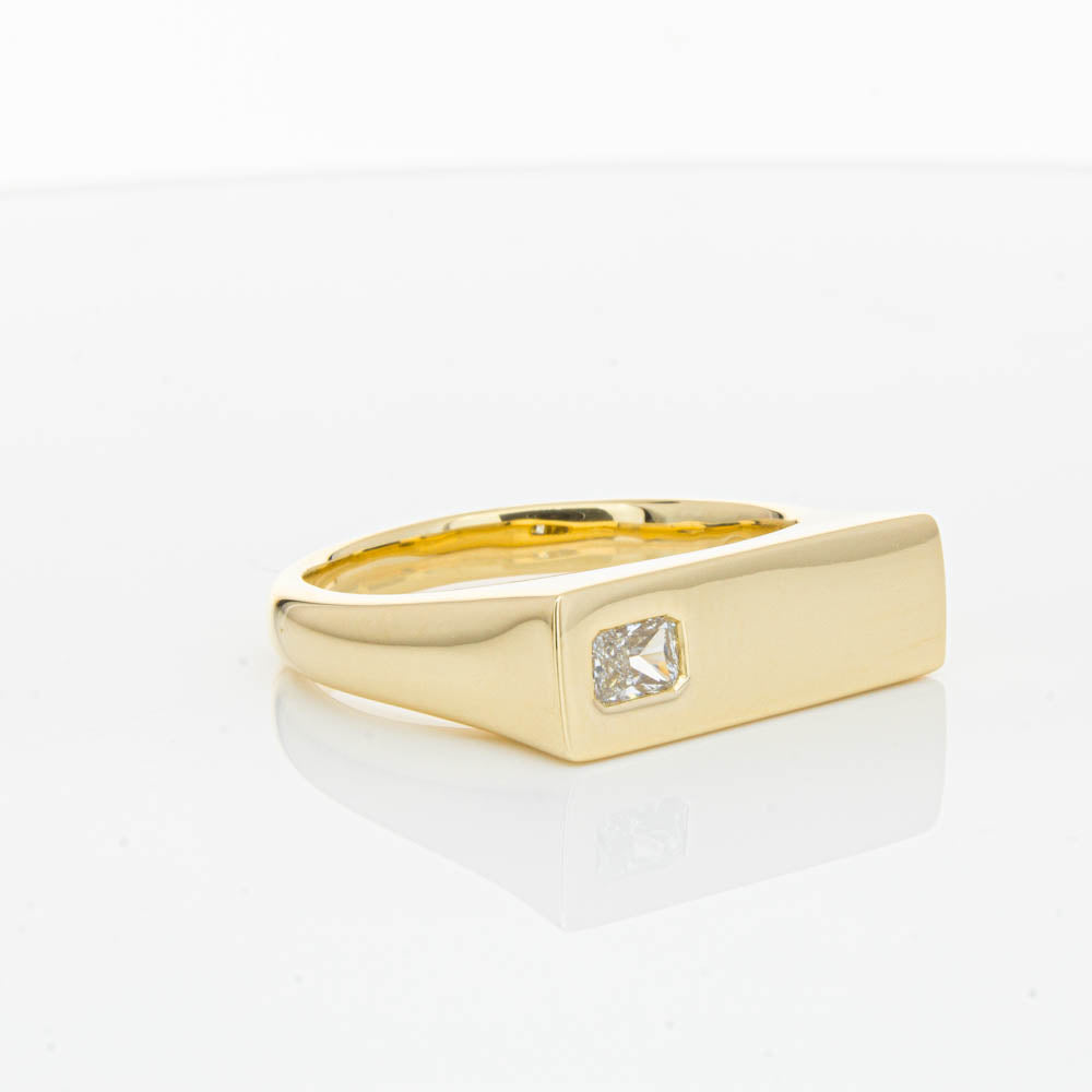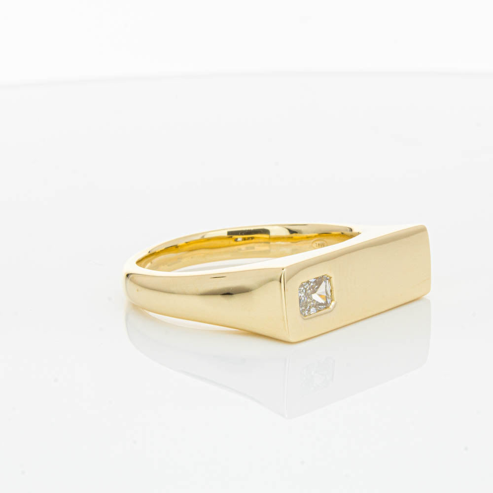 Carefully crafted in 18ct yellow gold from our signature 1899 collection, this classic signet ring features one radiant cut diamond.