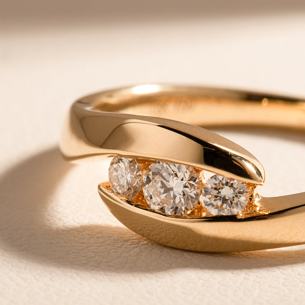 The Solstice ring embodies your love shining through from the dark days of Winter to the heights of Summer. The Solstice Band's sweeping form embraces the Solstice Ring beautifully, making them the perfect match.