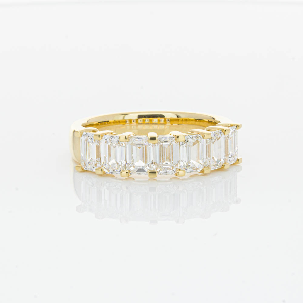 A luxurious display of emerald-cut diamonds punctuates its brilliance set for seamless sparkle giving it a spirit of timeless glamour.