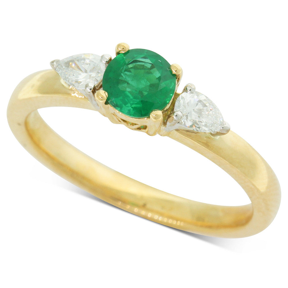 Make it a moment to remember with this elegant emerald ring. Set in 18ct yellow gold, this sparkling ring boasts a vibrant emerald framed by two dazzling pear cut diamonds. She will fall in love.