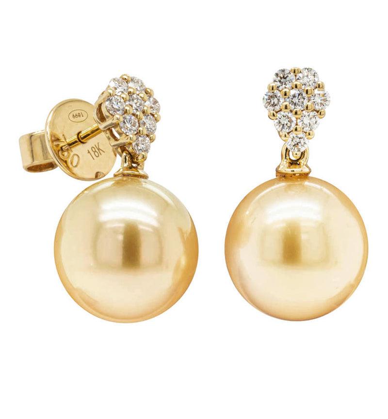 18ct Yellow Gold Golden Pearl & Diamond Earrings