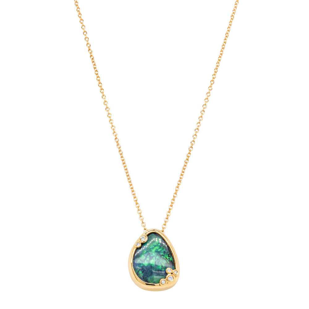 Add a touch of colour to your everyday with this dreamy opal & diamond pendant! Carefully crafted to perfection from divine 18ct yellow gold, this precious pendant boasts a beautiful opal with hues of green and blue from Australia.