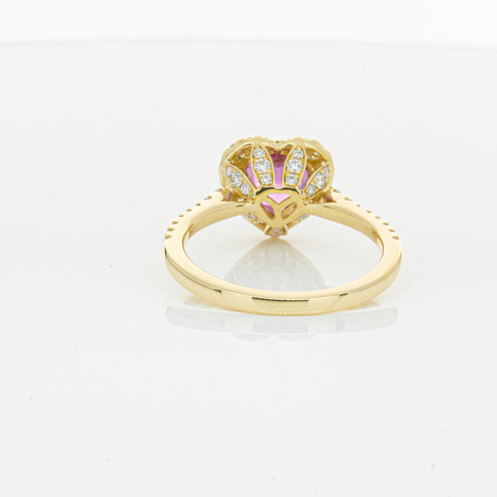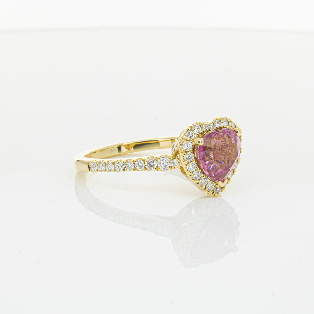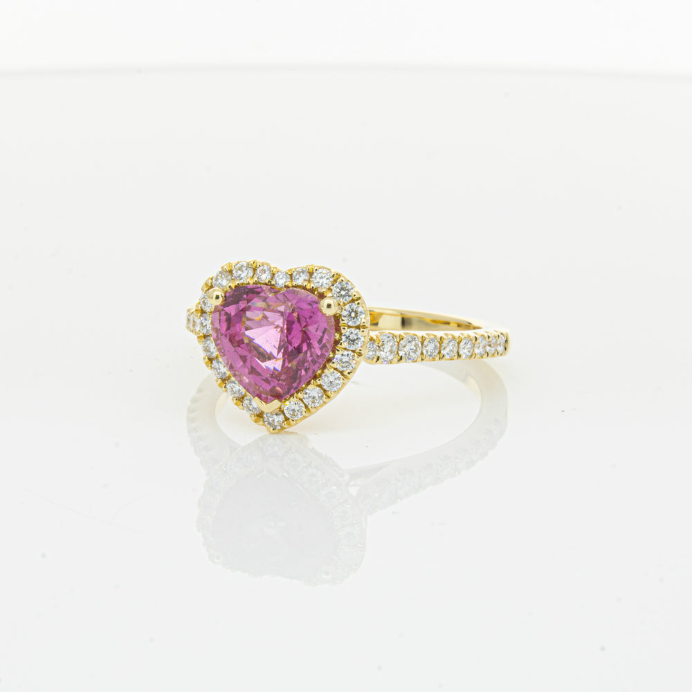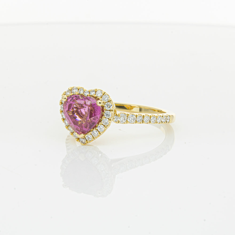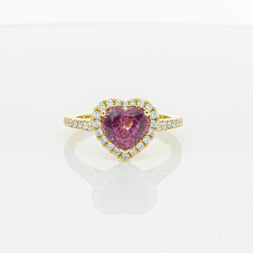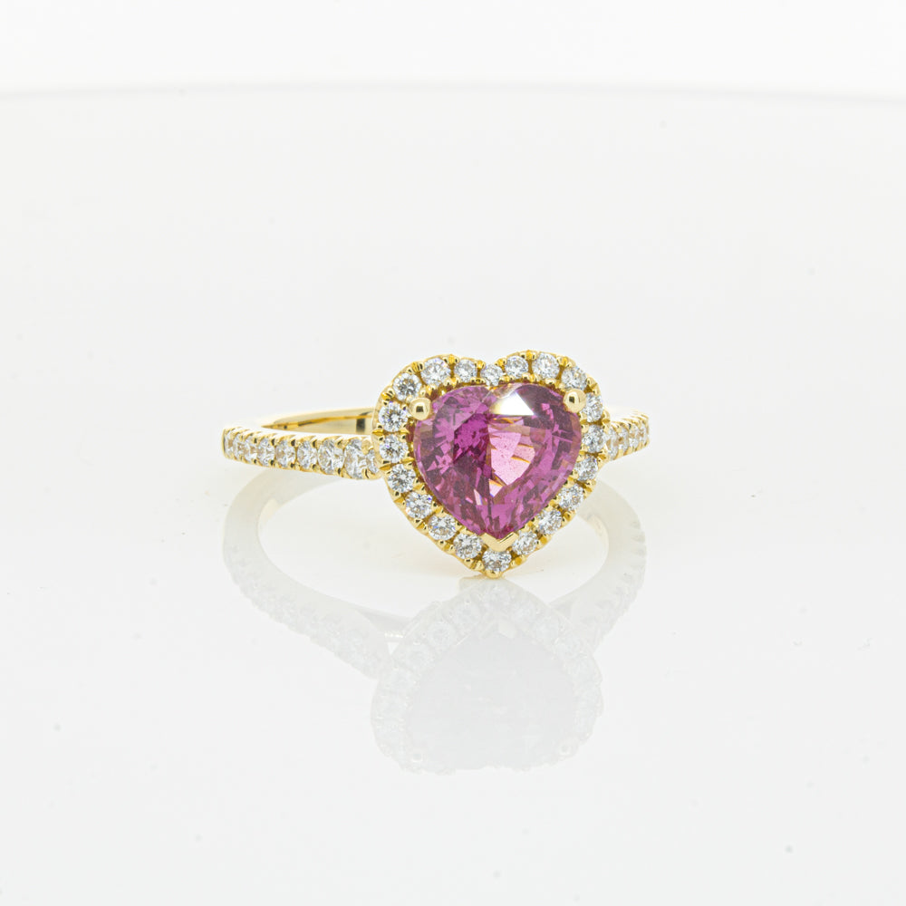 Lively in colour, this heart shaped pink sapphire combines with round brilliant cut diamonds for exceptional sparkle. Make a luminous statement in this gorgeous Sierra ring from our signature 1899 collection.