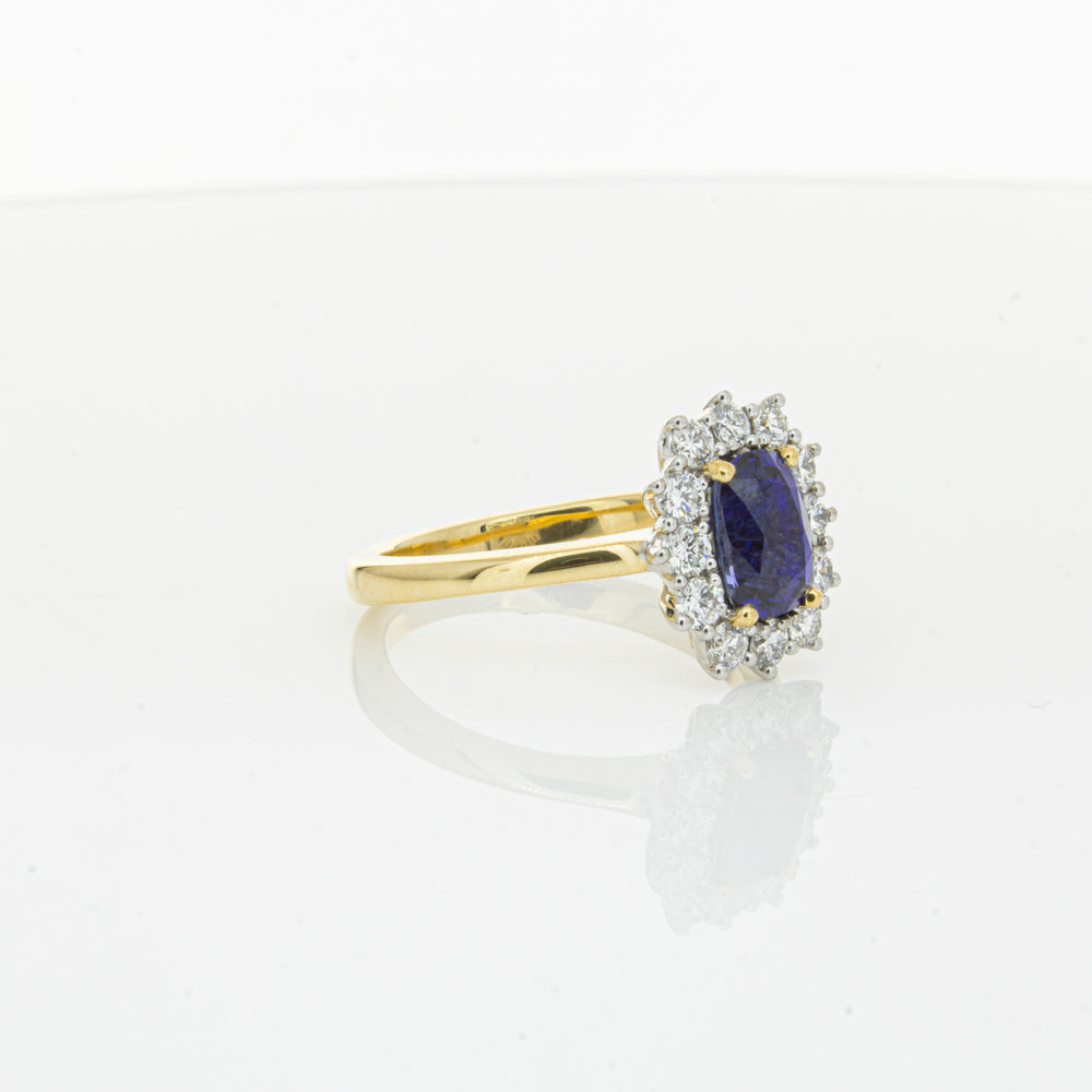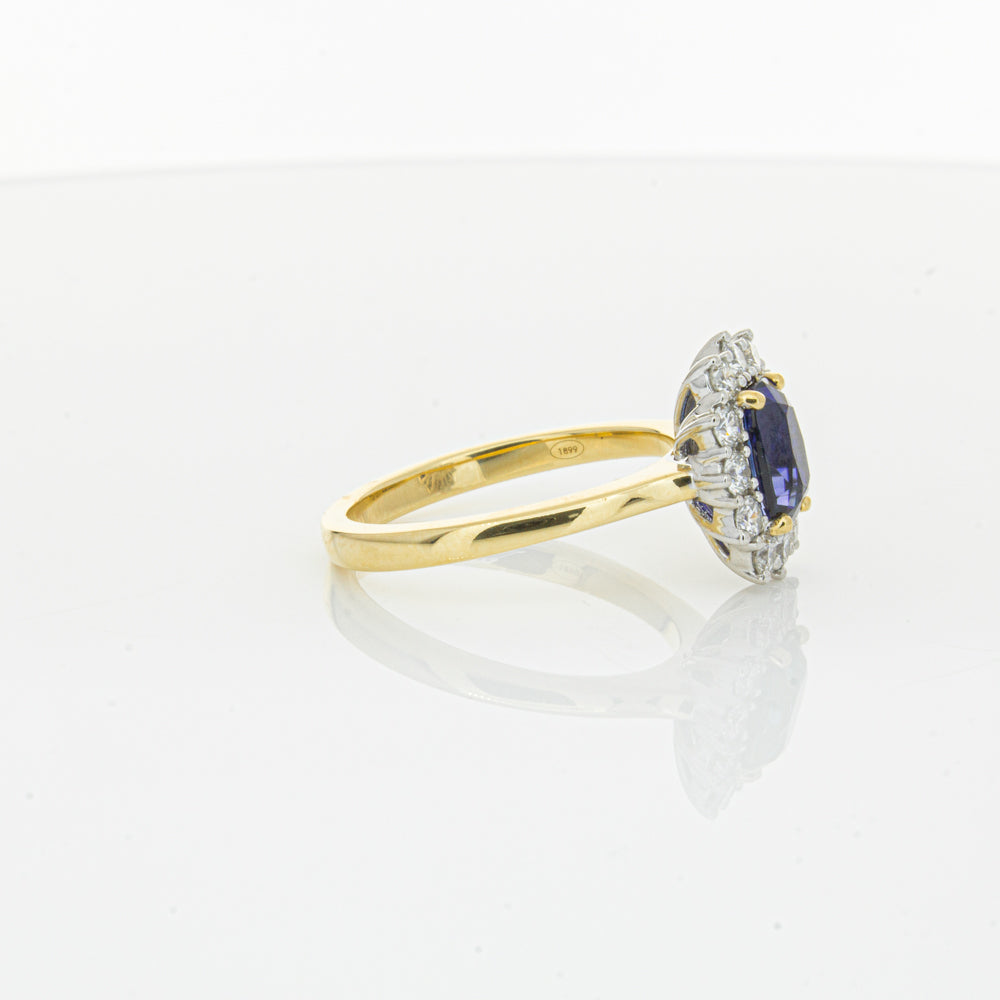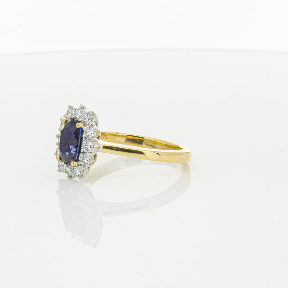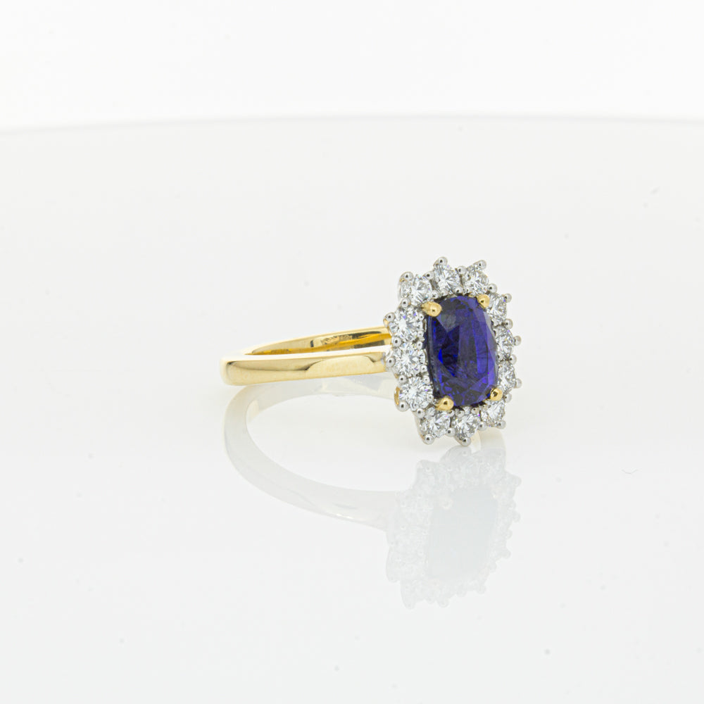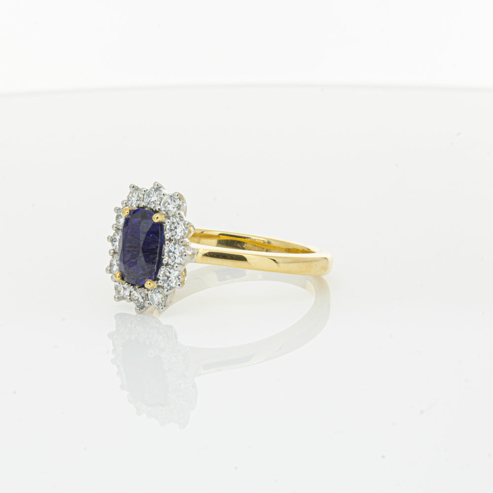 An update to a classic, this stunning cushion faceted halo sapphire Belle ring from our signature 1899 collection features a demurely tapered shank and diamond detailing on the halo. The beauty is in the details - this ring sparkles from every angle.