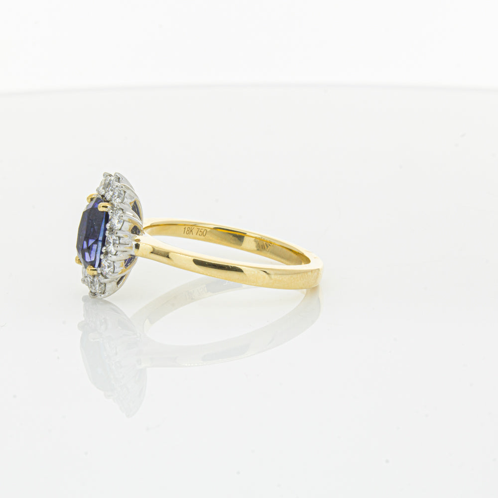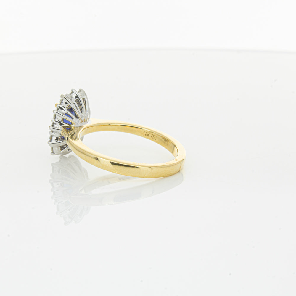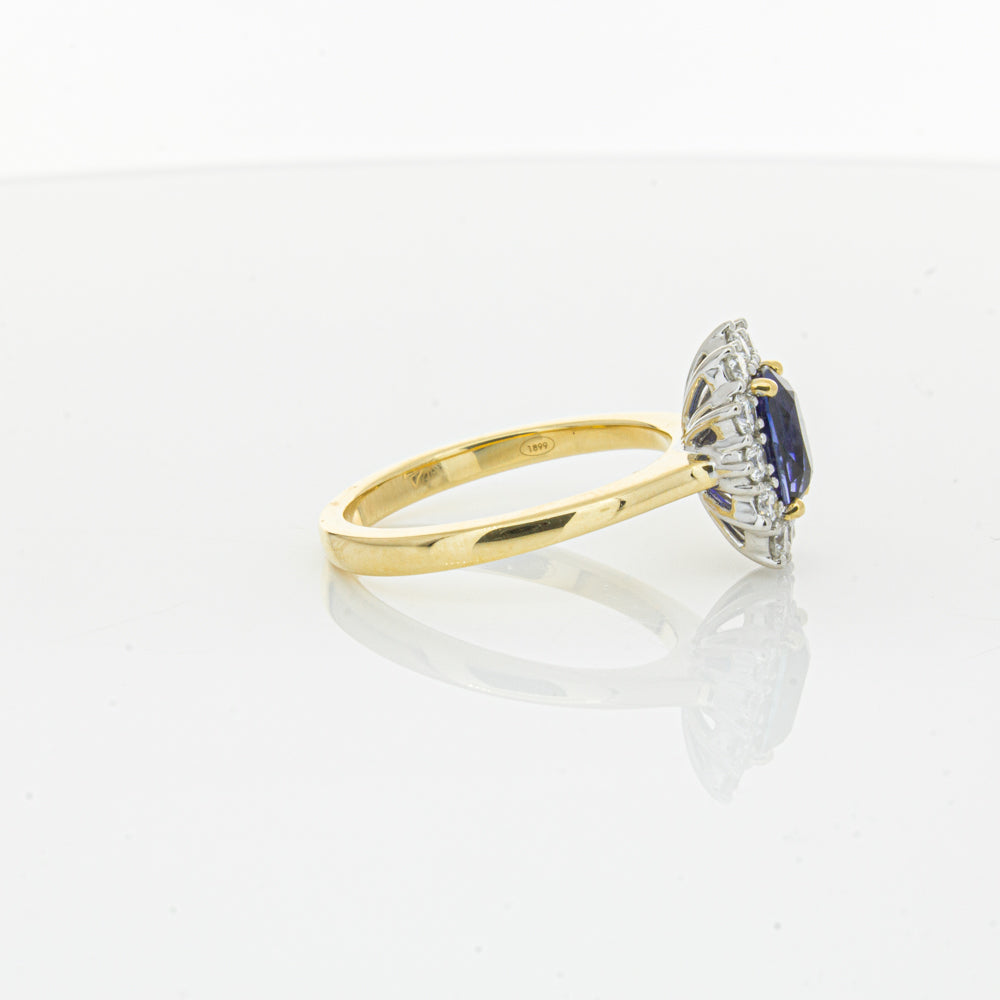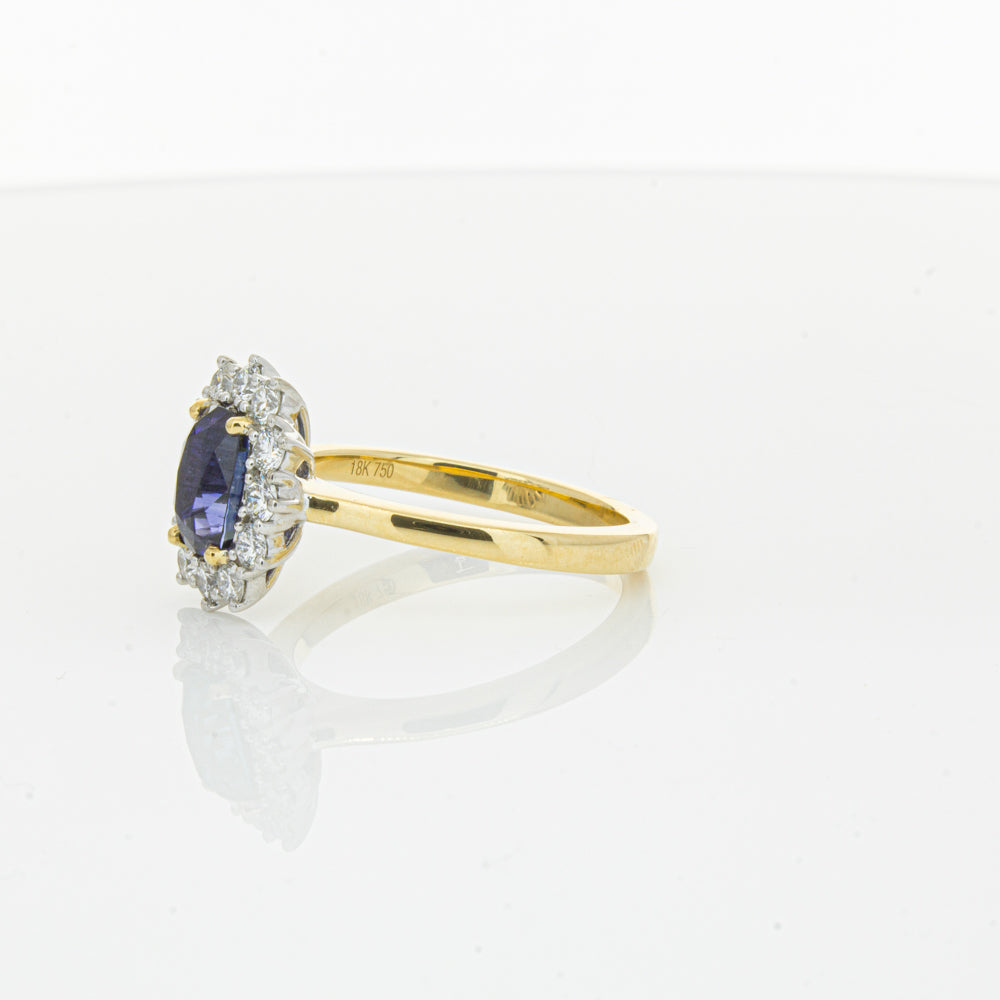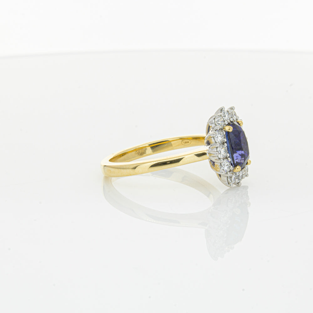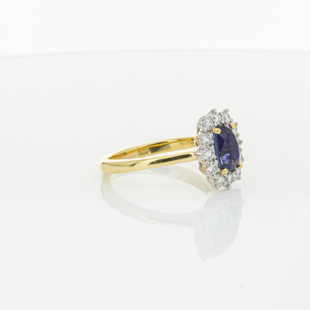 An update to a classic, this stunning cushion faceted halo sapphire Belle ring from our signature 1899 collection features a demurely tapered shank and diamond detailing on the halo. The beauty is in the details - this ring sparkles from every angle.