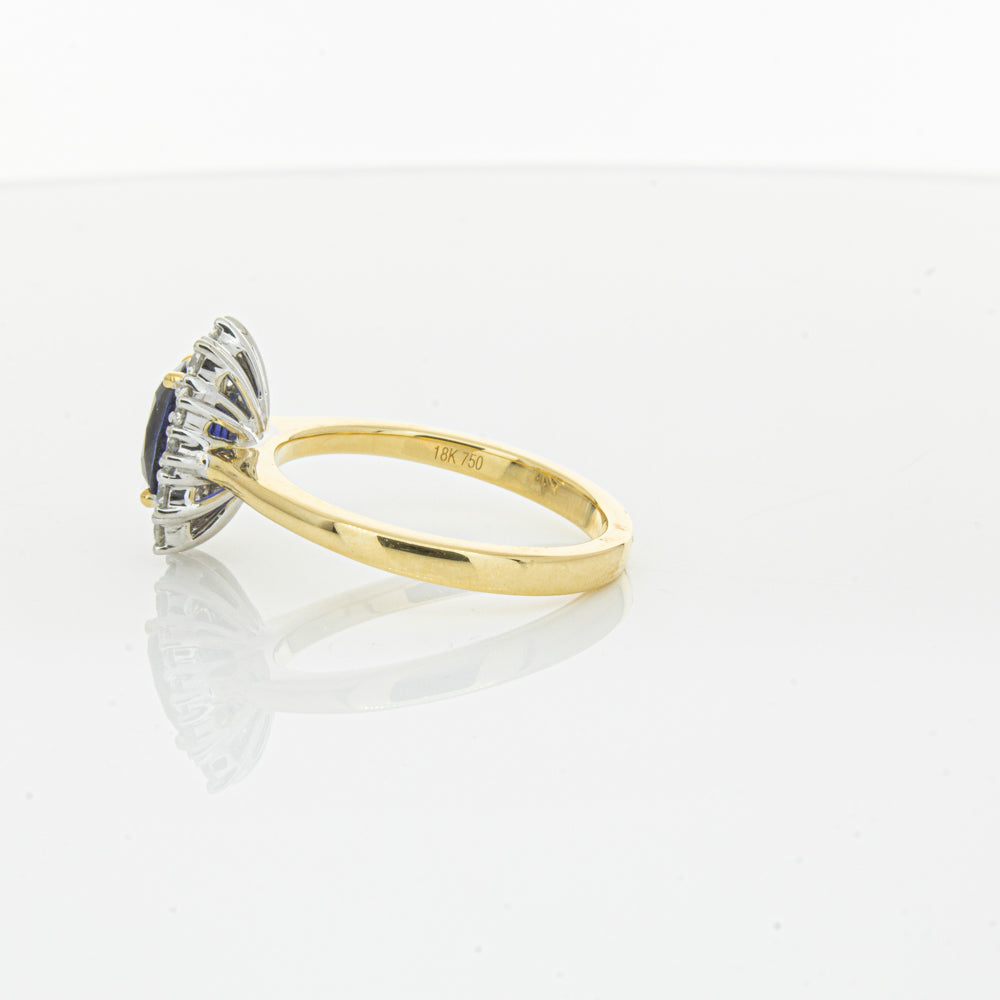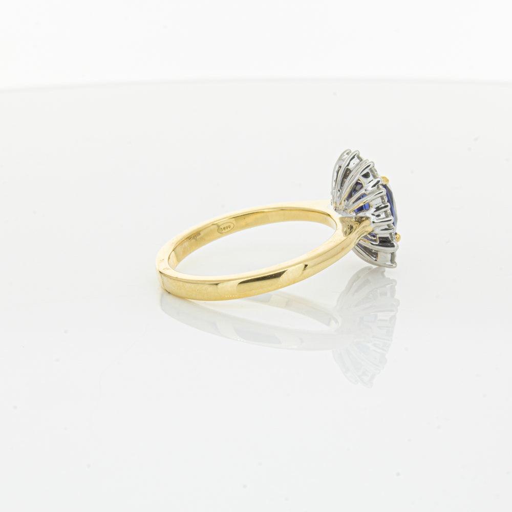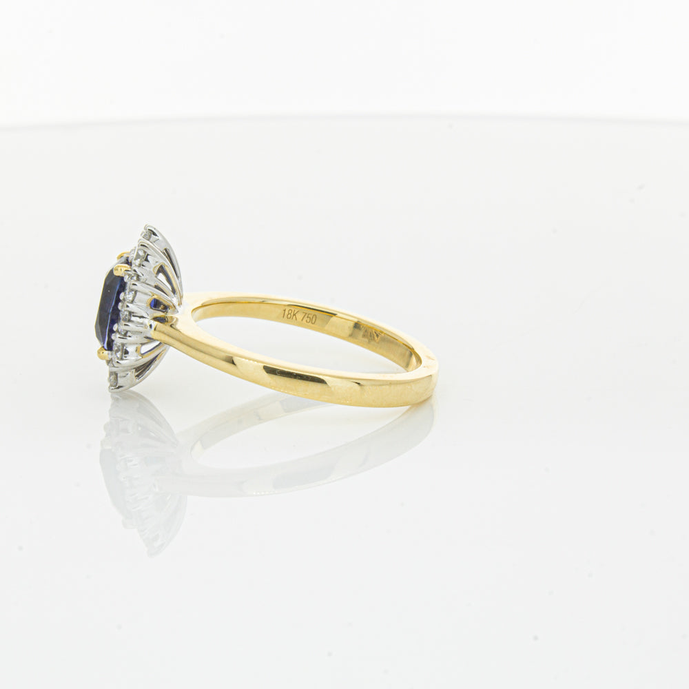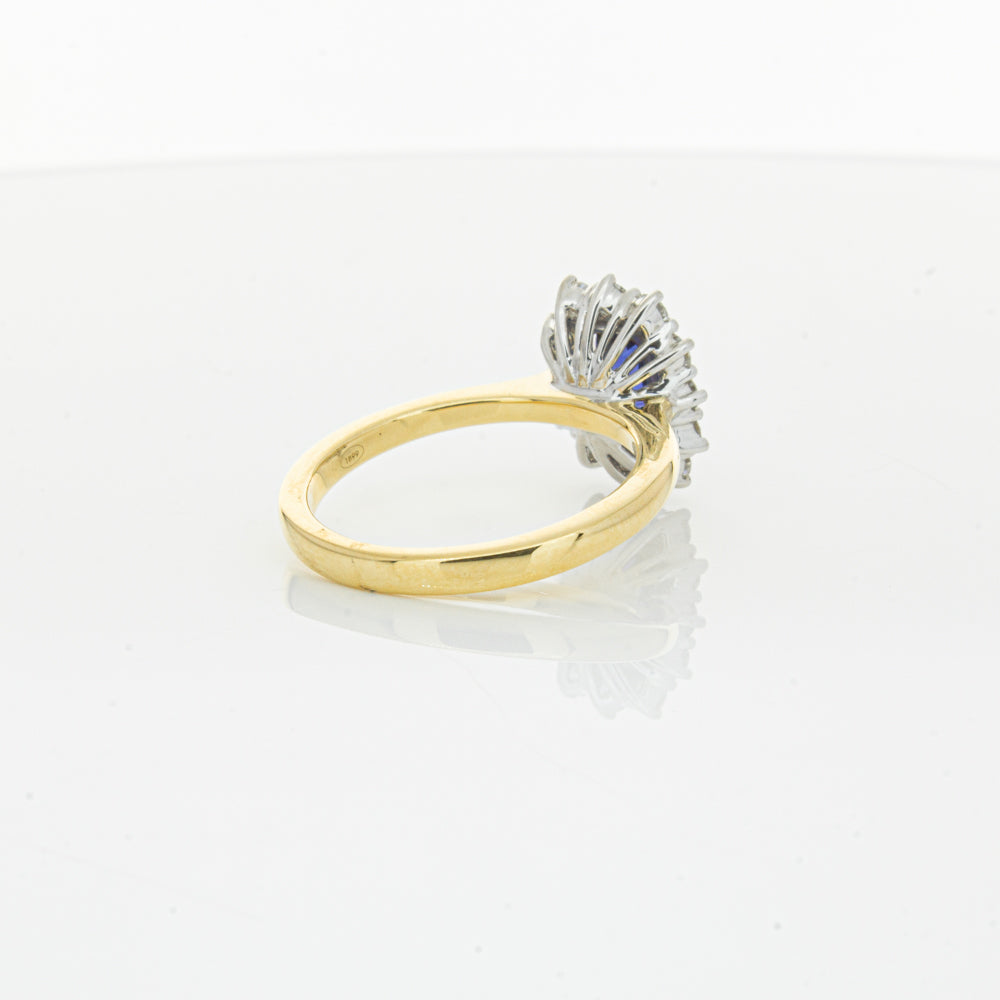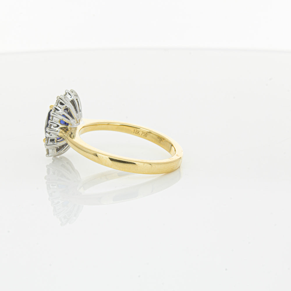 An update to a classic, this stunning cushion faceted halo sapphire Belle ring from our signature 1899 collection features a demurely tapered shank and diamond detailing on the halo. The beauty is in the details - this ring sparkles from every angle.