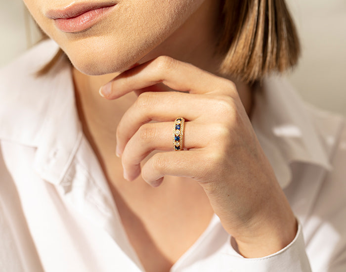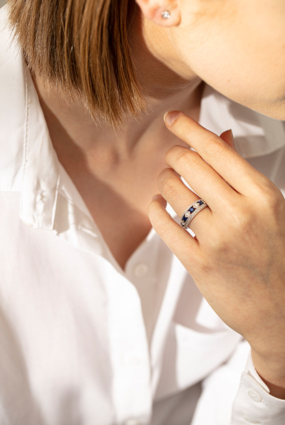 Model wearing natural diamond and gemstone jewellery from the 1899 Collection