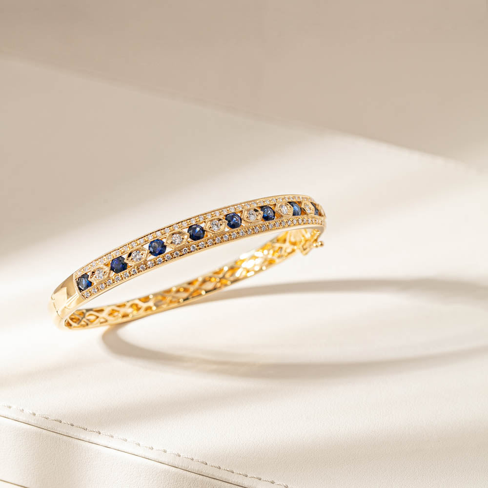 18ct Yellow Gold Sapphire & Diamond Cecelia Bangle
