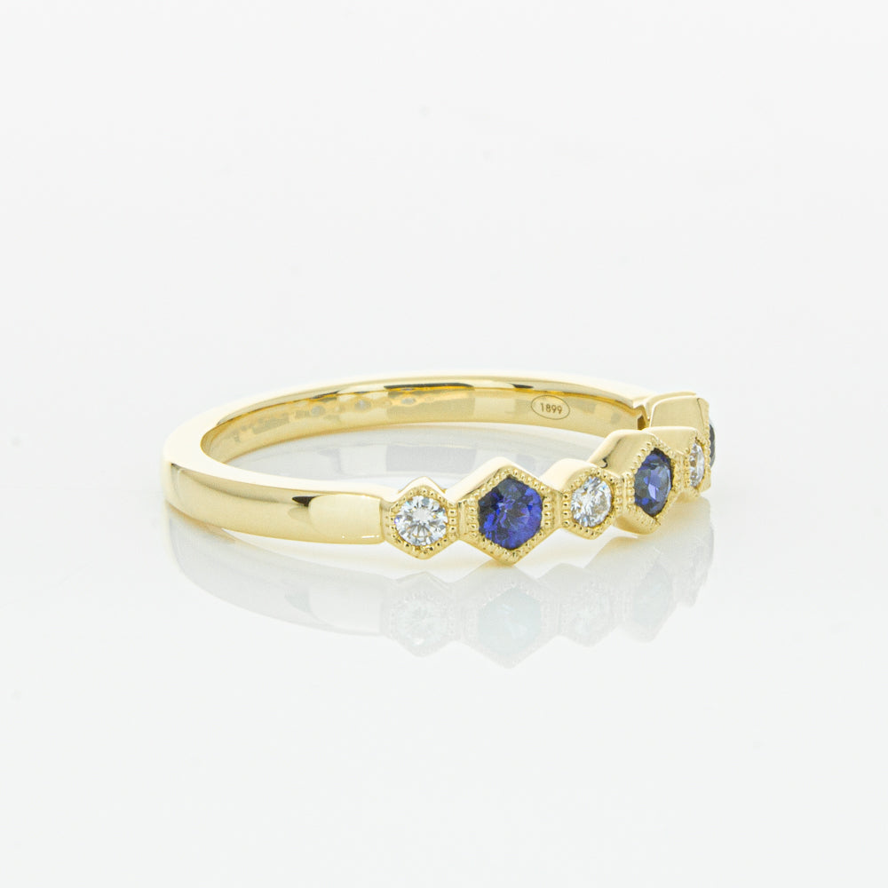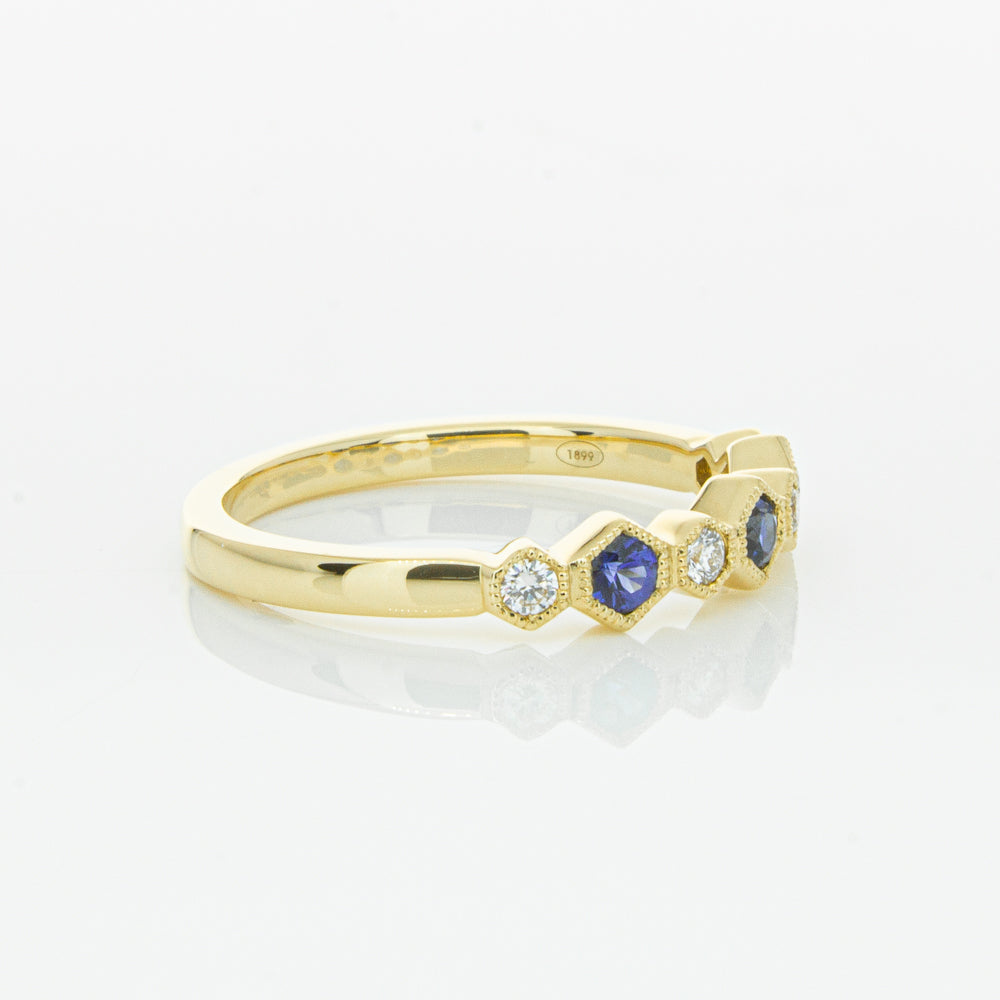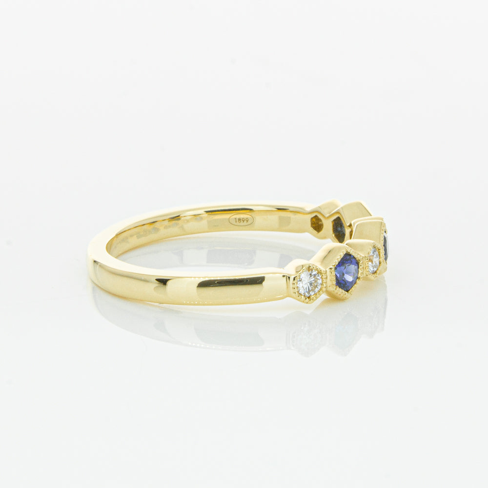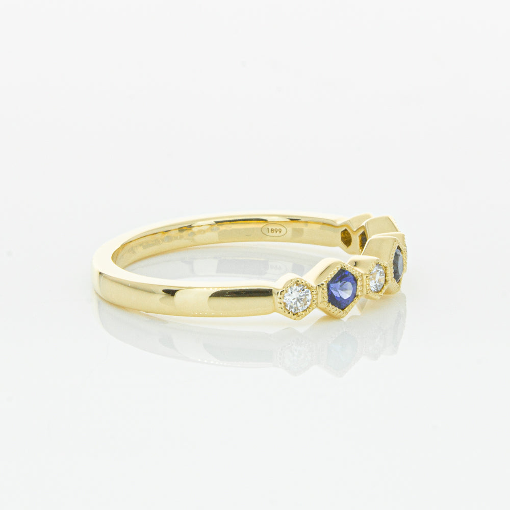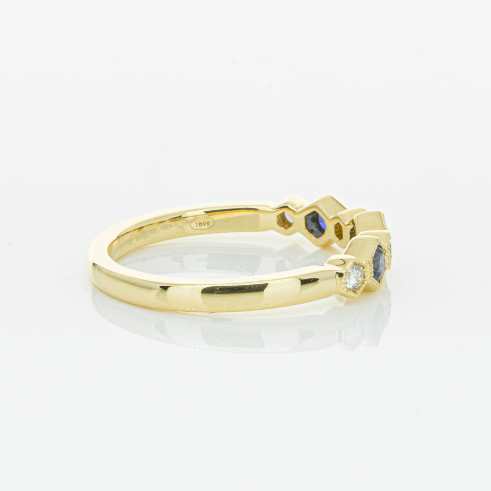 18ct Yellow Gold Sapphire & Diamond Deco Band