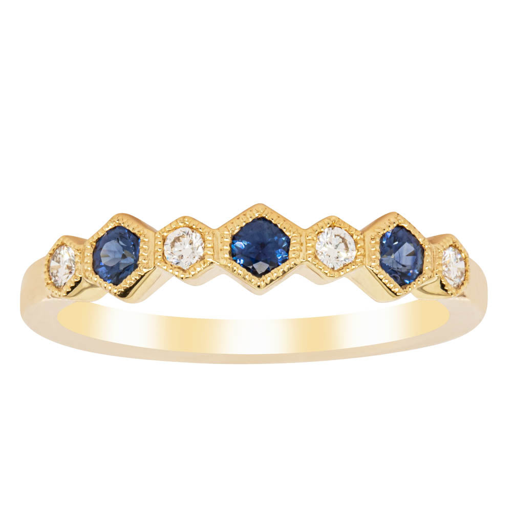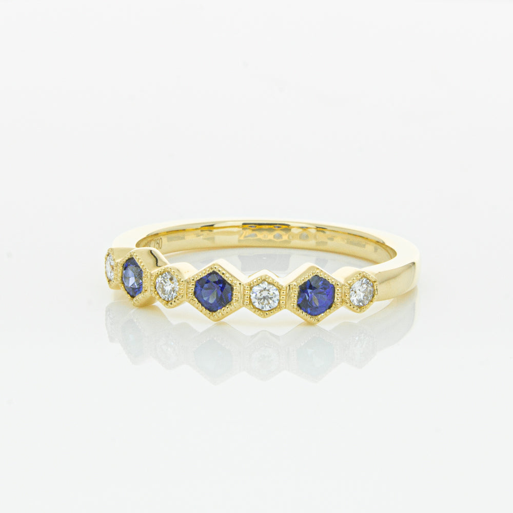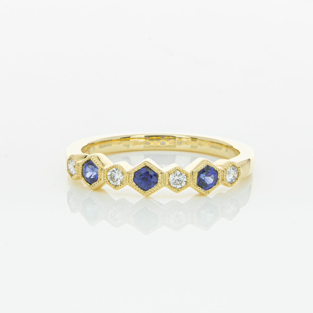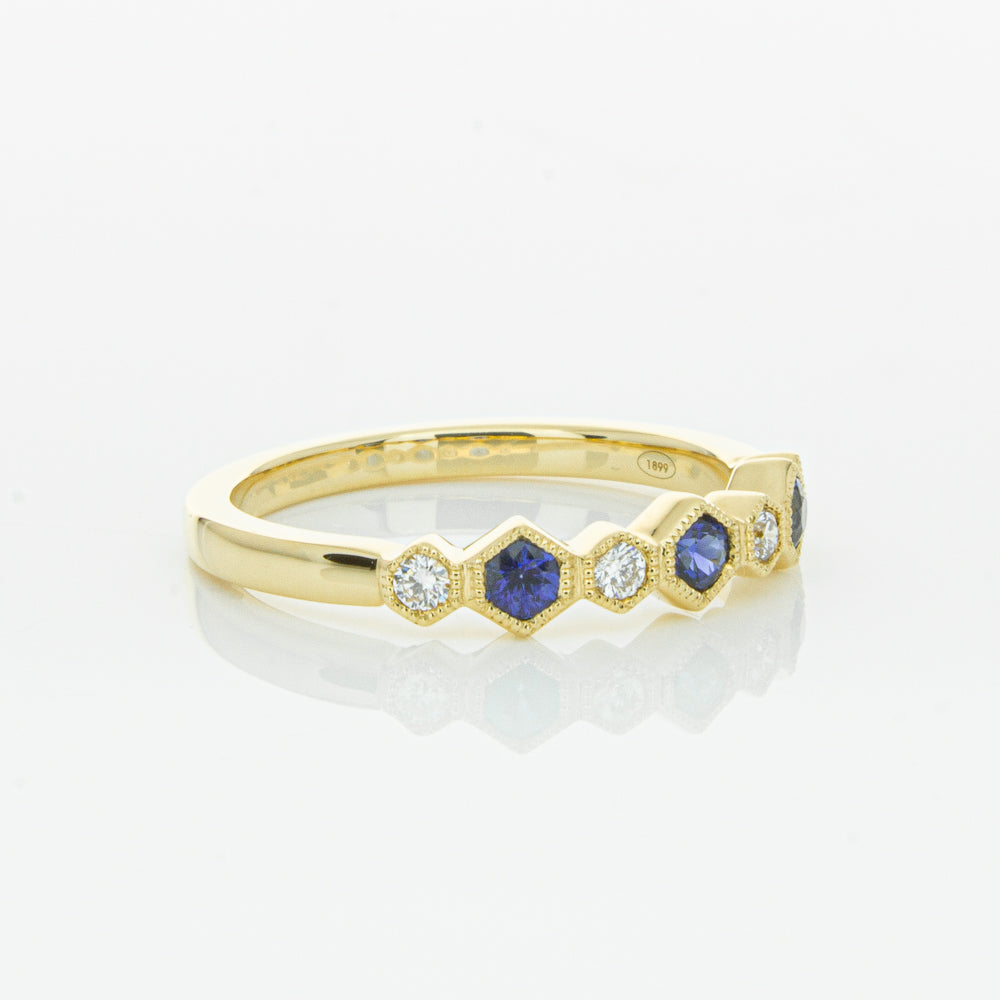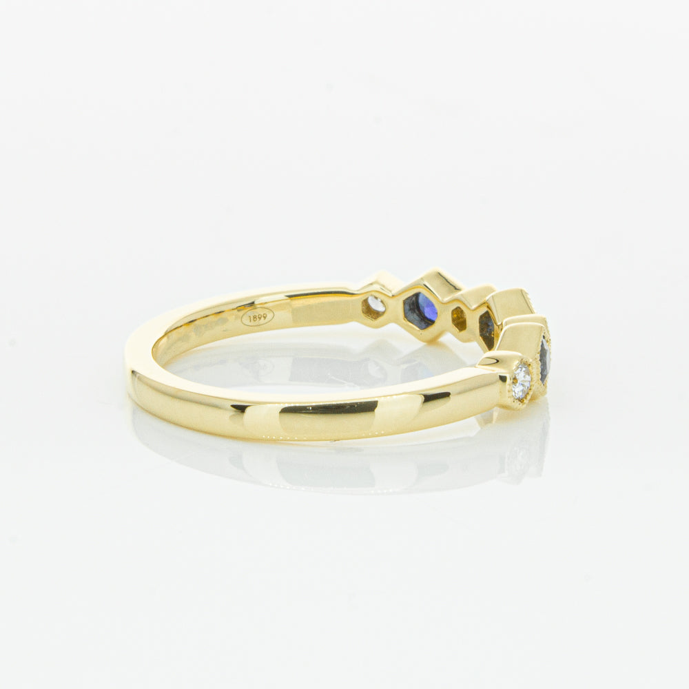 18ct Yellow Gold Sapphire & Diamond Deco Band