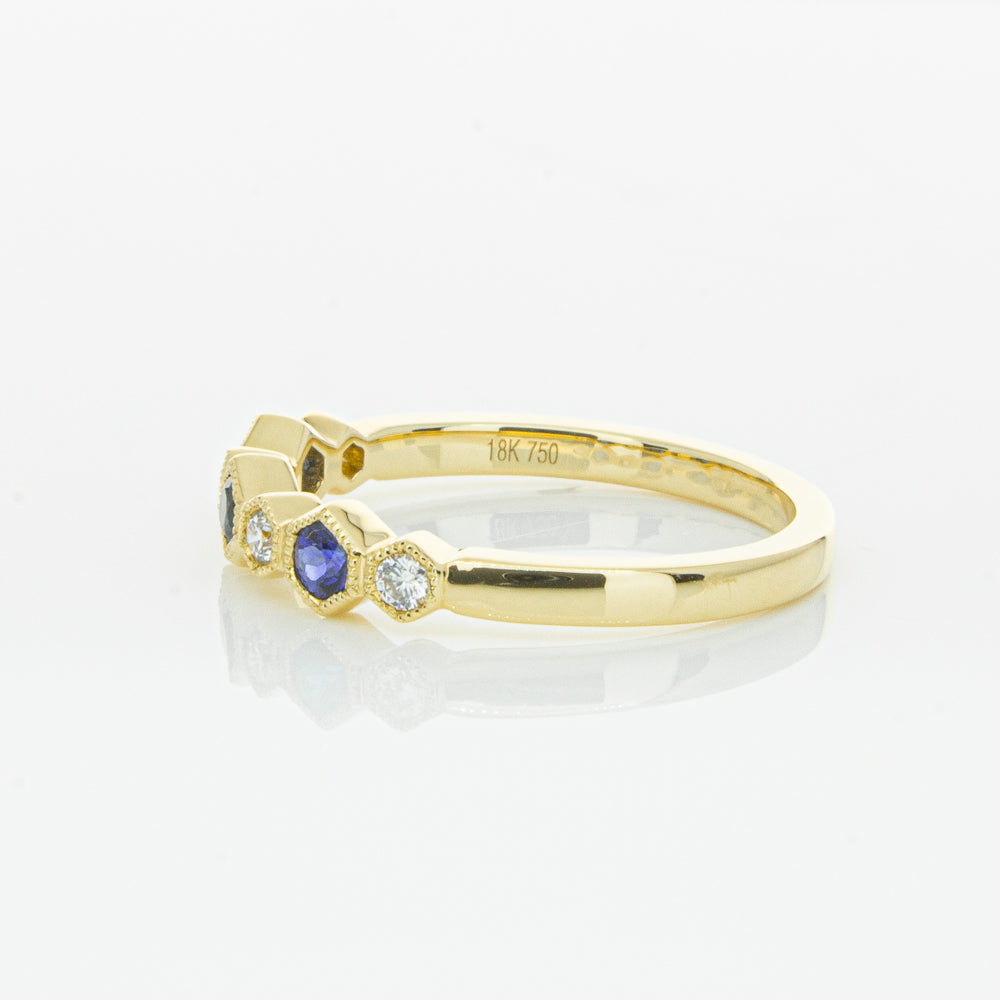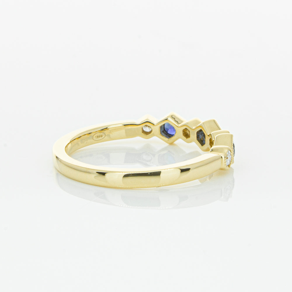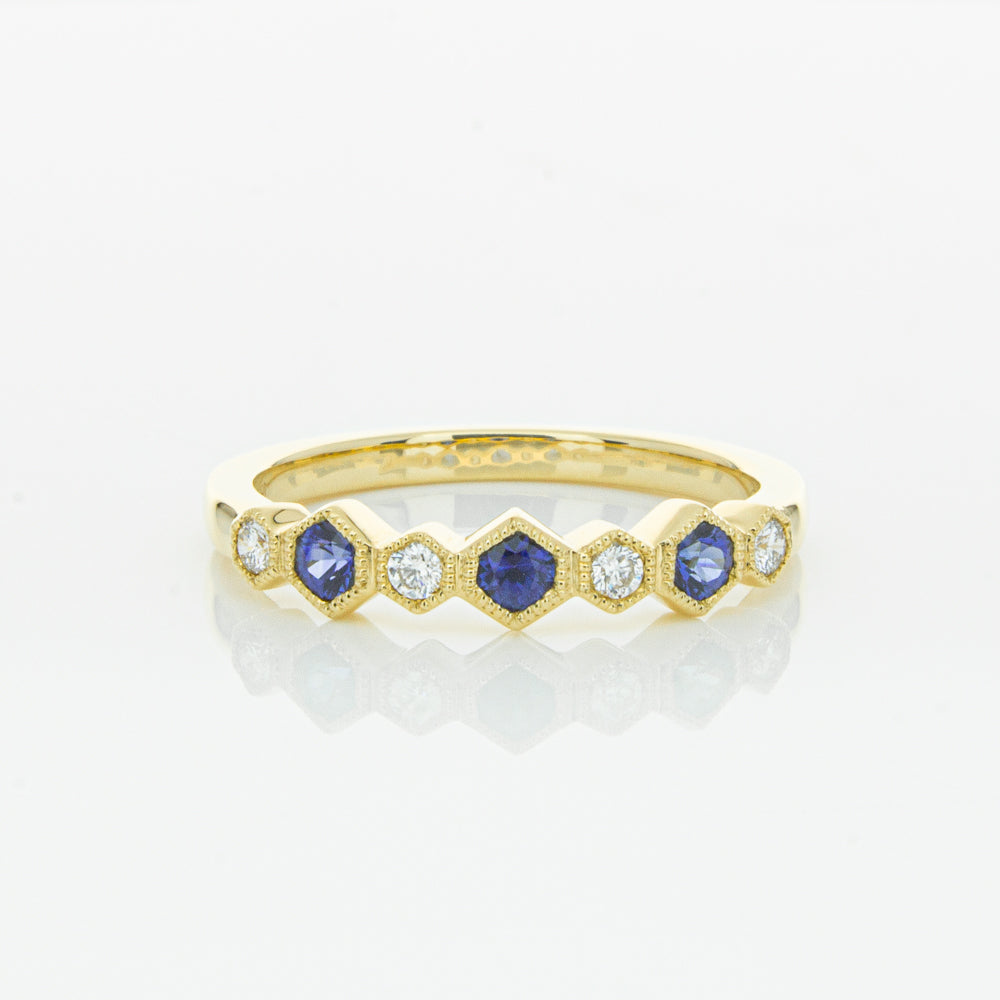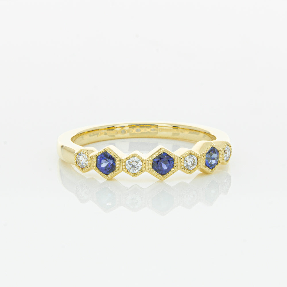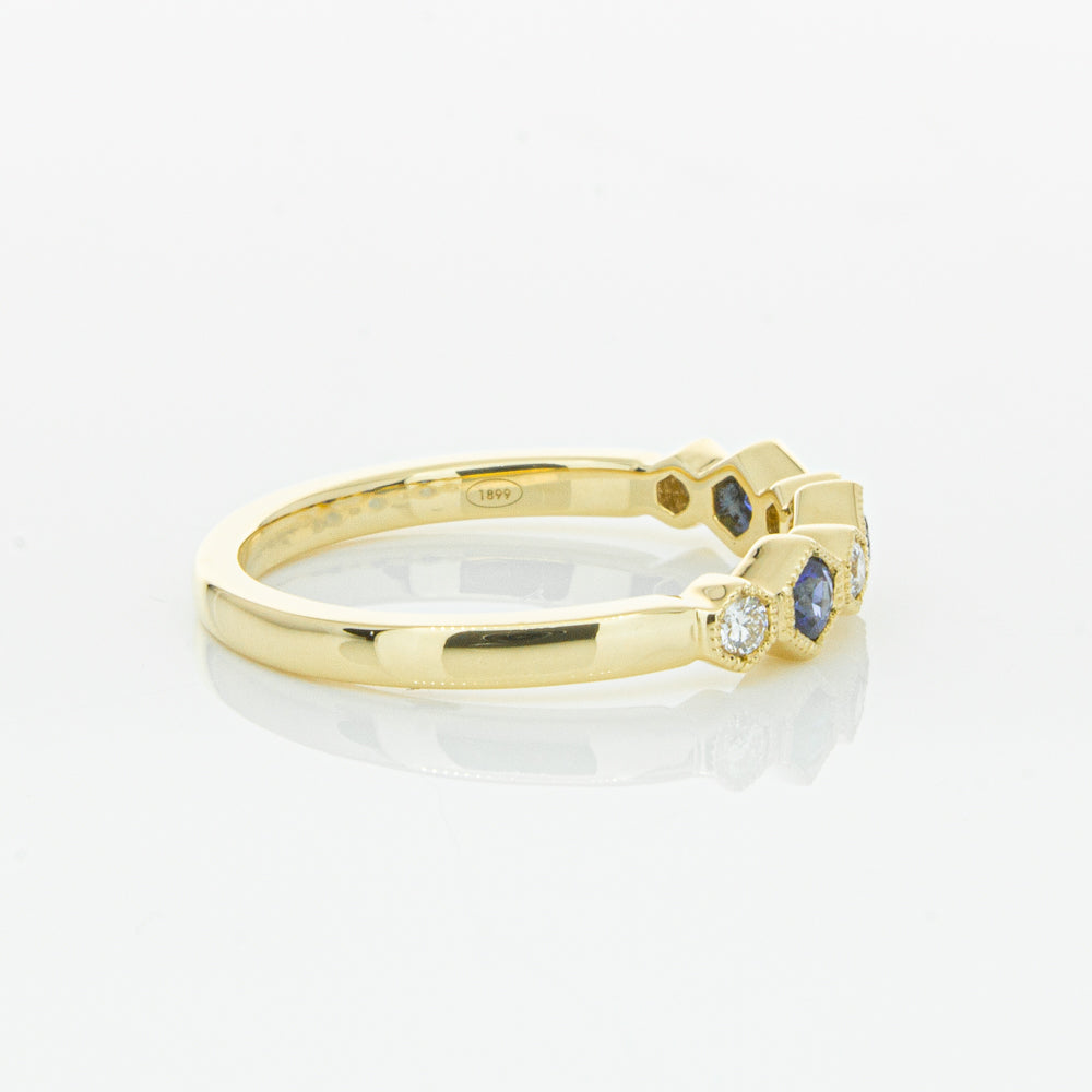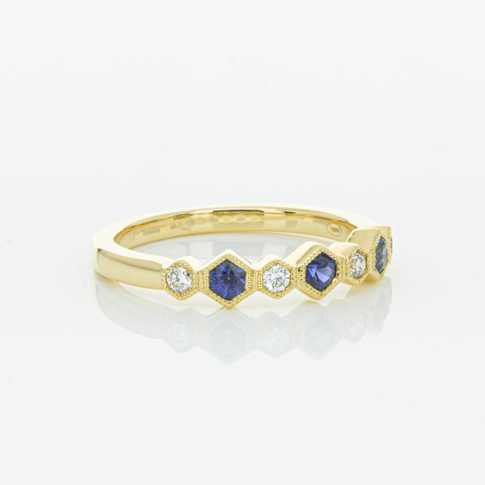 18ct Yellow Gold Sapphire & Diamond Deco Band