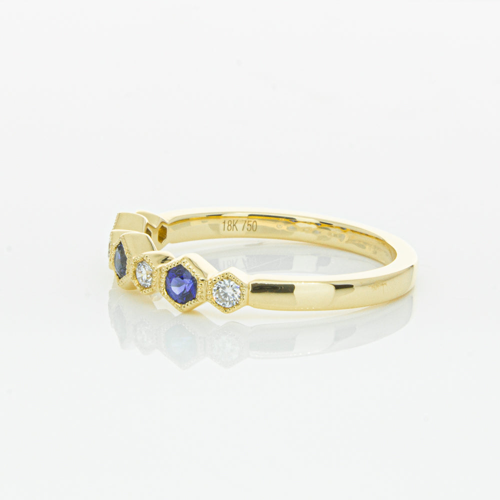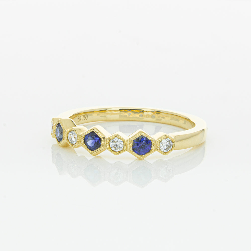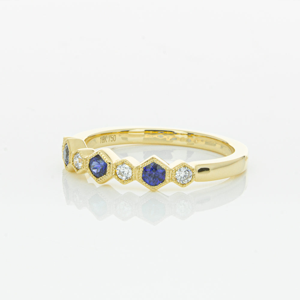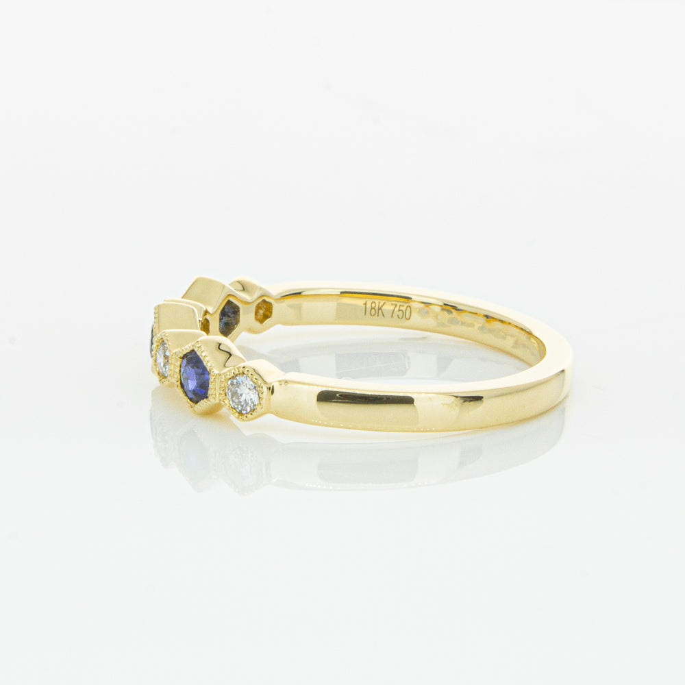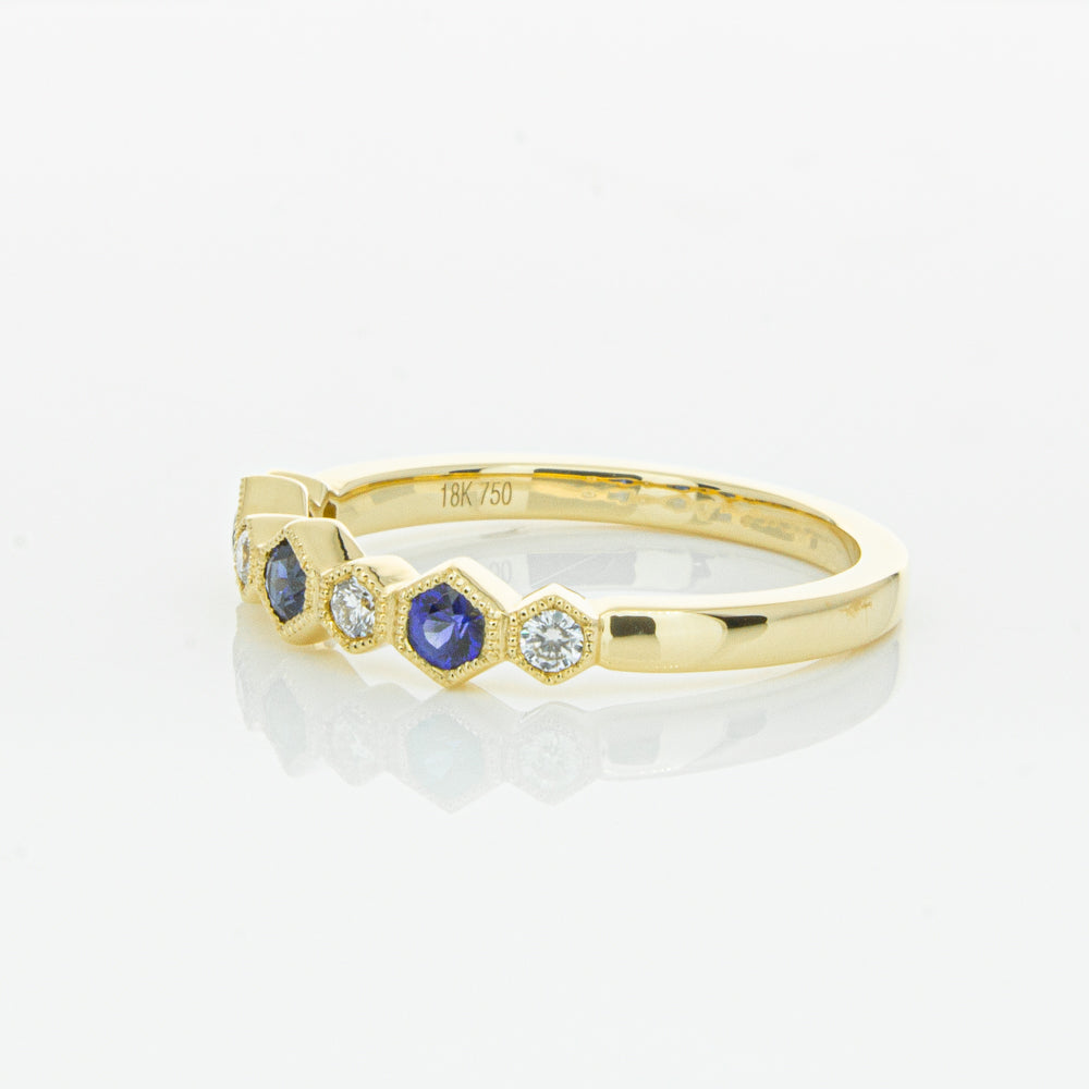 18ct Yellow Gold Sapphire & Diamond Deco Band