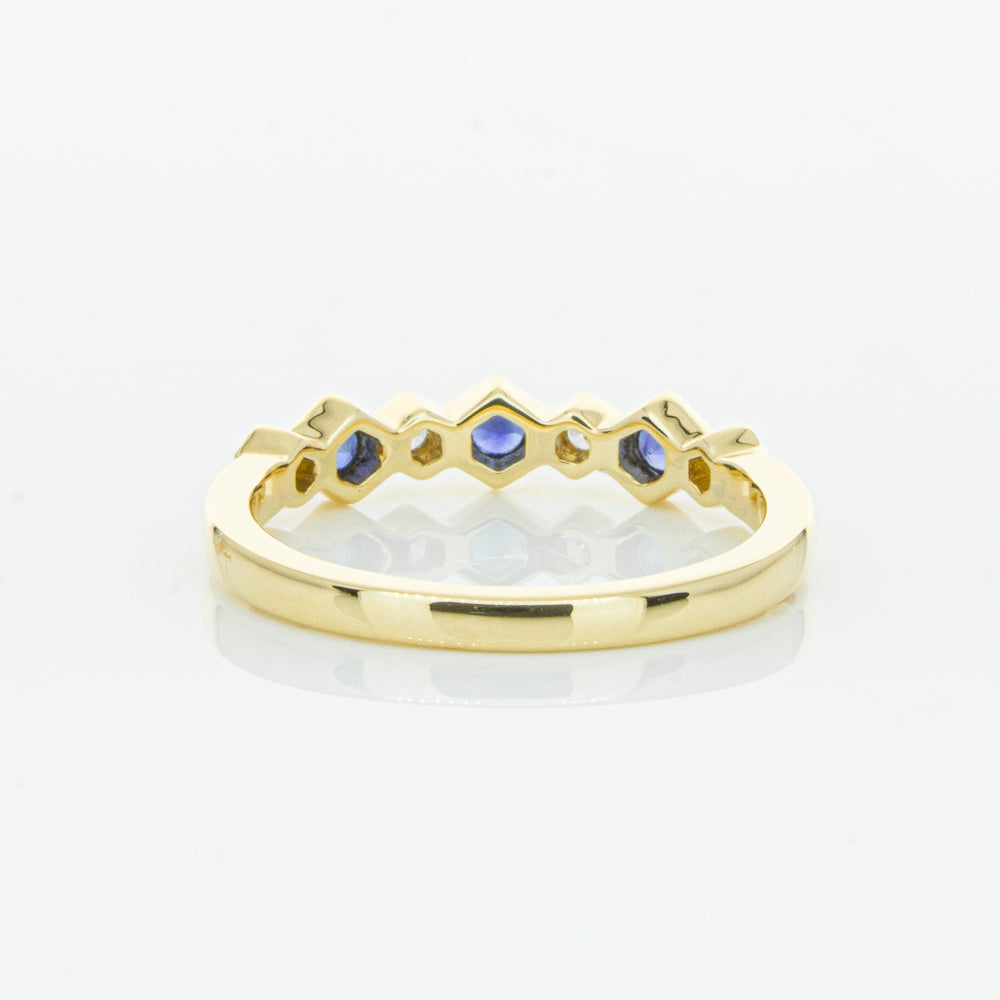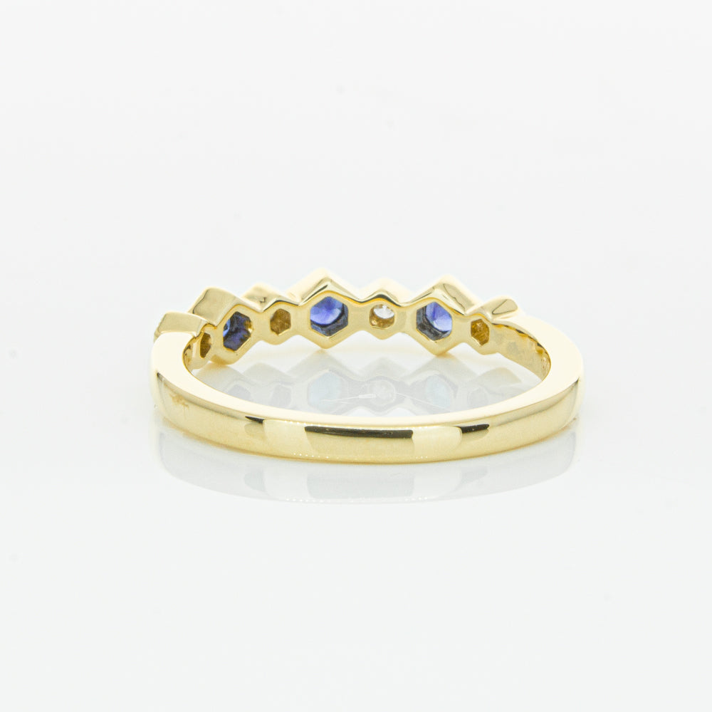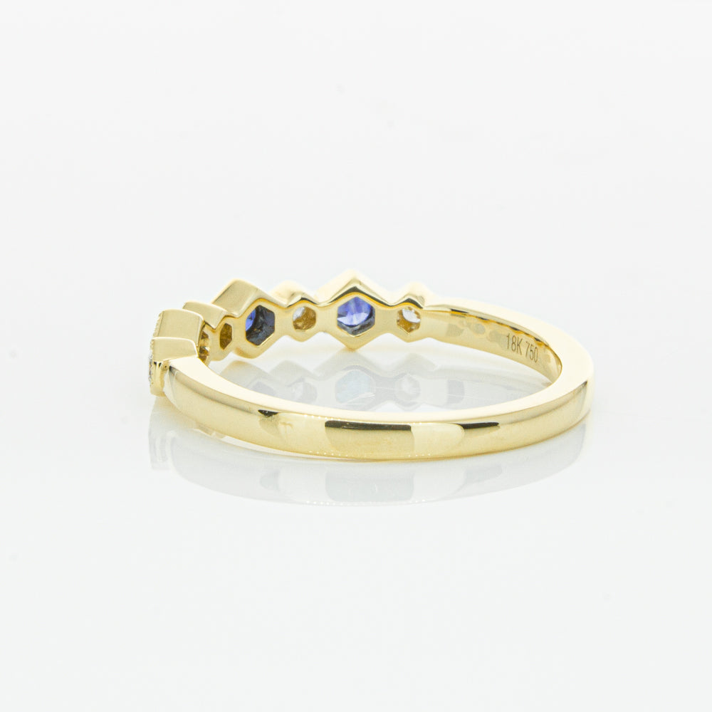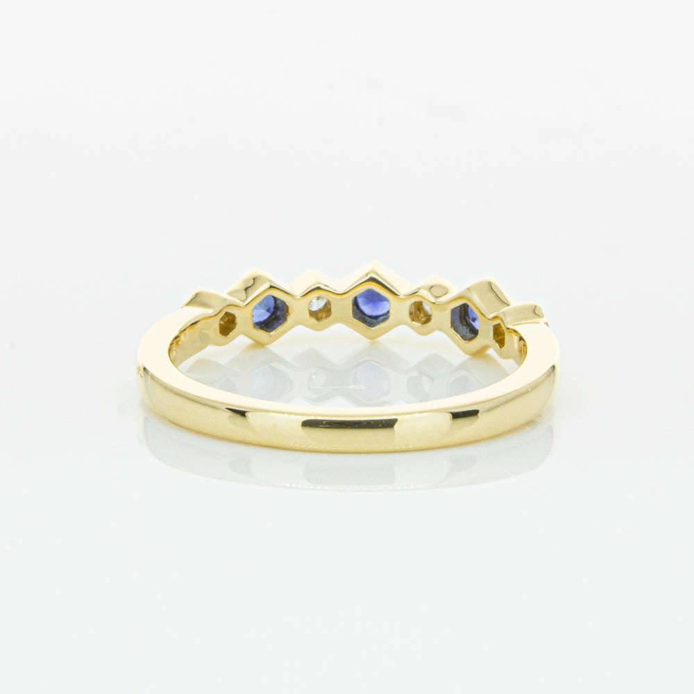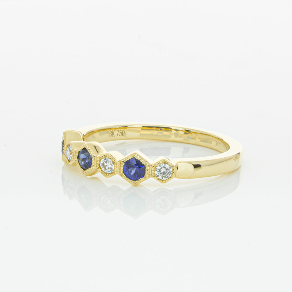 18ct Yellow Gold Sapphire & Diamond Deco Band