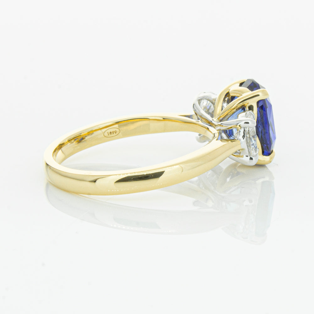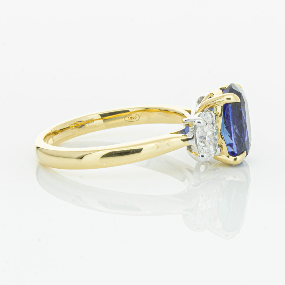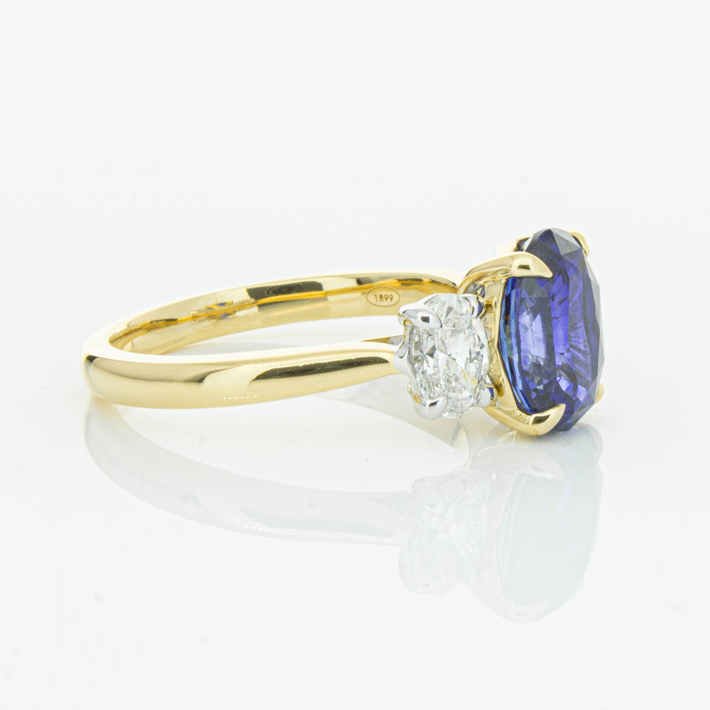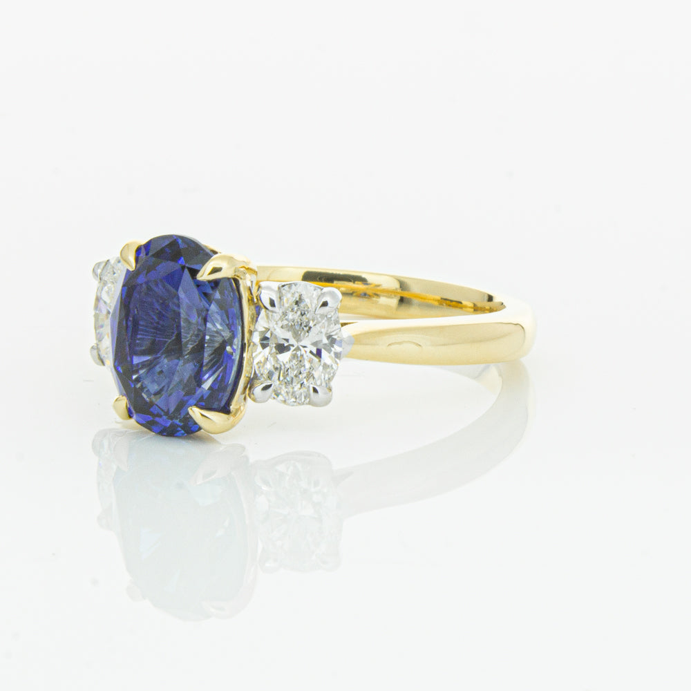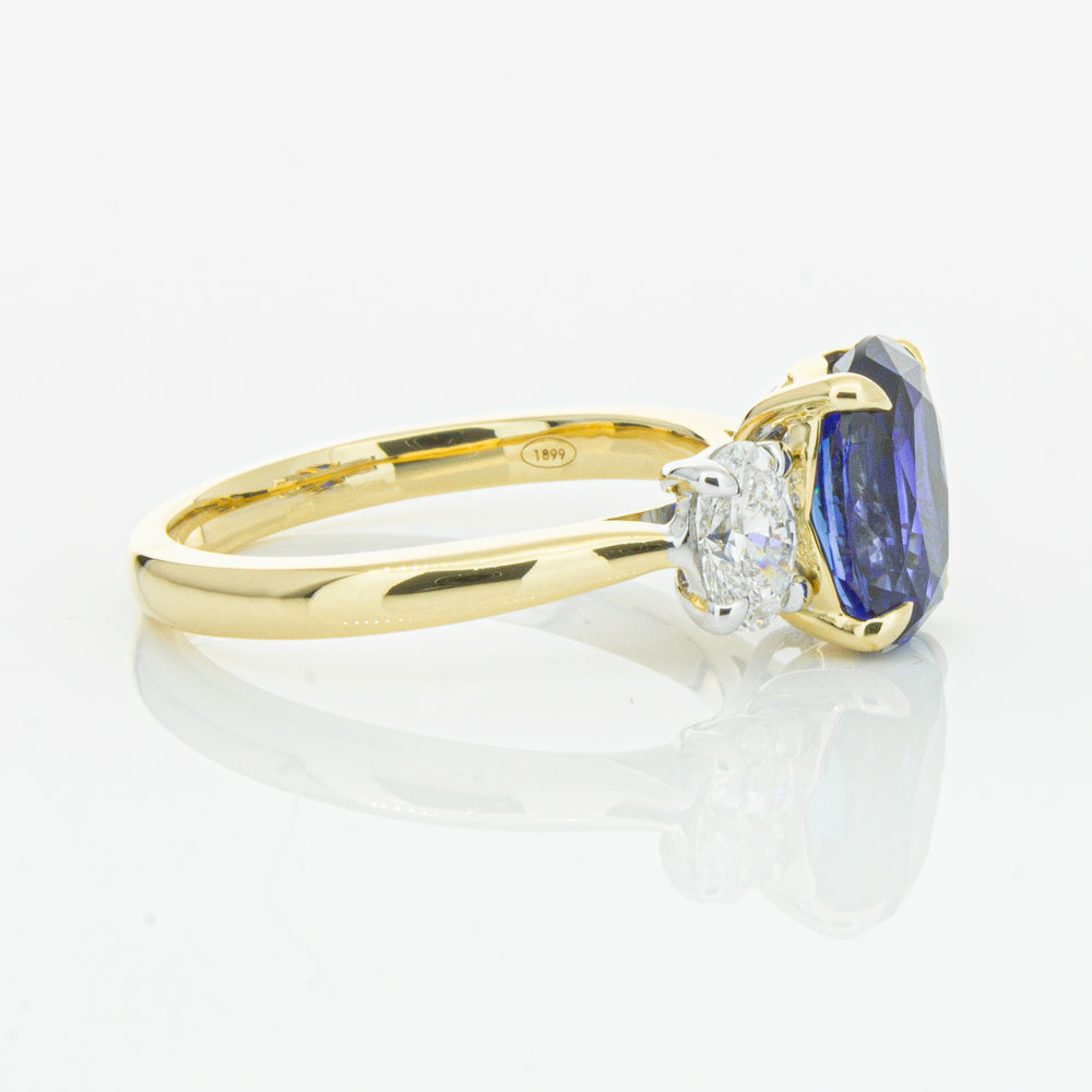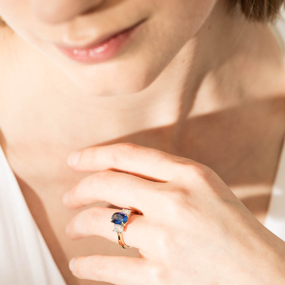 Representing your past, present and future together, this dazzling sapphire and diamond ring is sure to impress. Set in 18ct yellow gold from our signature 1899 collection, this glittering ring features an oval faceted vivid blue sapphire and two sparkling oval brilliant cut diamonds.