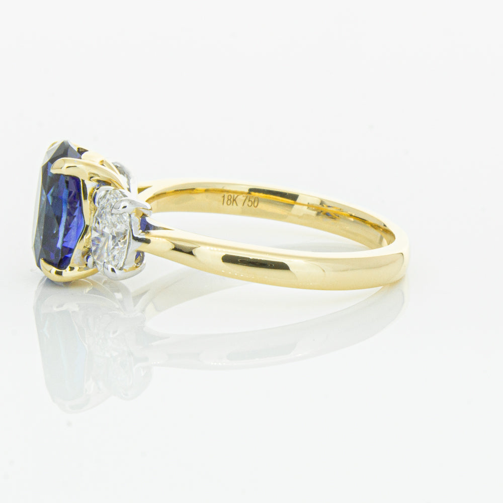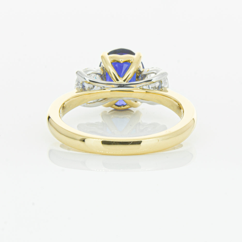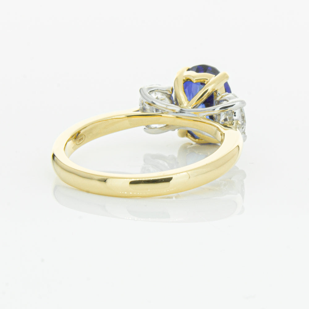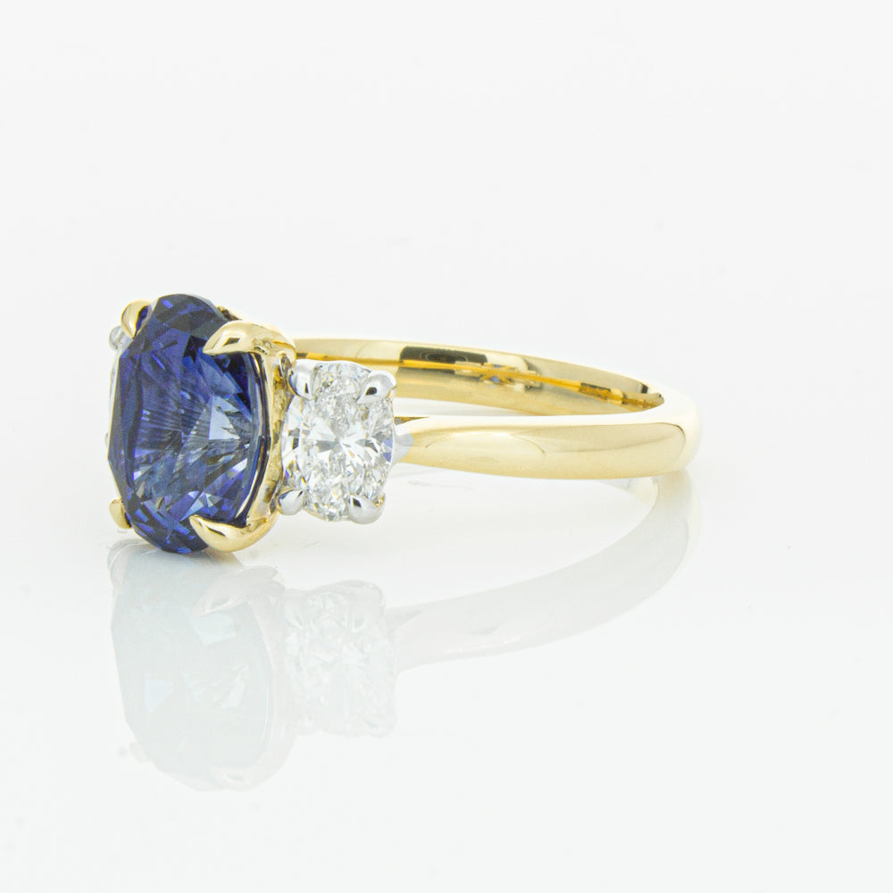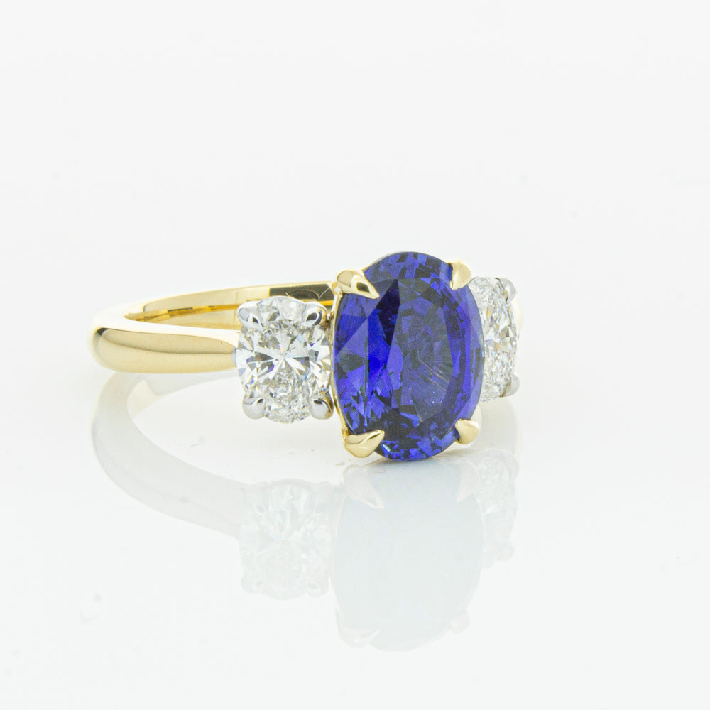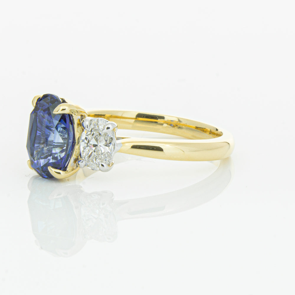 18ct Yellow Gold Oval Sapphire & Diamond Three Stone Ring