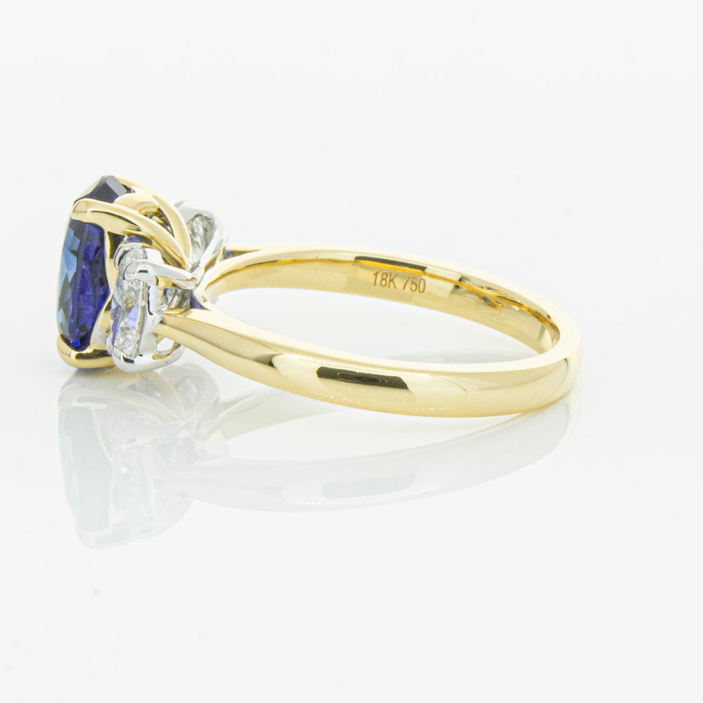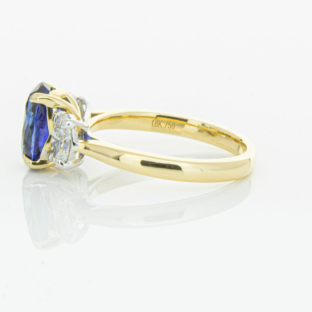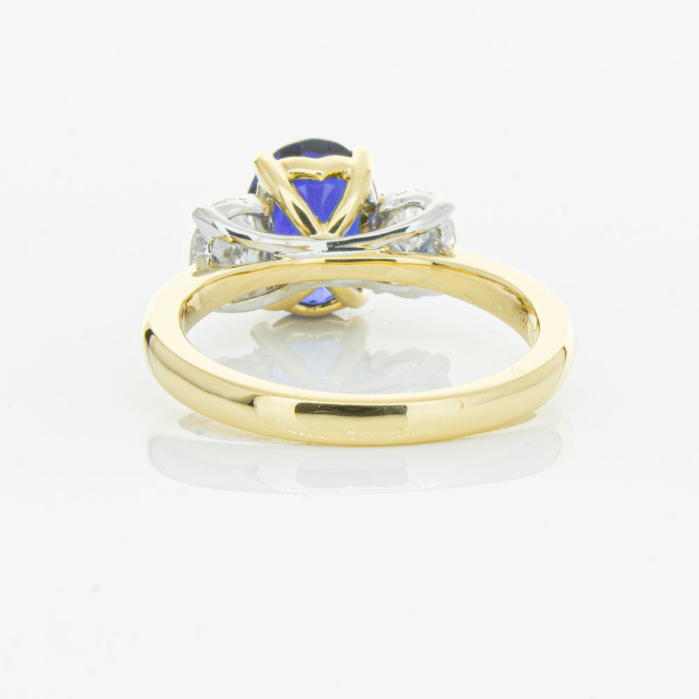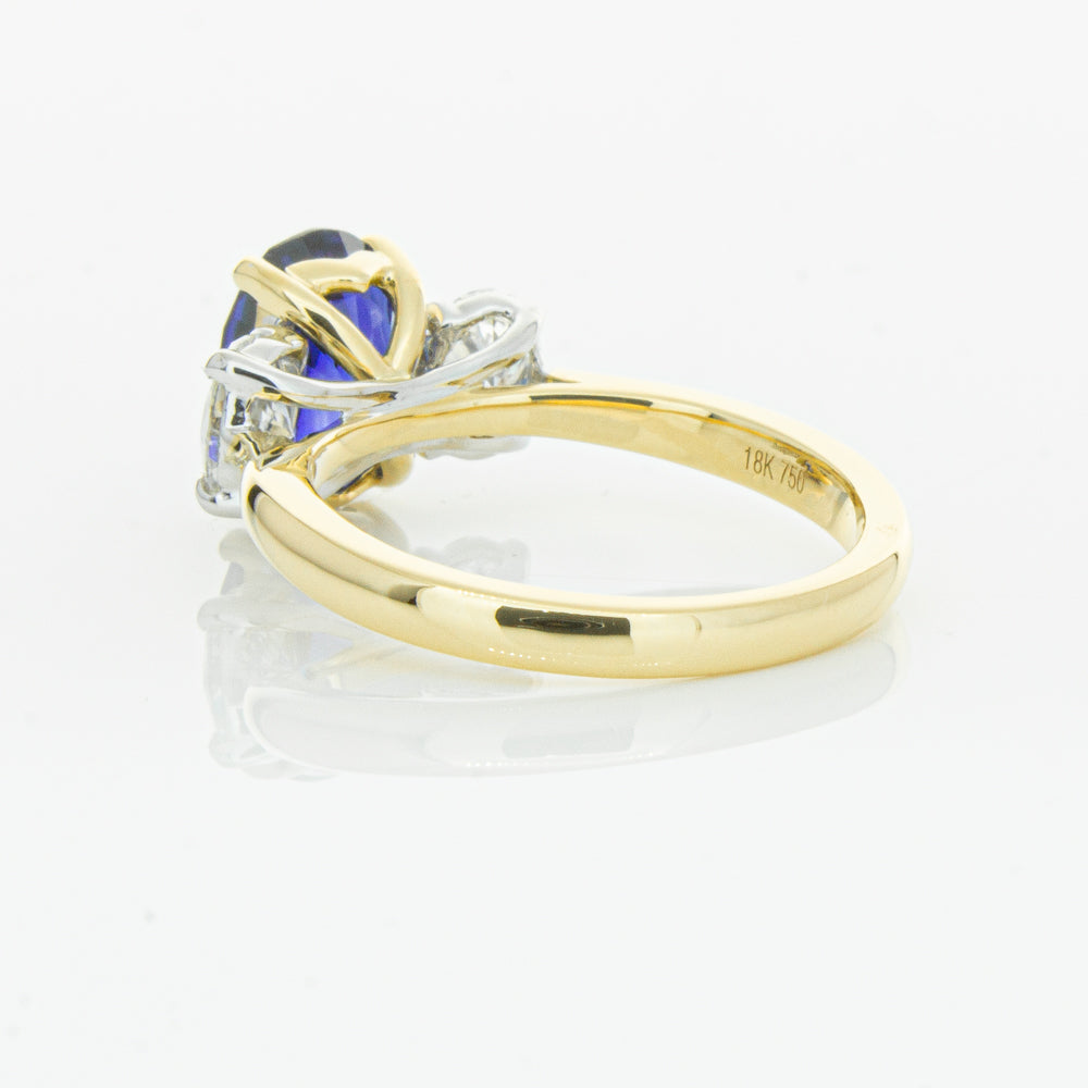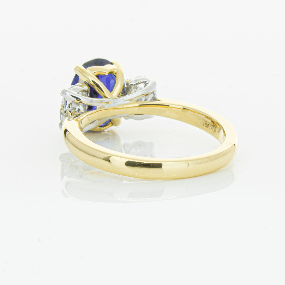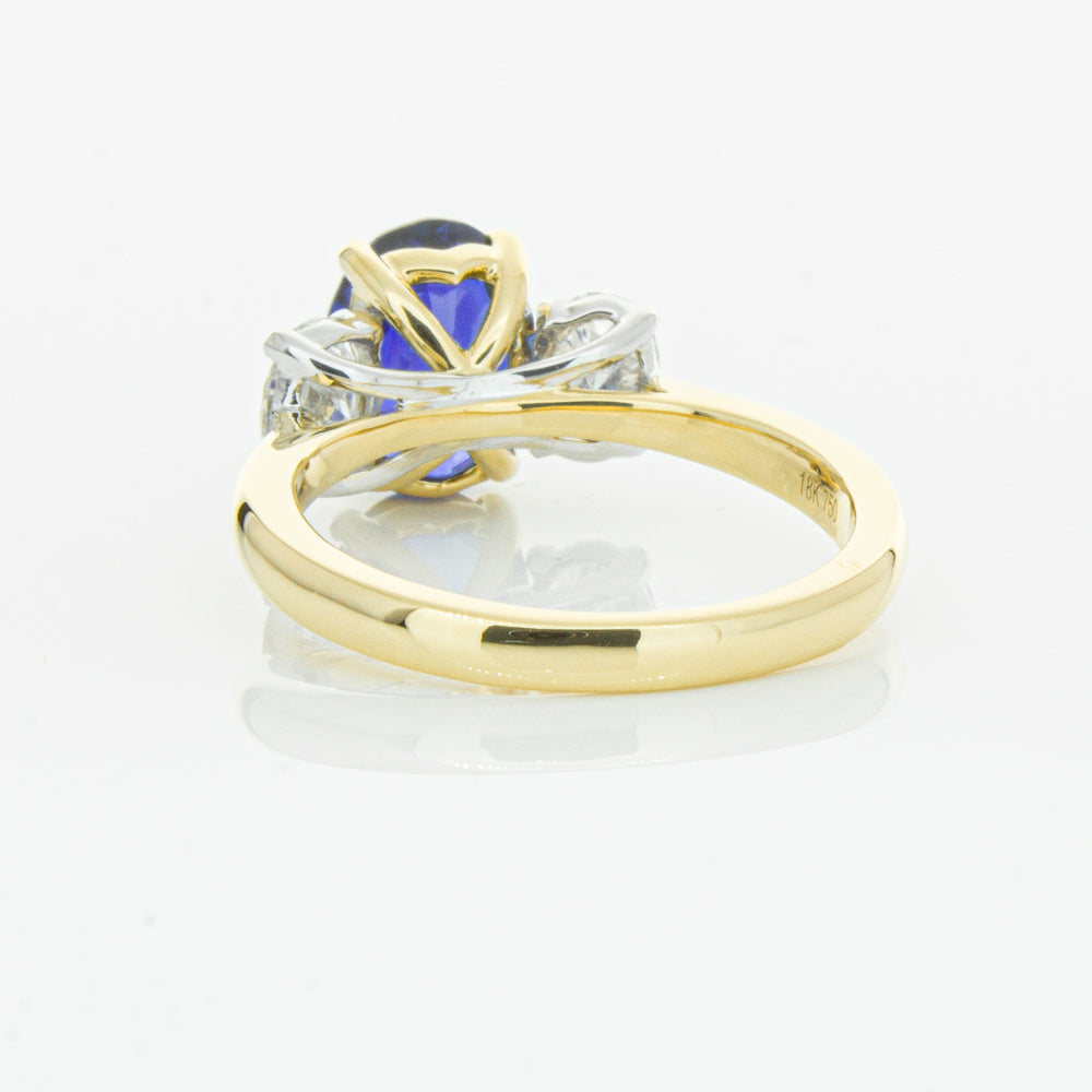 18ct Yellow Gold Oval Sapphire & Diamond Three Stone Ring