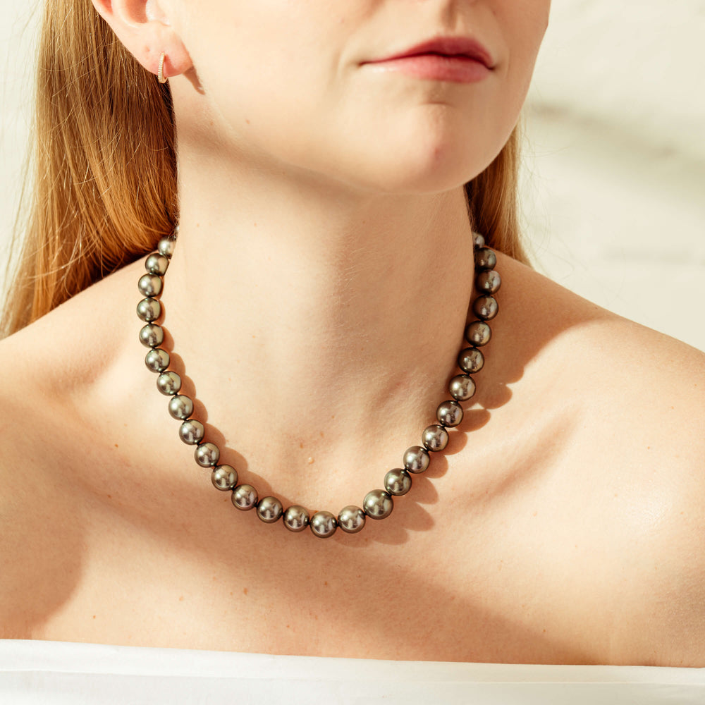 18ct Yellow Gold Tahitian Black 10-12mm Pearl Strand